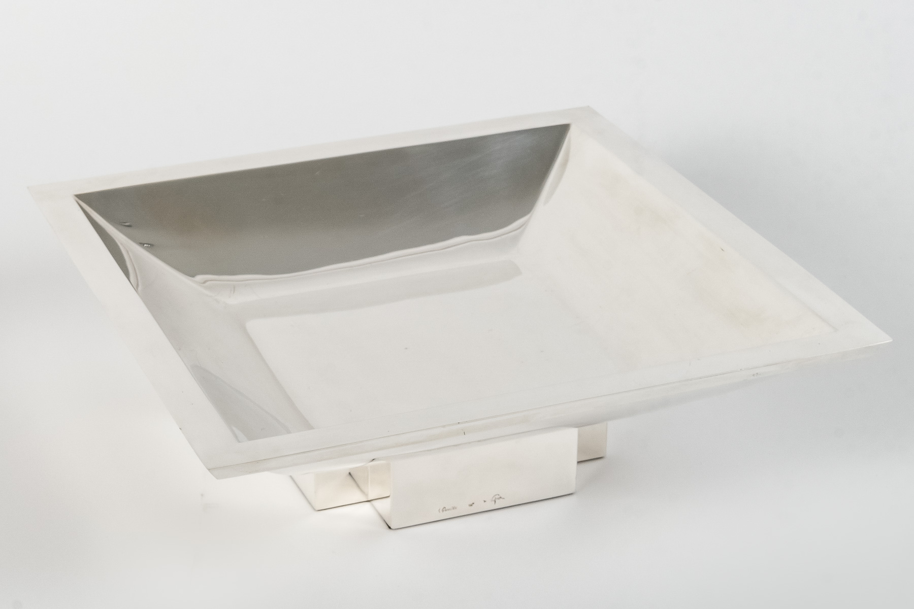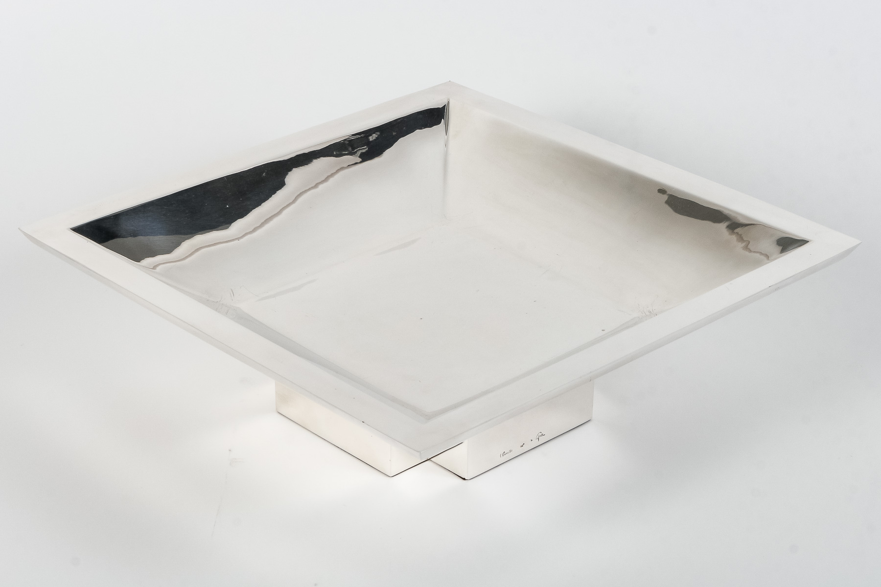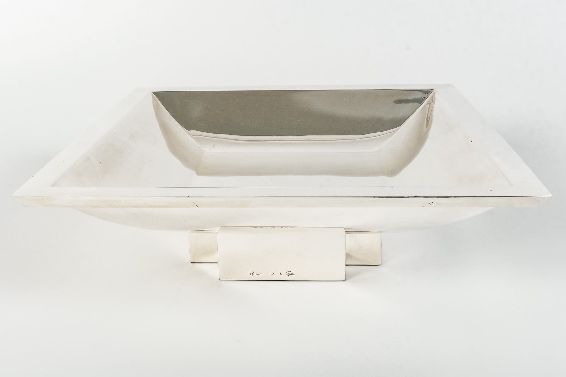 ORFEVRE D. GARRIDO – CENTRE DE TABLE CARRE EN ARGENT MASSIF XXe