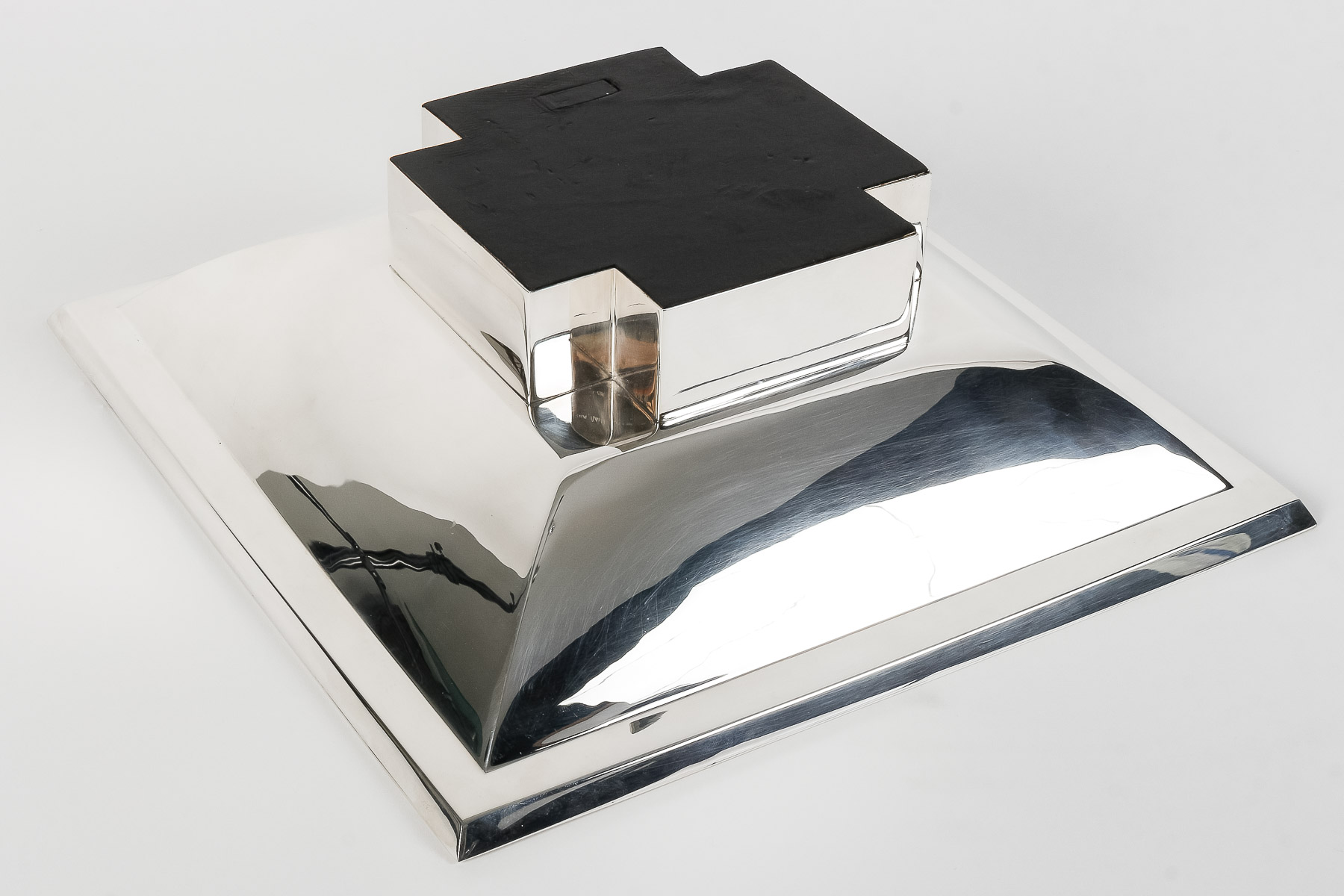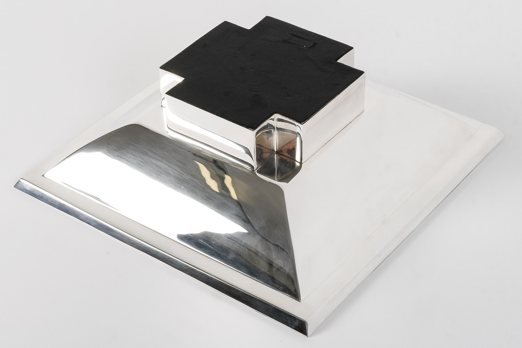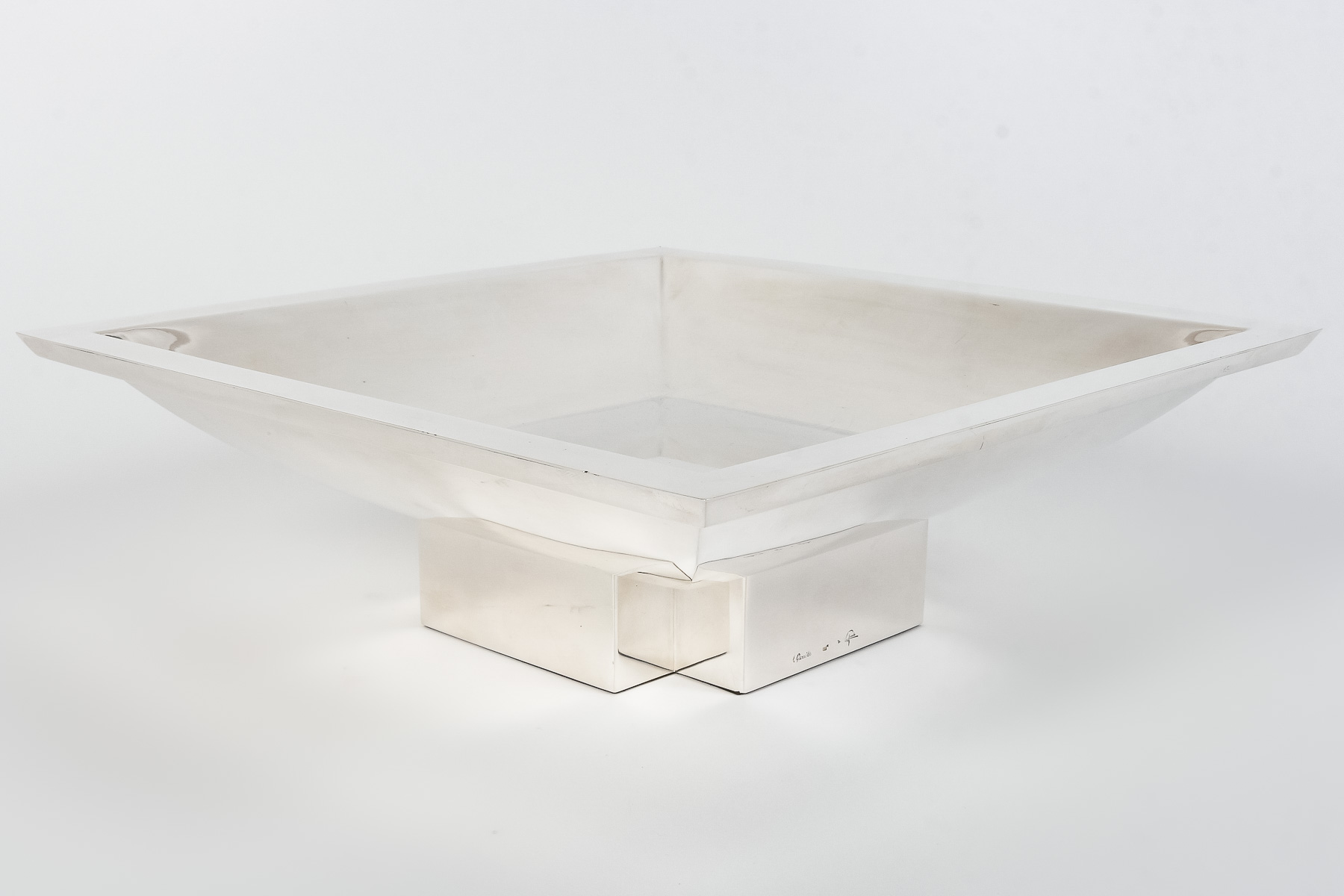 ORFEVRE D. GARRIDO – CENTRE DE TABLE CARRE EN ARGENT MASSIF XXe