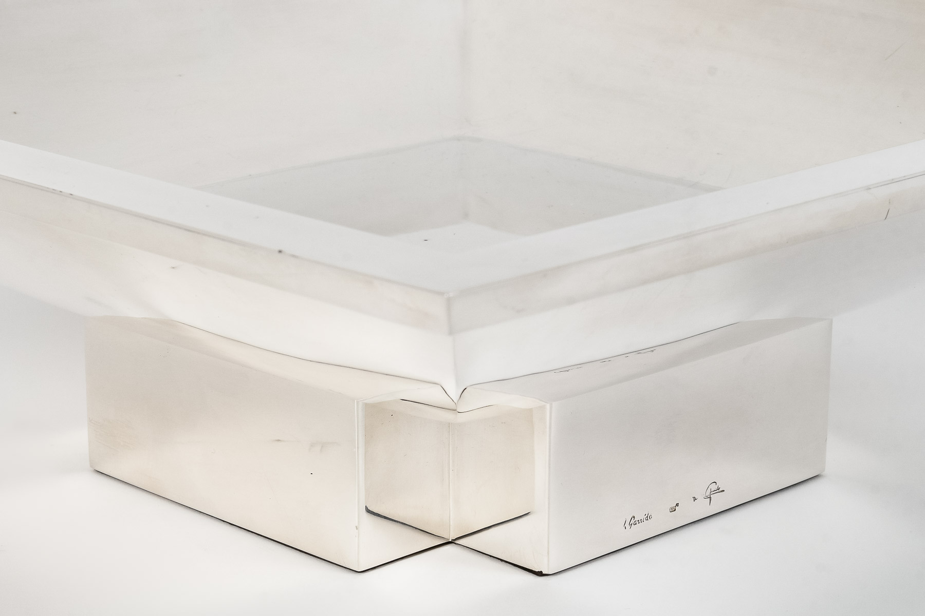 ORFEVRE D. GARRIDO – CENTRE DE TABLE CARRE EN ARGENT MASSIF XX