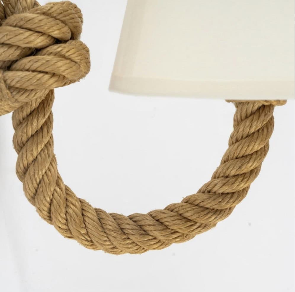 Chaque applique est composée d’un bras en corde qui se prolonge dans sa partie supérieure pour former une boucle.