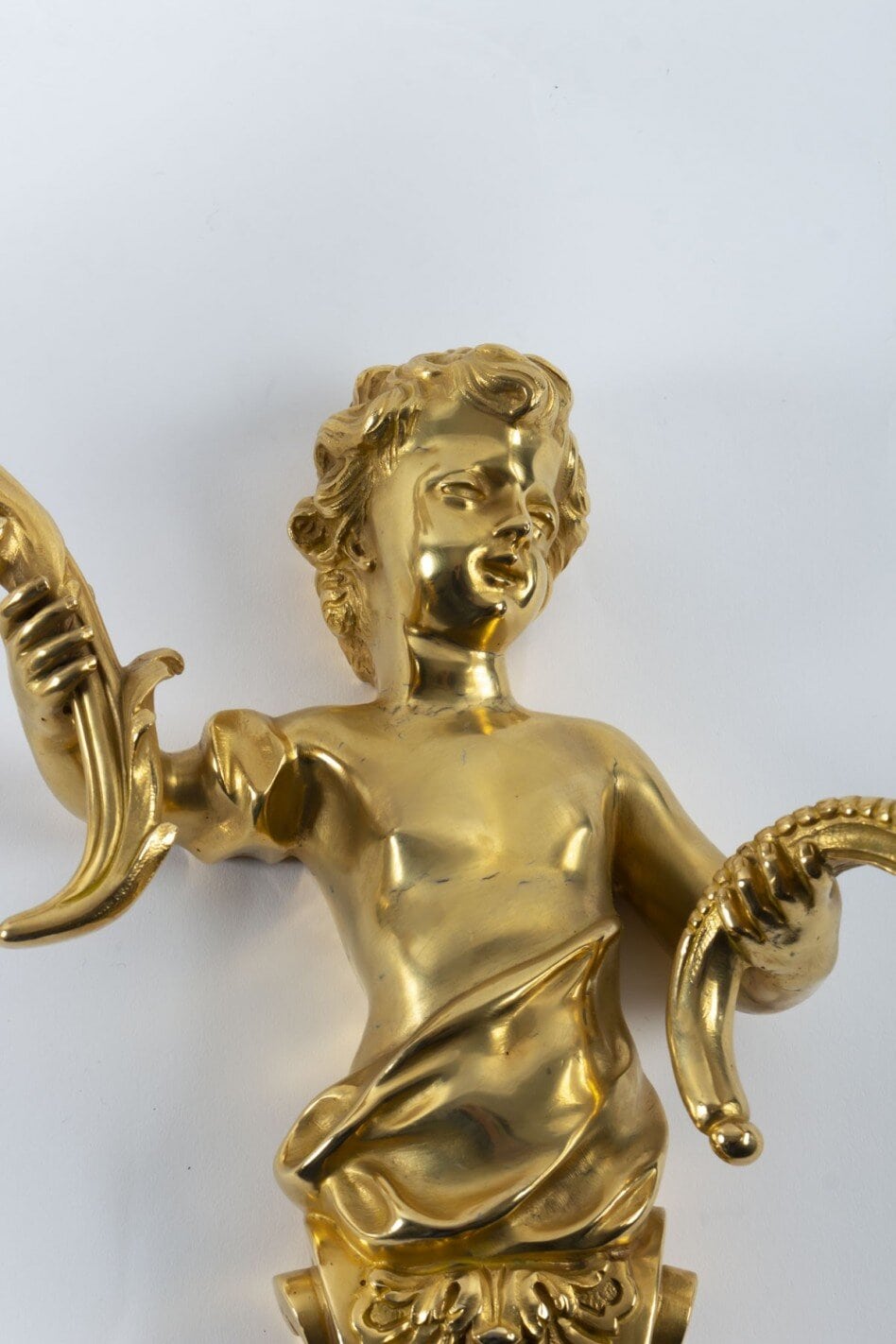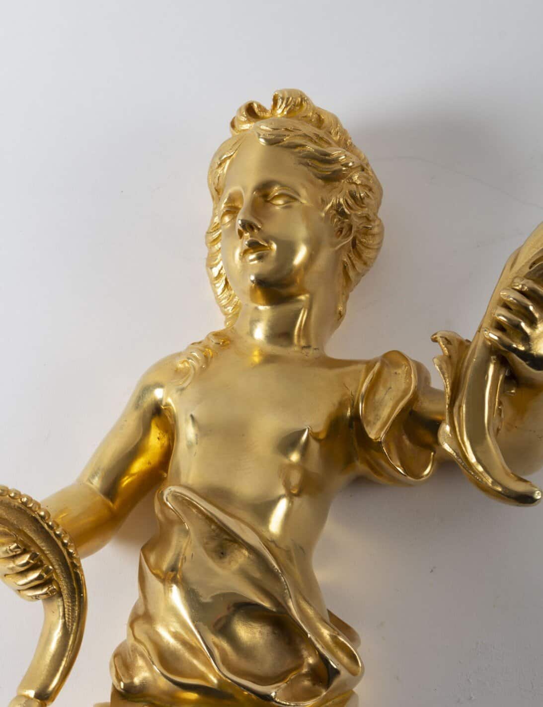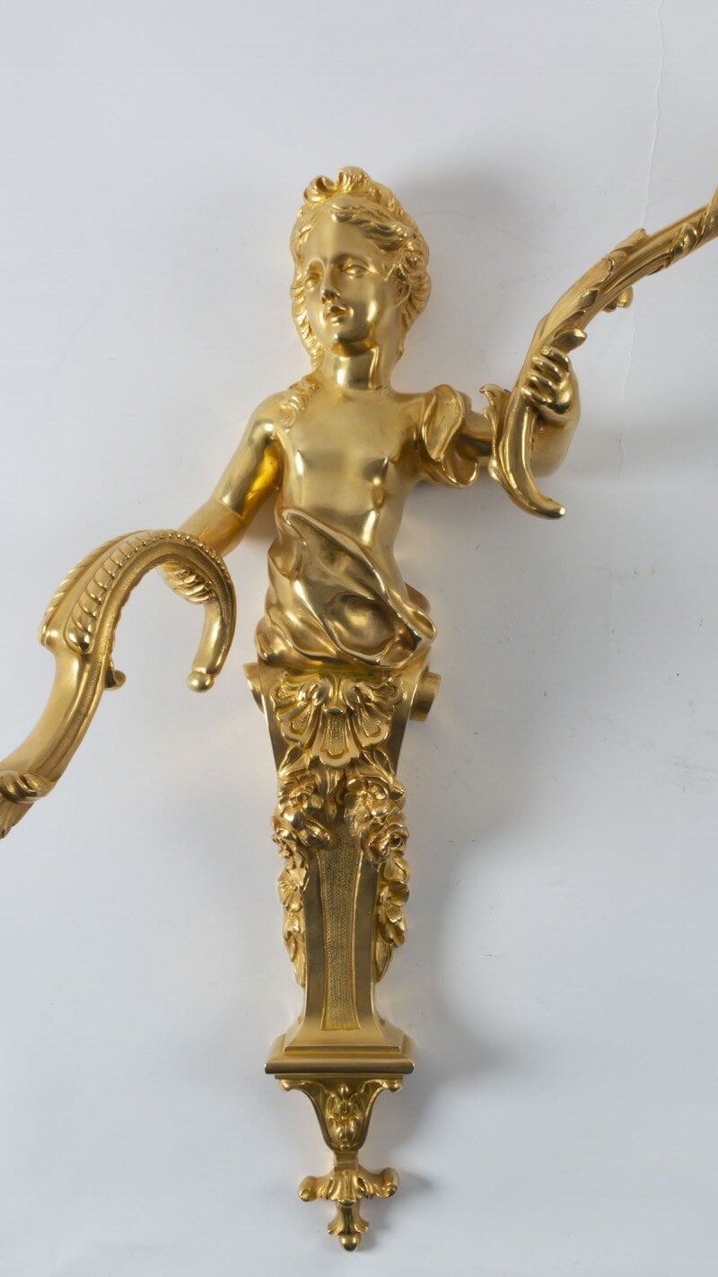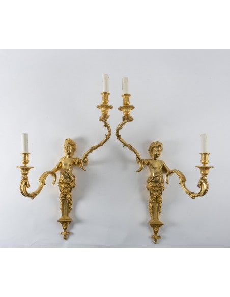 Paire de très grandes appliques de style Régence en bronze doré à décor de personnages à deux bras de lumière.