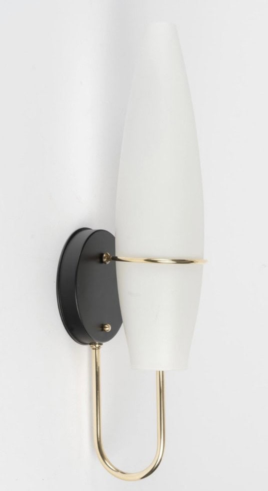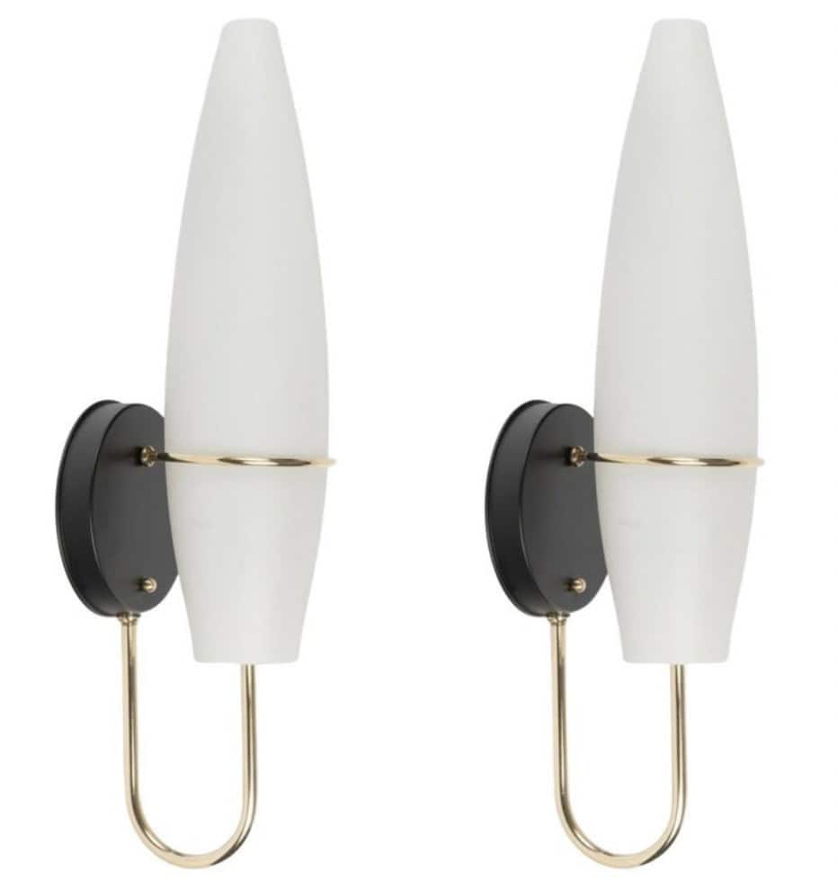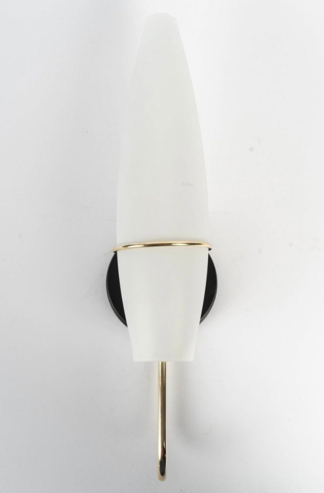 Composées d’une grande opaline blanche opalescente en forme de fuseau, maintenue par deux cercles en laiton doré.