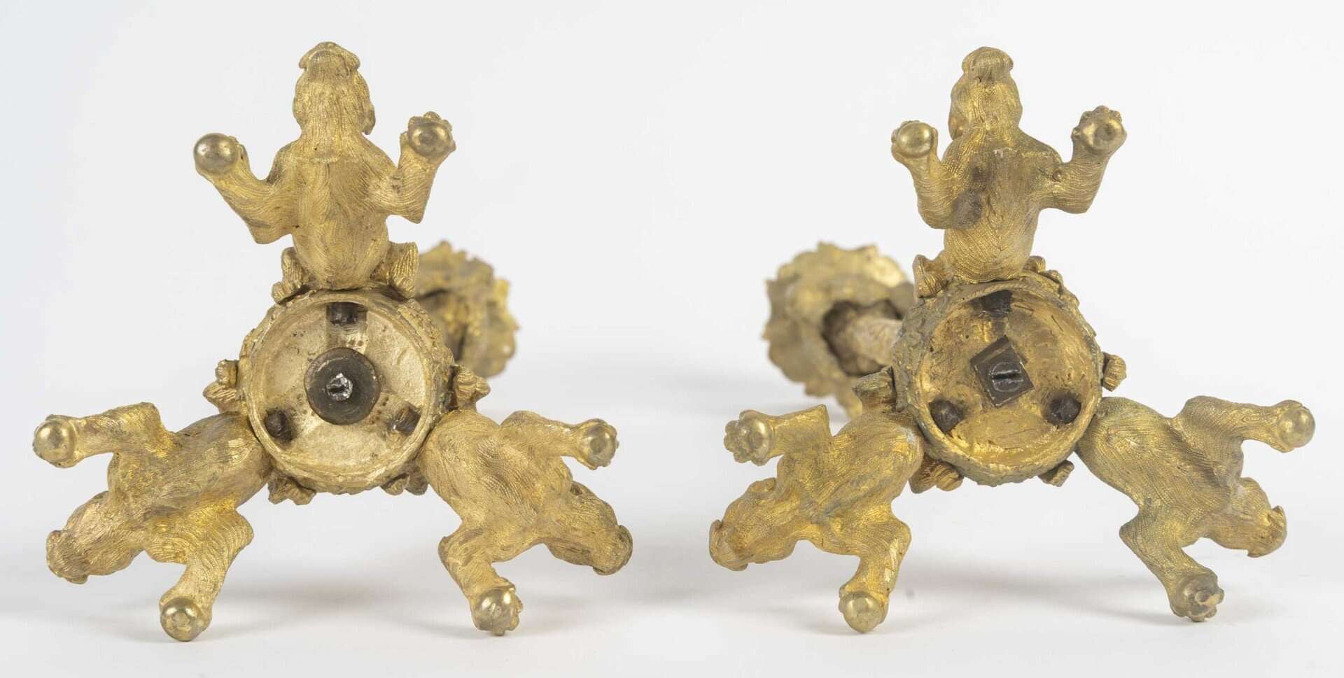 Paire de bougeoirs en bronze doré.