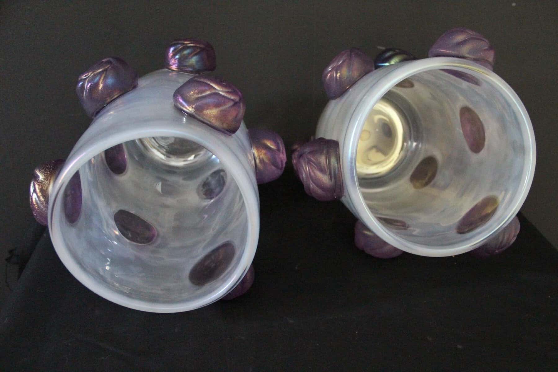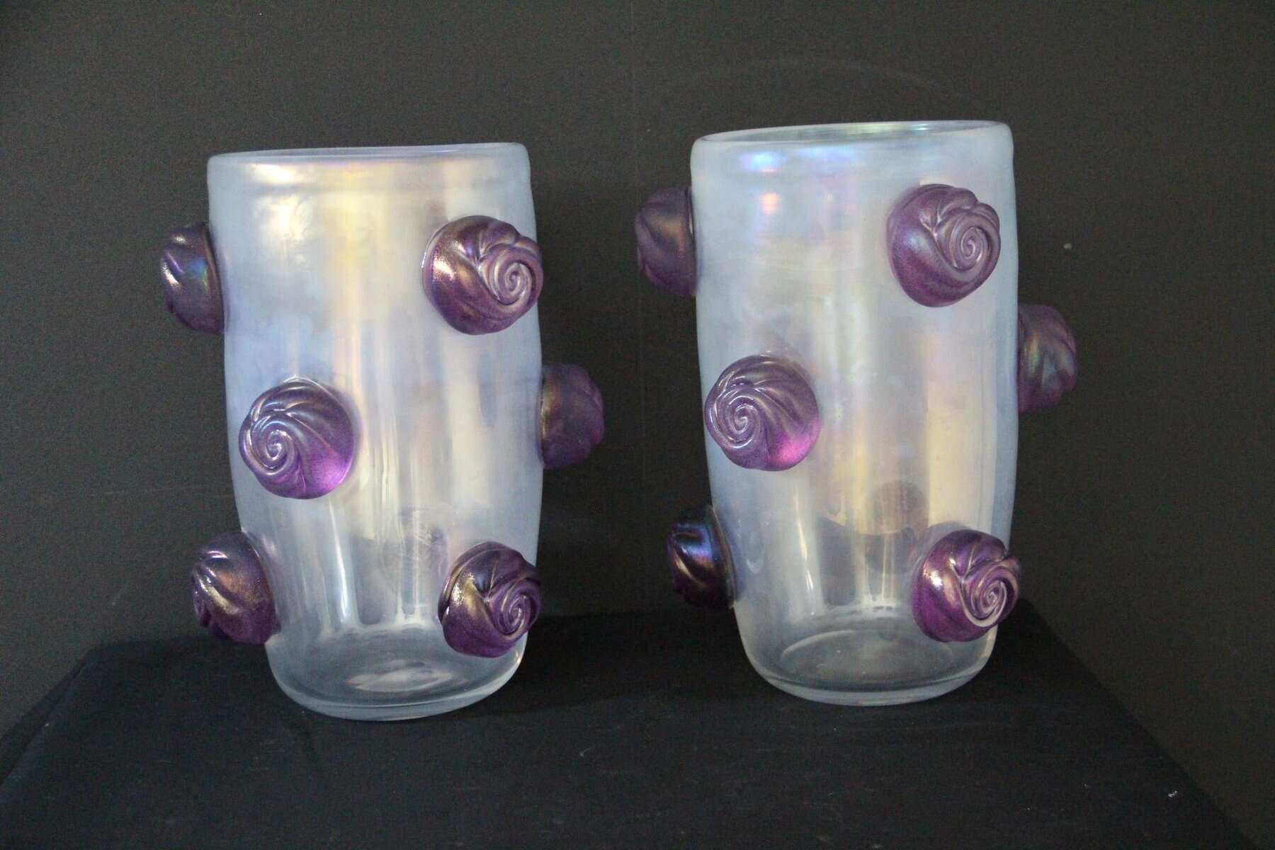 Paire de grands vases irisés à boutons de rose violets en verre de Murano