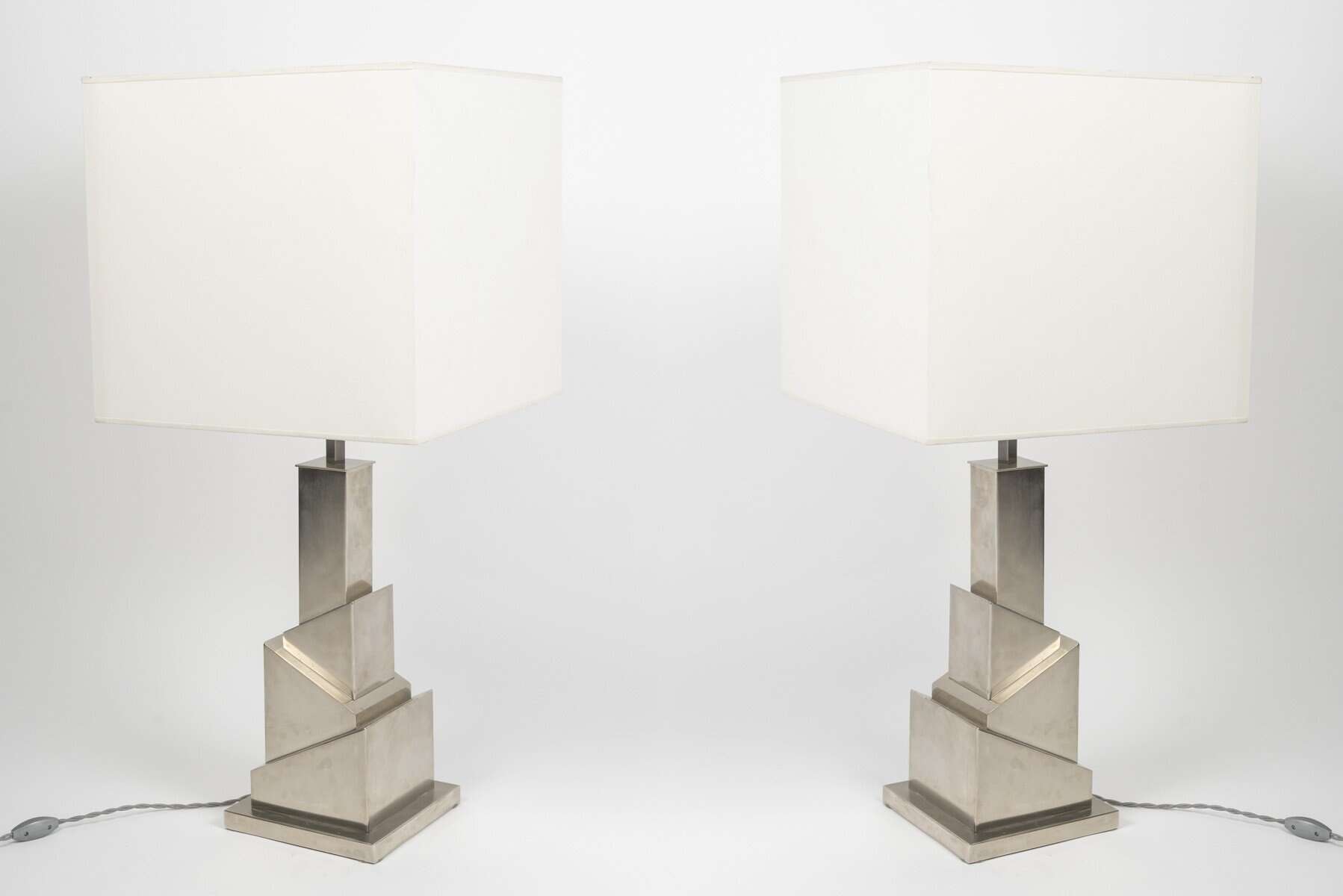 Paire de lampes de table « Gratte Ciel » en métal brossé,