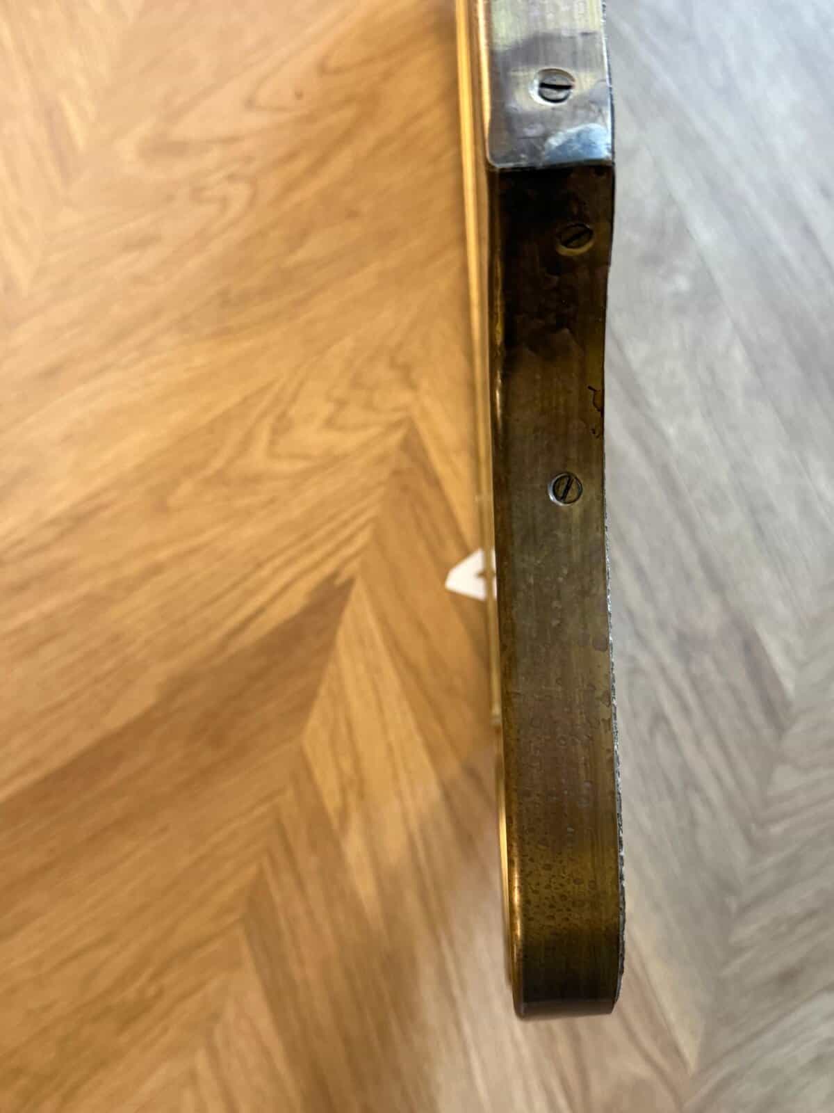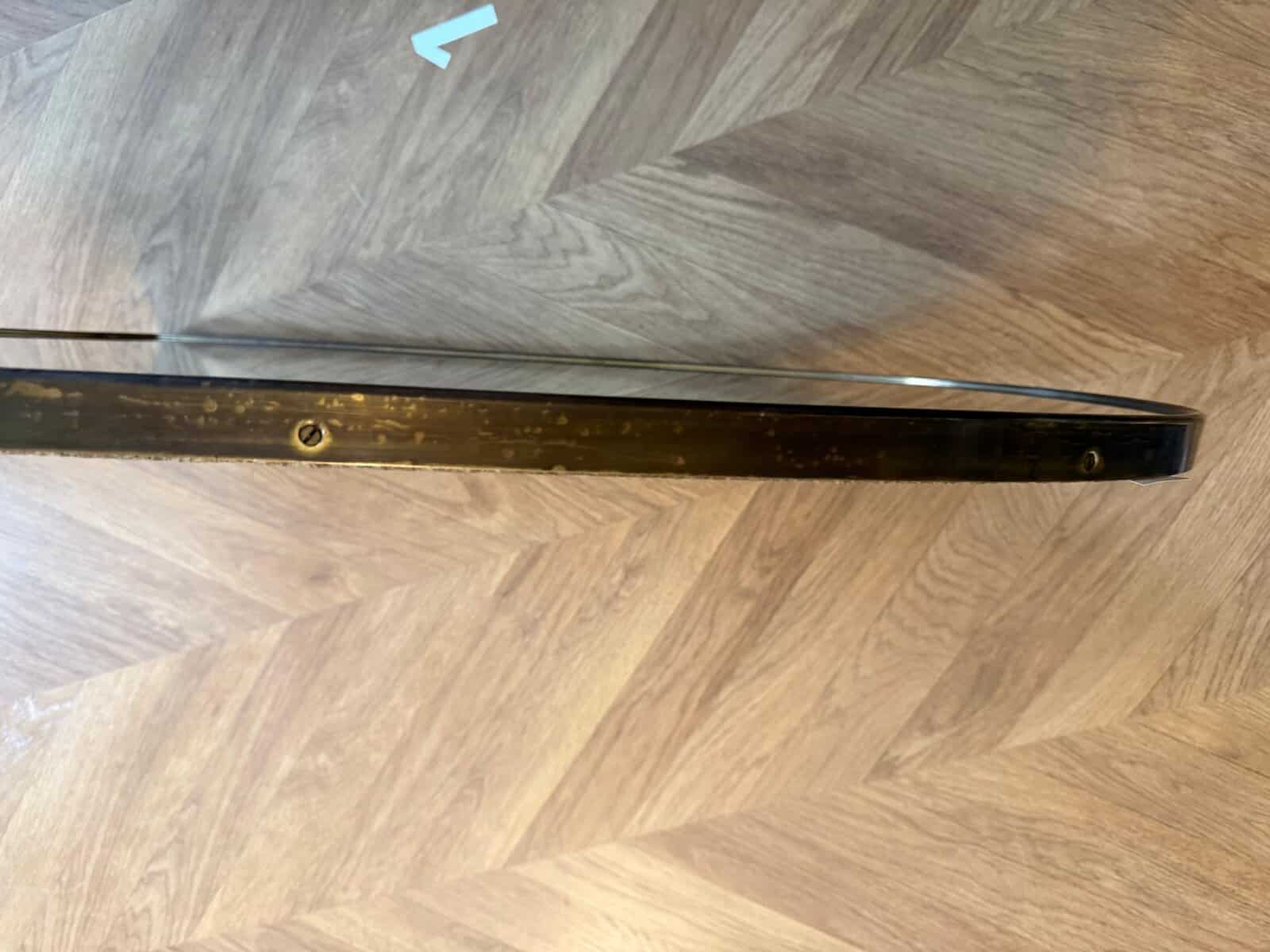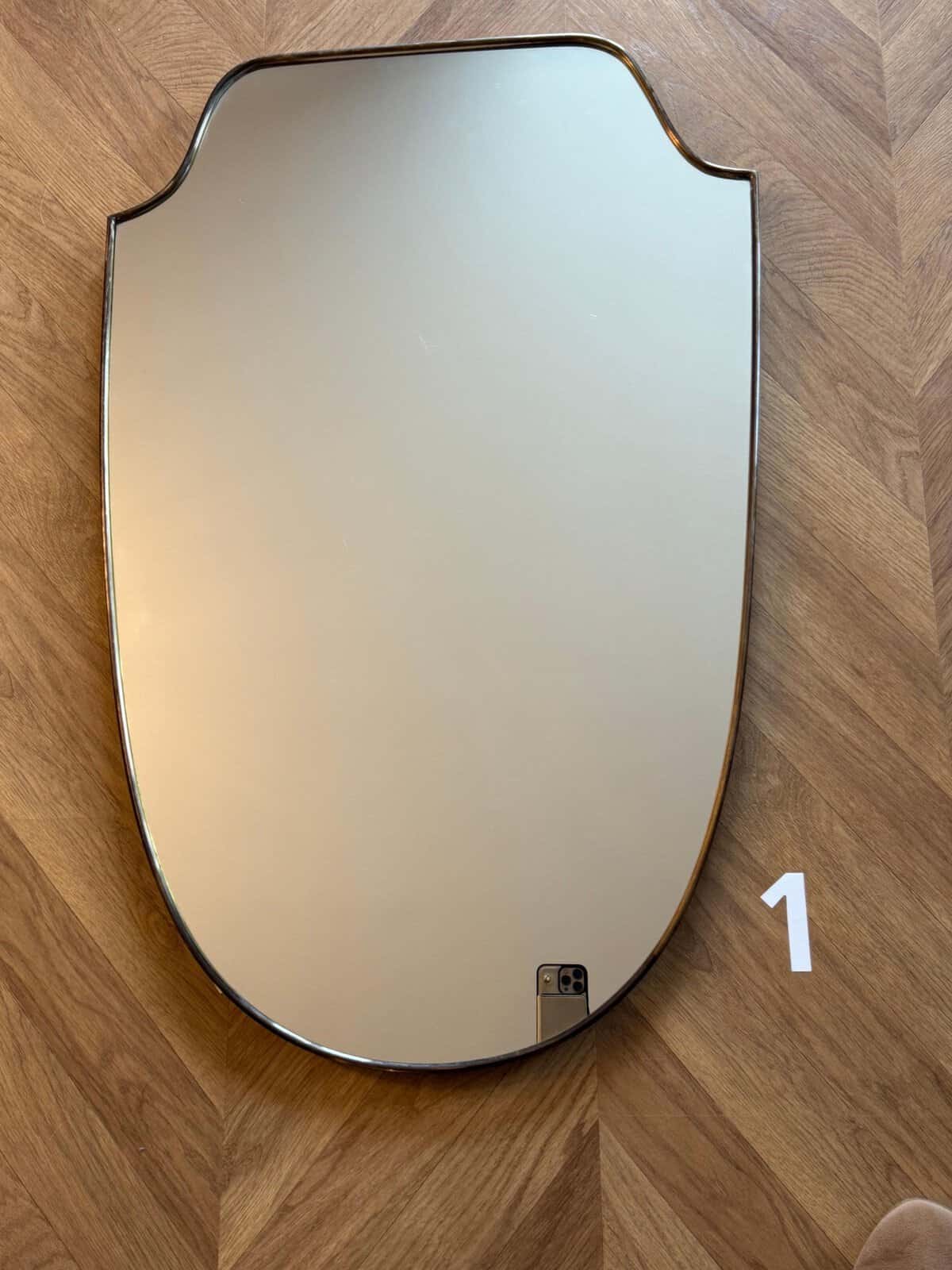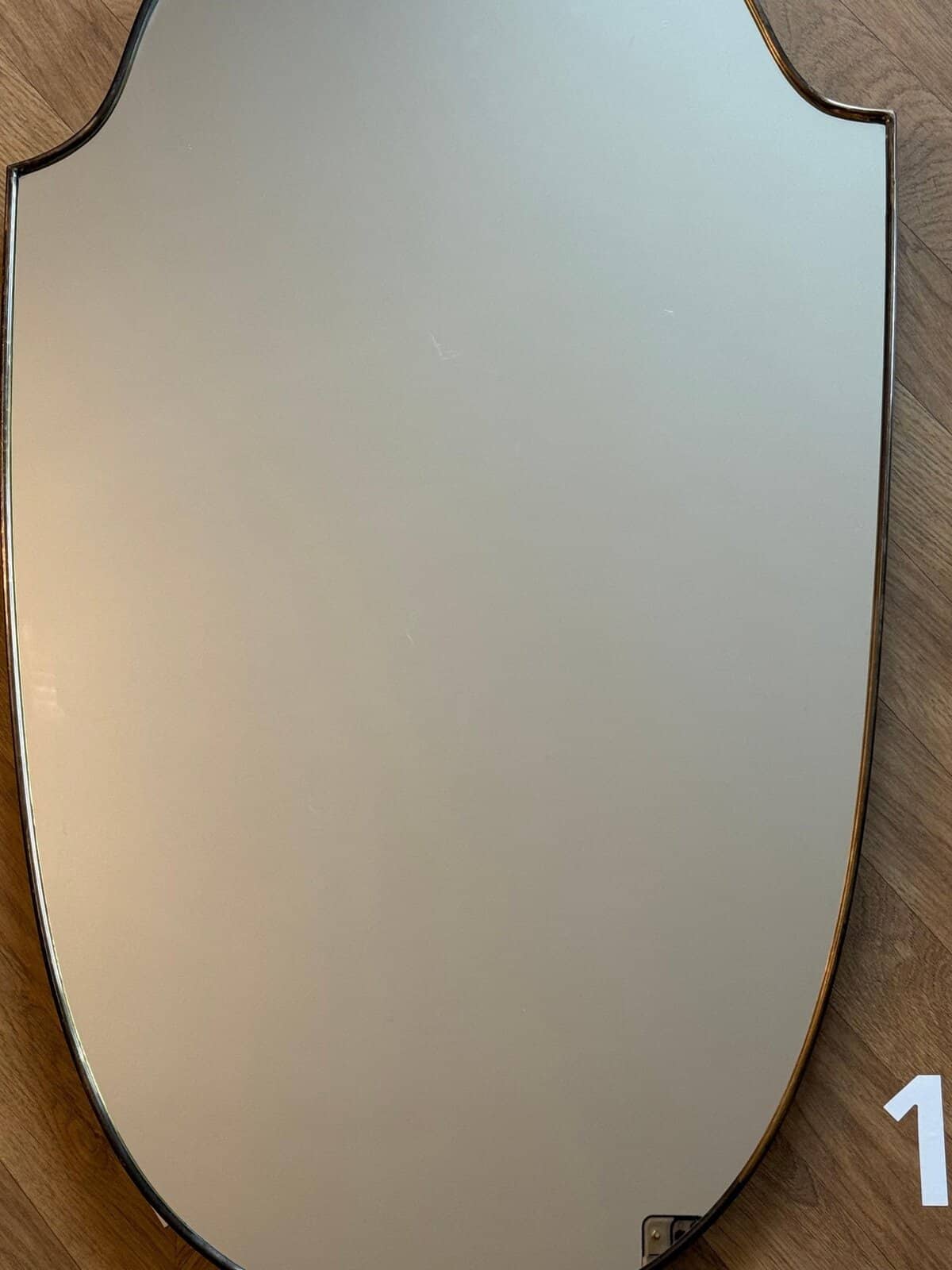 Ces miroirs très décoratifs ont été fabriqués en Italie dans les années 1950. Typiques du design de cette période, ils sont entièrement d’origine. Ils peuvent être accrochés au mur seul, par paire ou associé sà d’autres miroirs du même style pour obtenir un effet spectaculaire. Le cadre en laiton est épais et entoure tout le miroir. Sa forme incurvée, typiquement minimaliste des années 1950, est si élégante. De plus, il s’agit d’une pièce de qualité supérieure avec son épais dos tout en bois. Typique du style des créateurs italiens comme Gio Ponti ou Fontana Arte, ces miroirs muraux d’époque moderniste constitués d’un cadre en laiton façonné avec un sommet légèrement arqué et arrondi sont très chics. De plus, leur forme libre est également pleine de charme. Véritables icônes du design italien du milieu du siècle, ces miroirs sont intemporels et élégants, créant une atmosphère chic dans n’importe quel style d’intérieur. En bon état tout à fait original sur laiton patiné et verre miroir en cristal qui témoigne de son ancienneté et de son authenticité. Leur forme est assez inhabituelle et il est très rare de les trouver par paire, mais si vous souhaitez n’en acheter qu’un seul, c’est également possible.