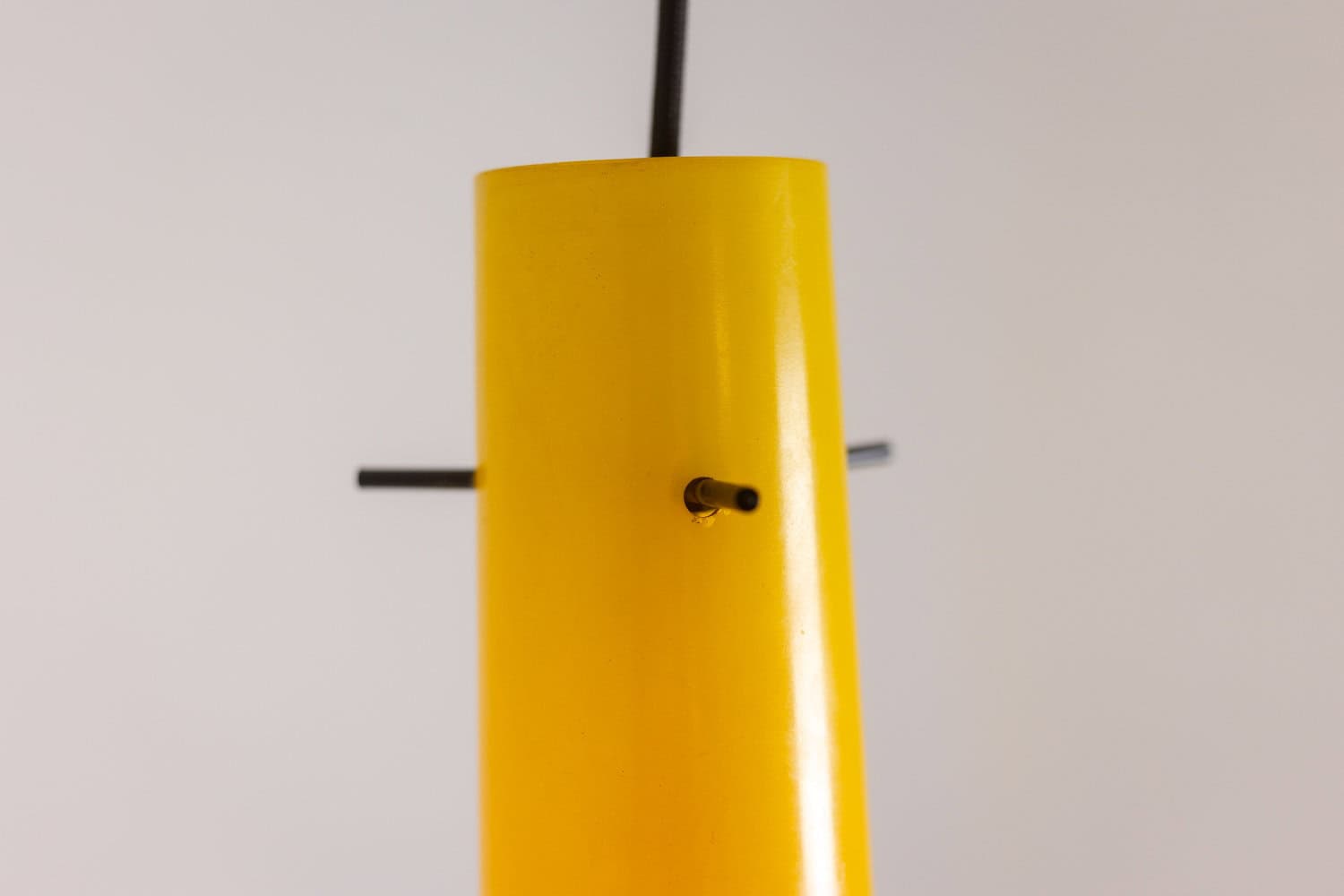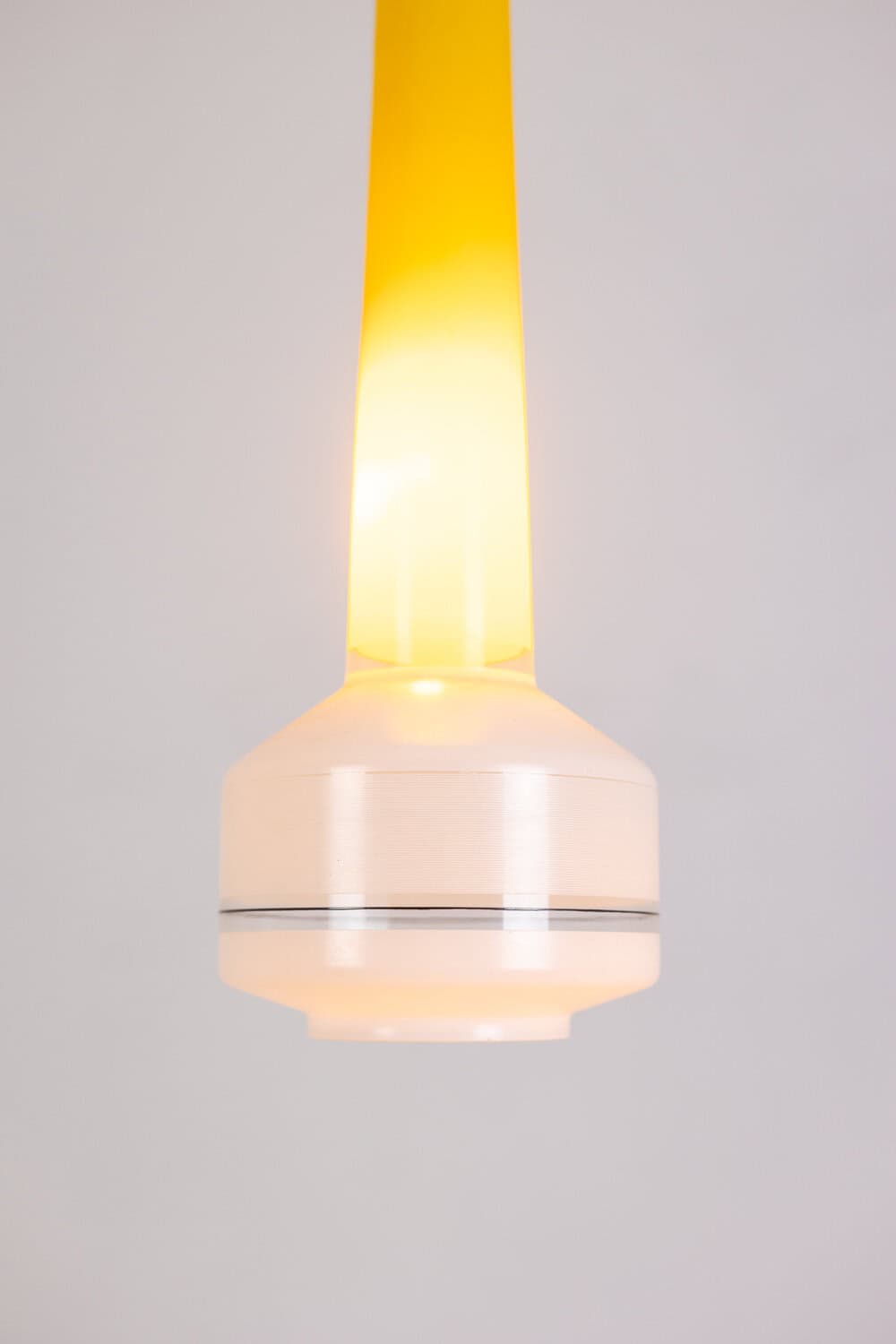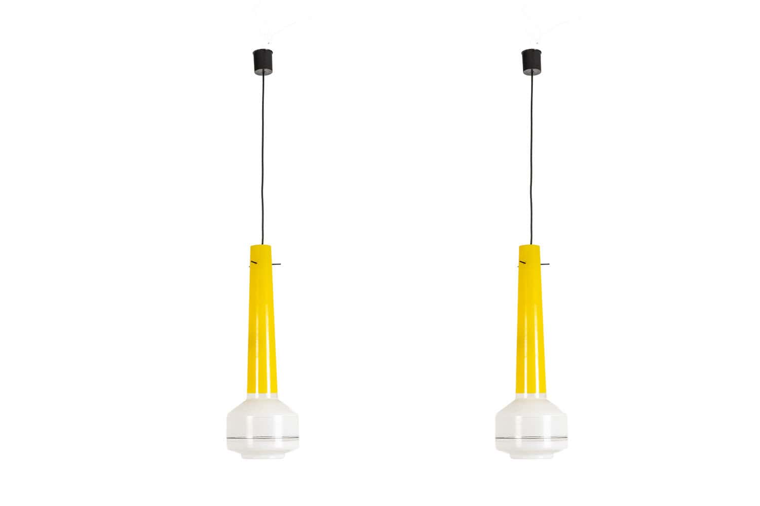 Paire de suspensions en verre bicolore jaune et blanc. Années 1960