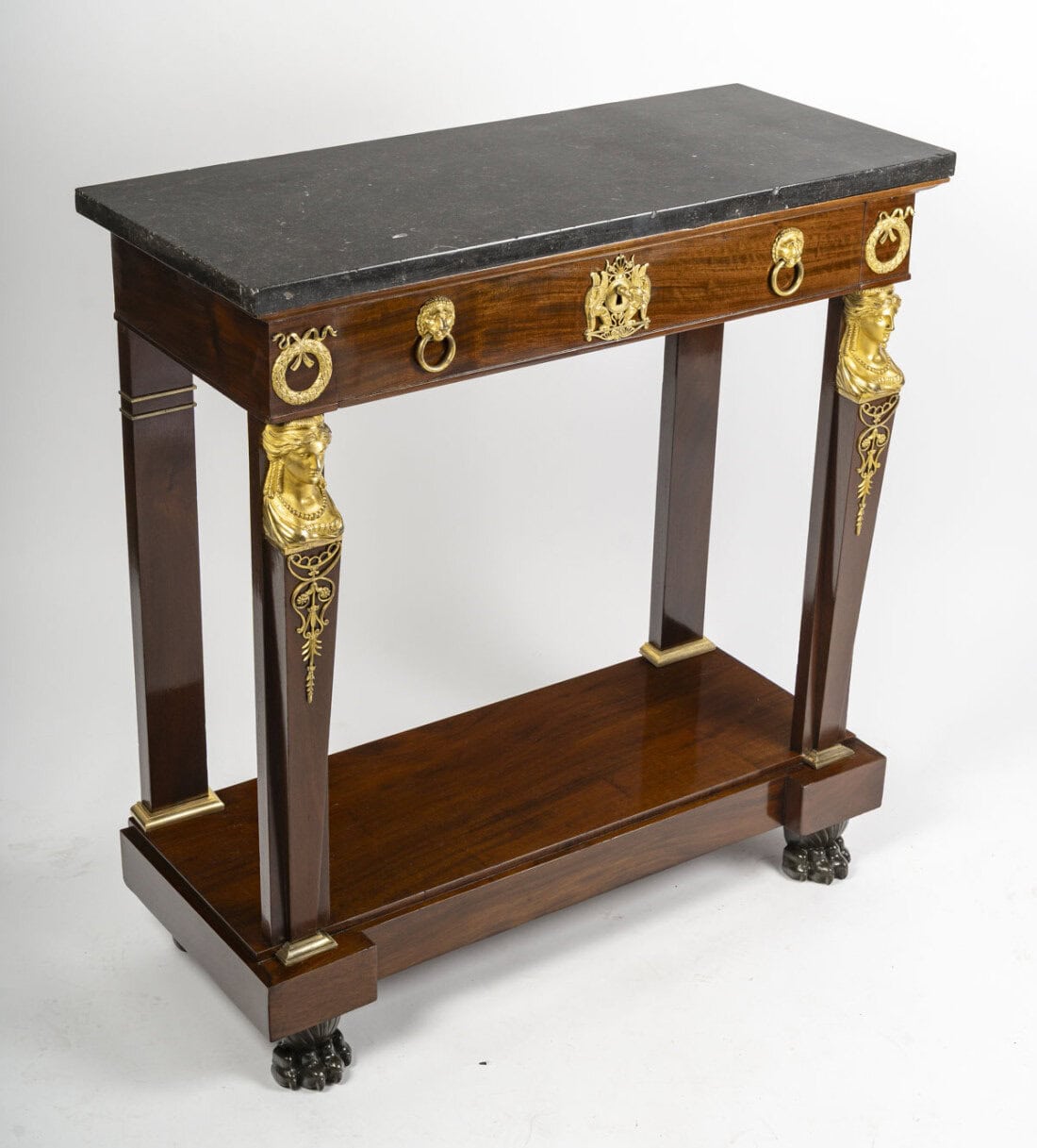 Petite console en acajou et bronze doré, d’époque Ier empire (1804-18015), XIXème siècle.