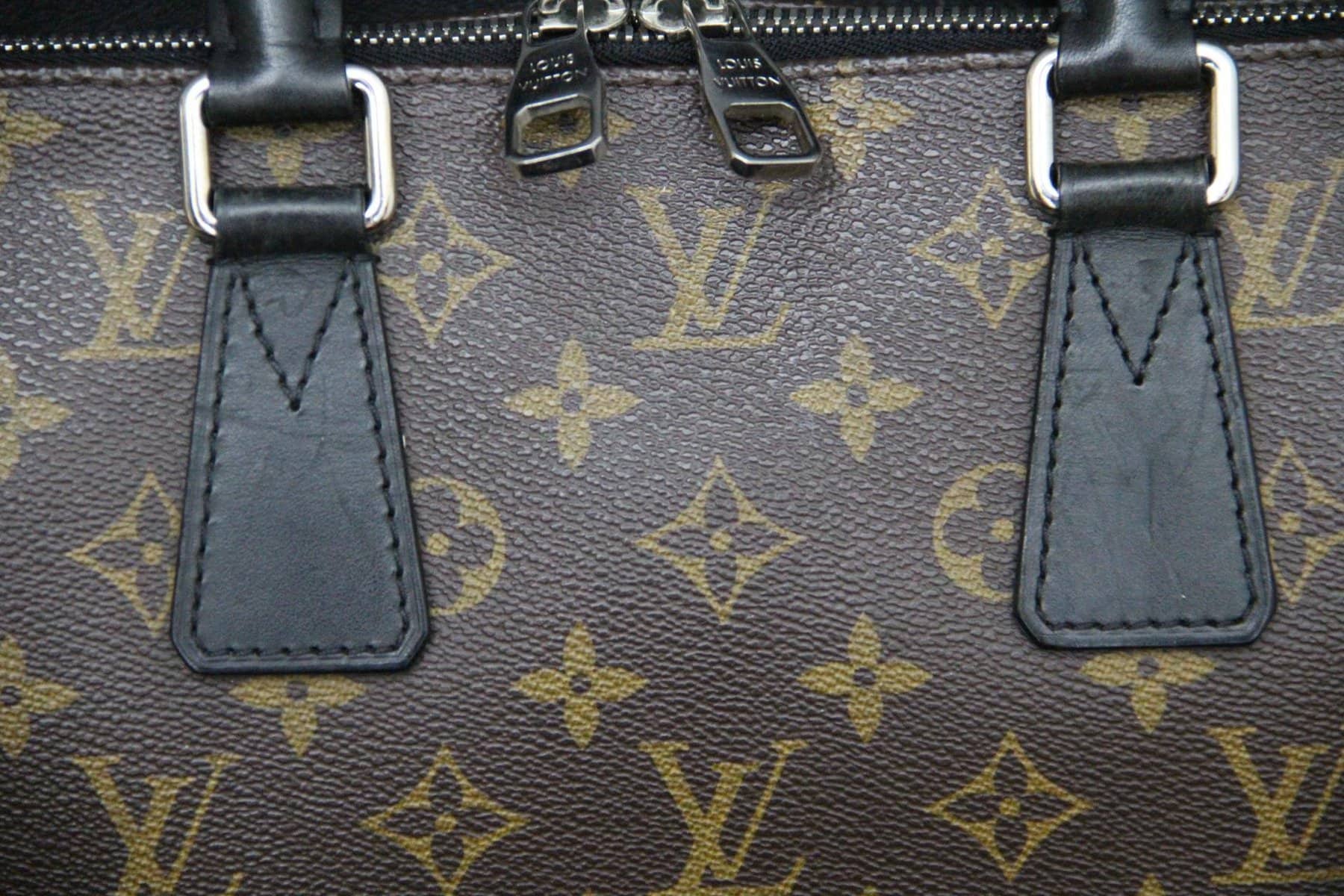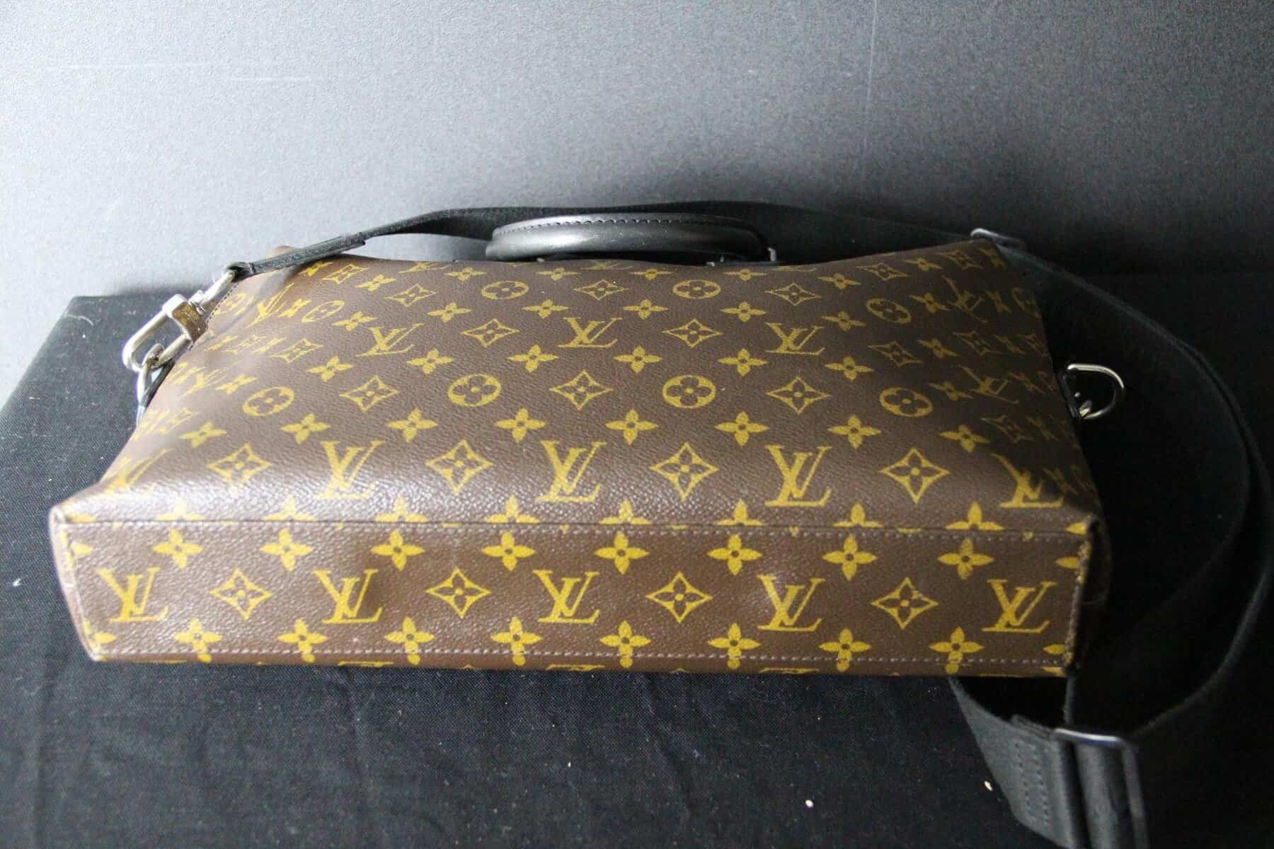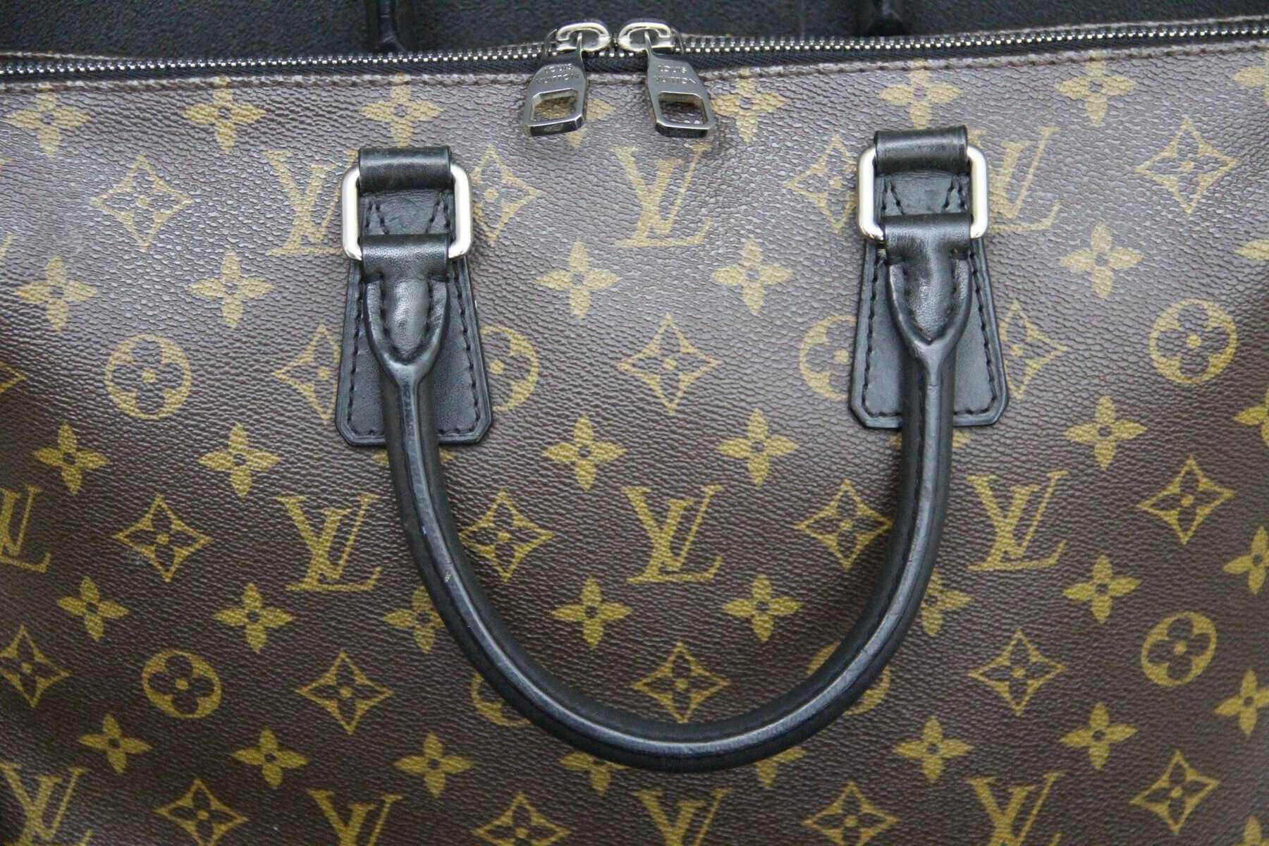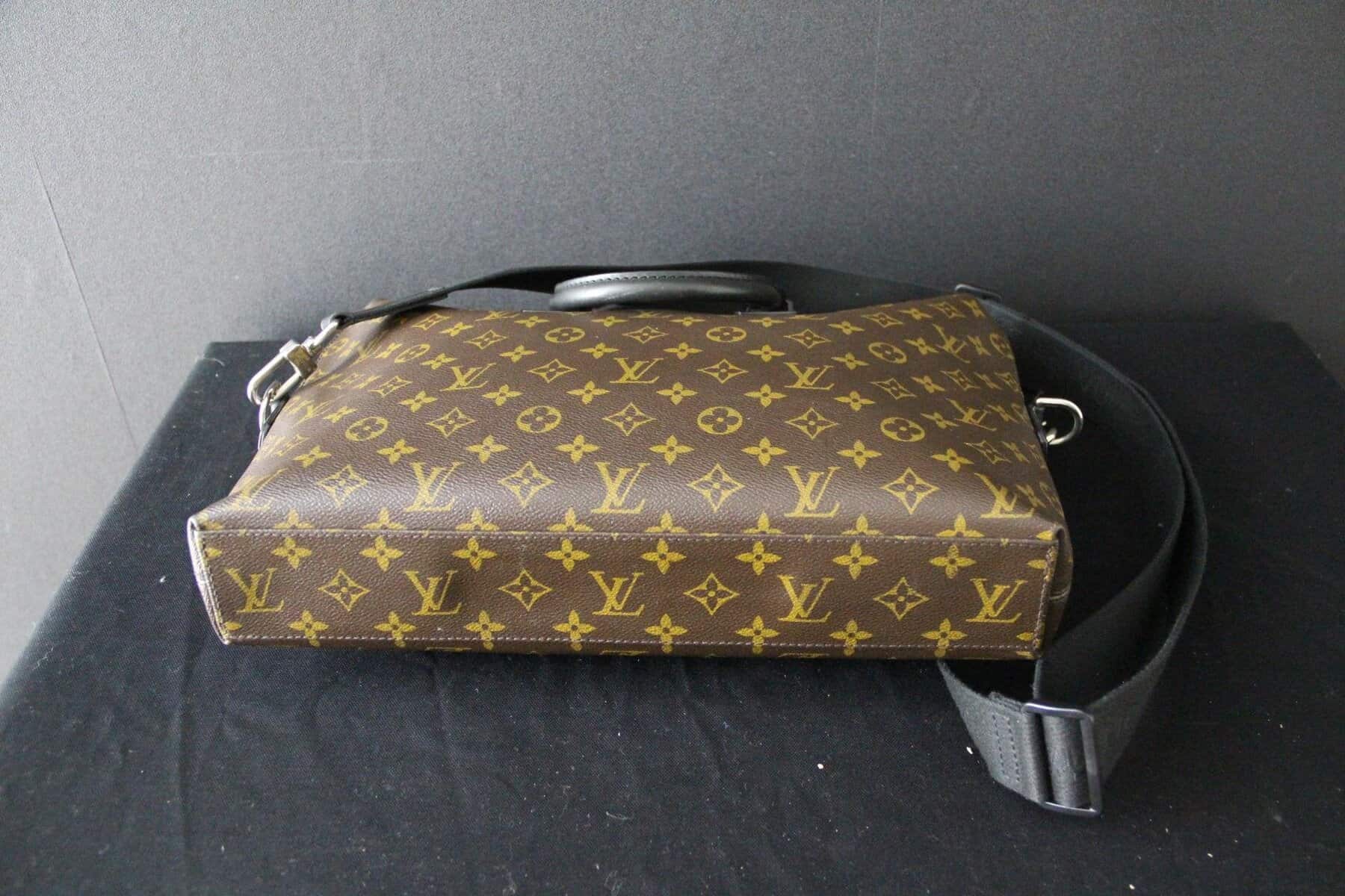 Porte-documents Louis Vuitton Monogram Macassar – Garniture en cuir noir