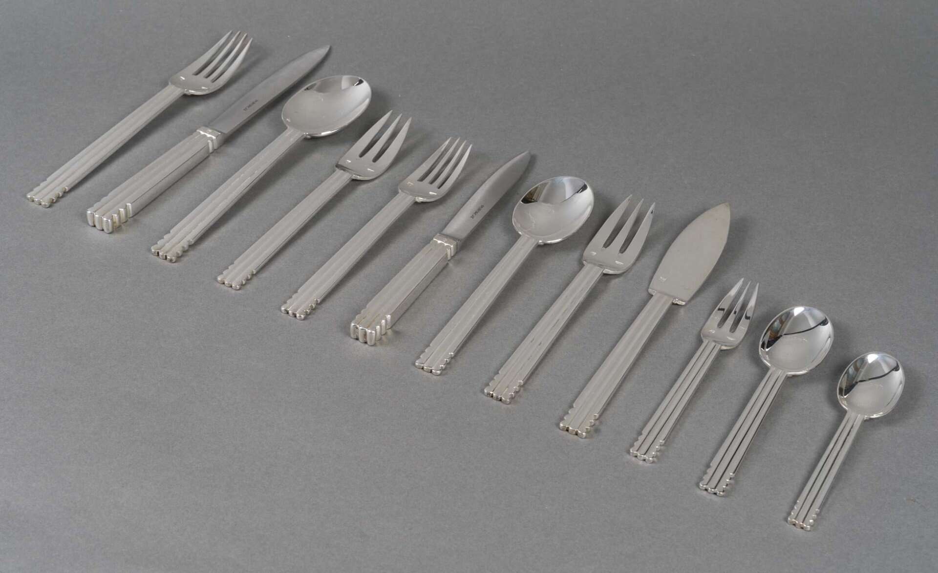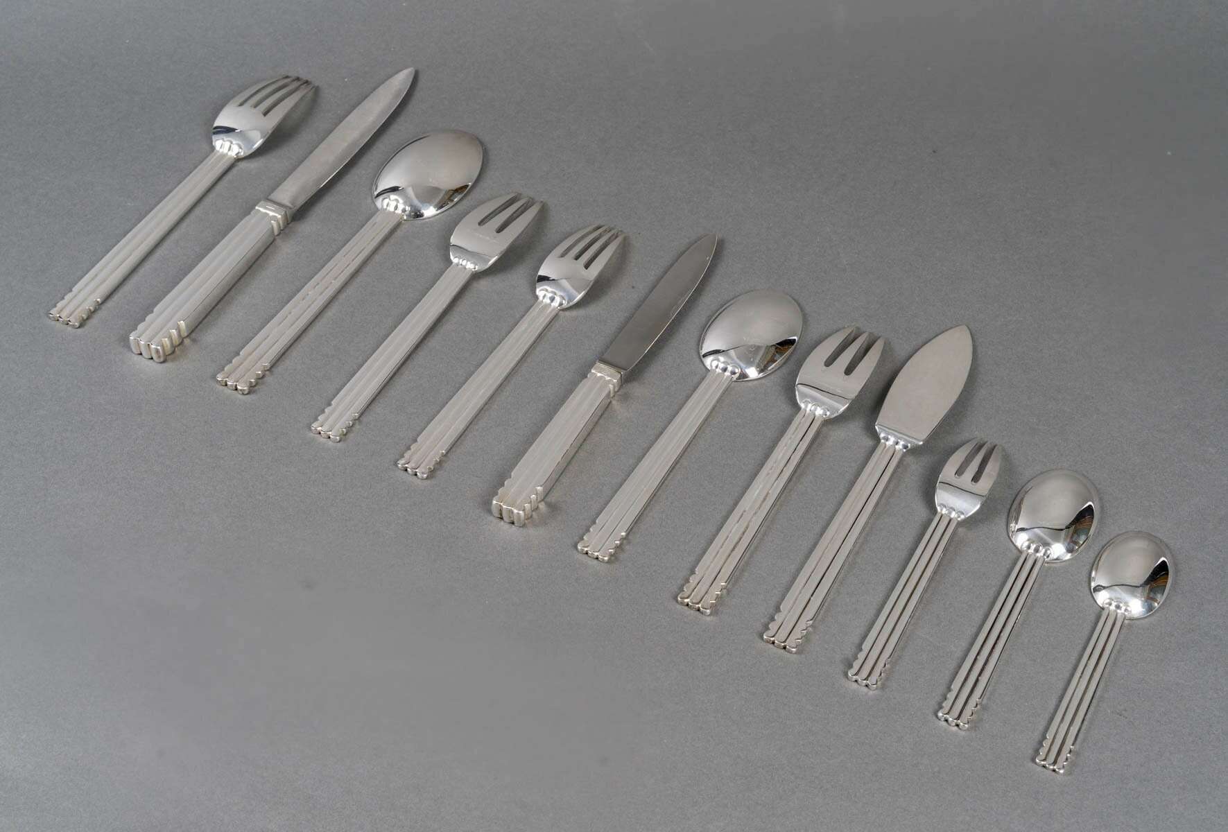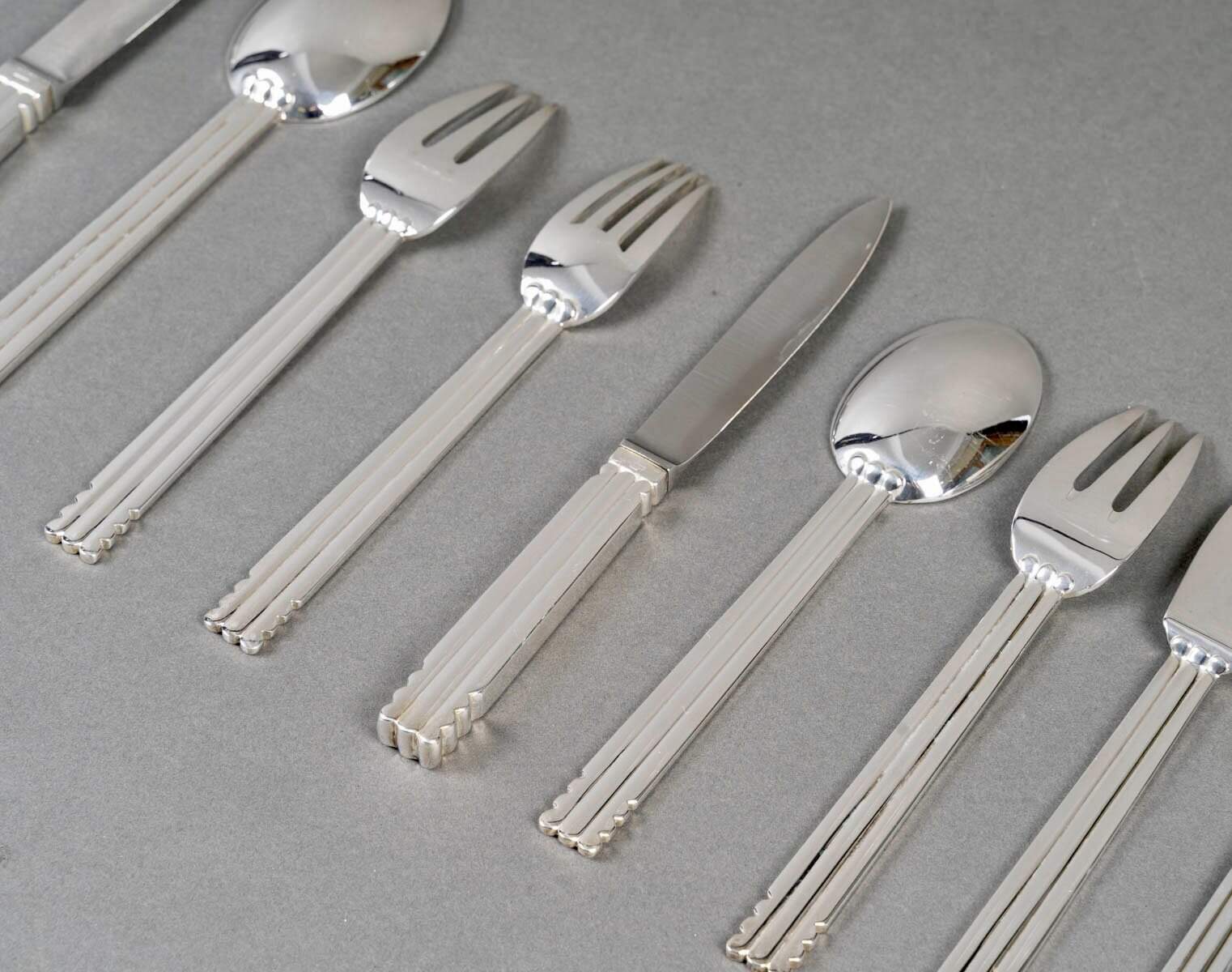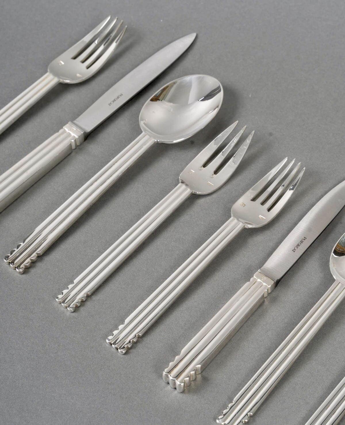 Ménagère « Nantes » en métal argenté de la Maison Puiforcat d’après un modèle de Jean Puiforcat.