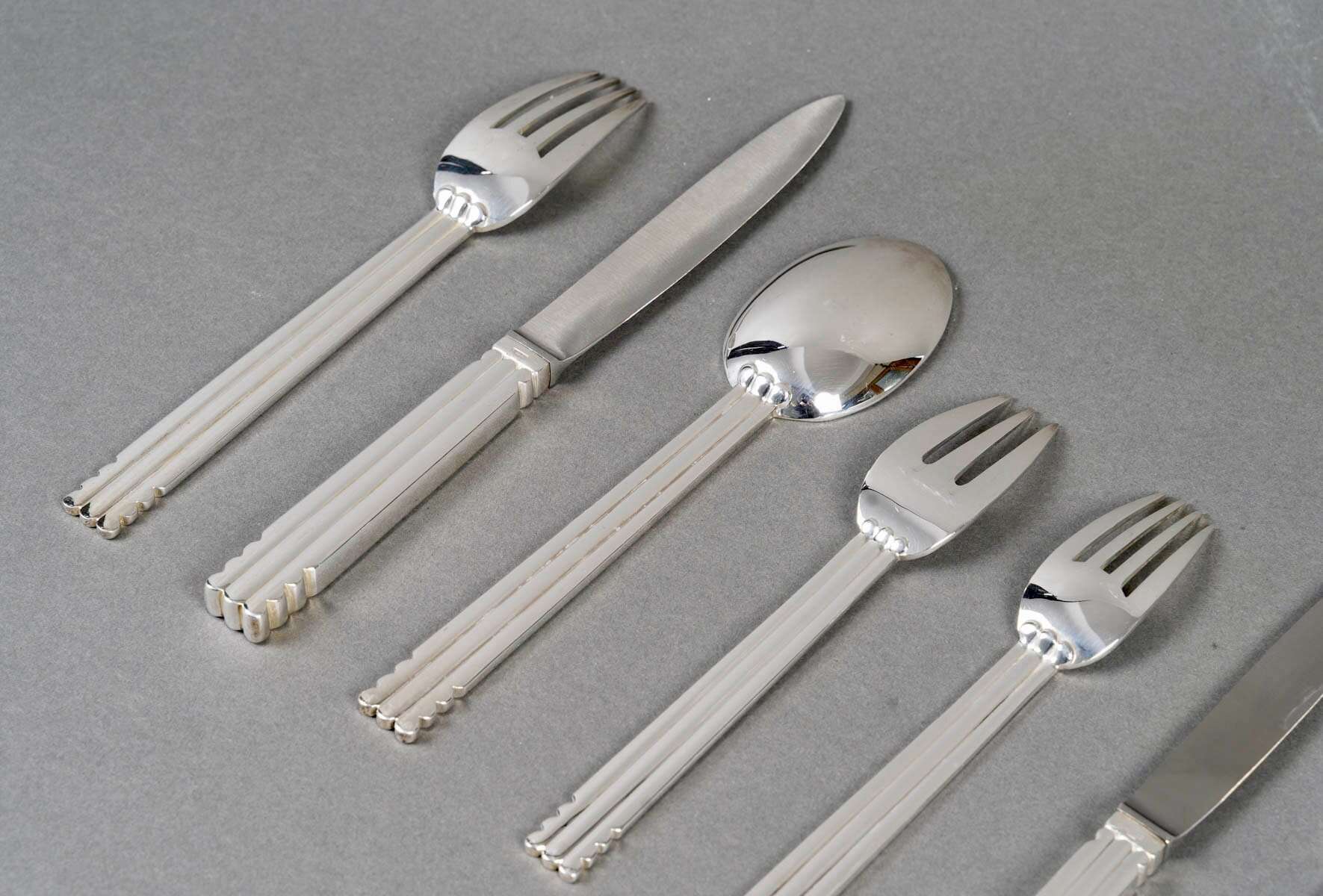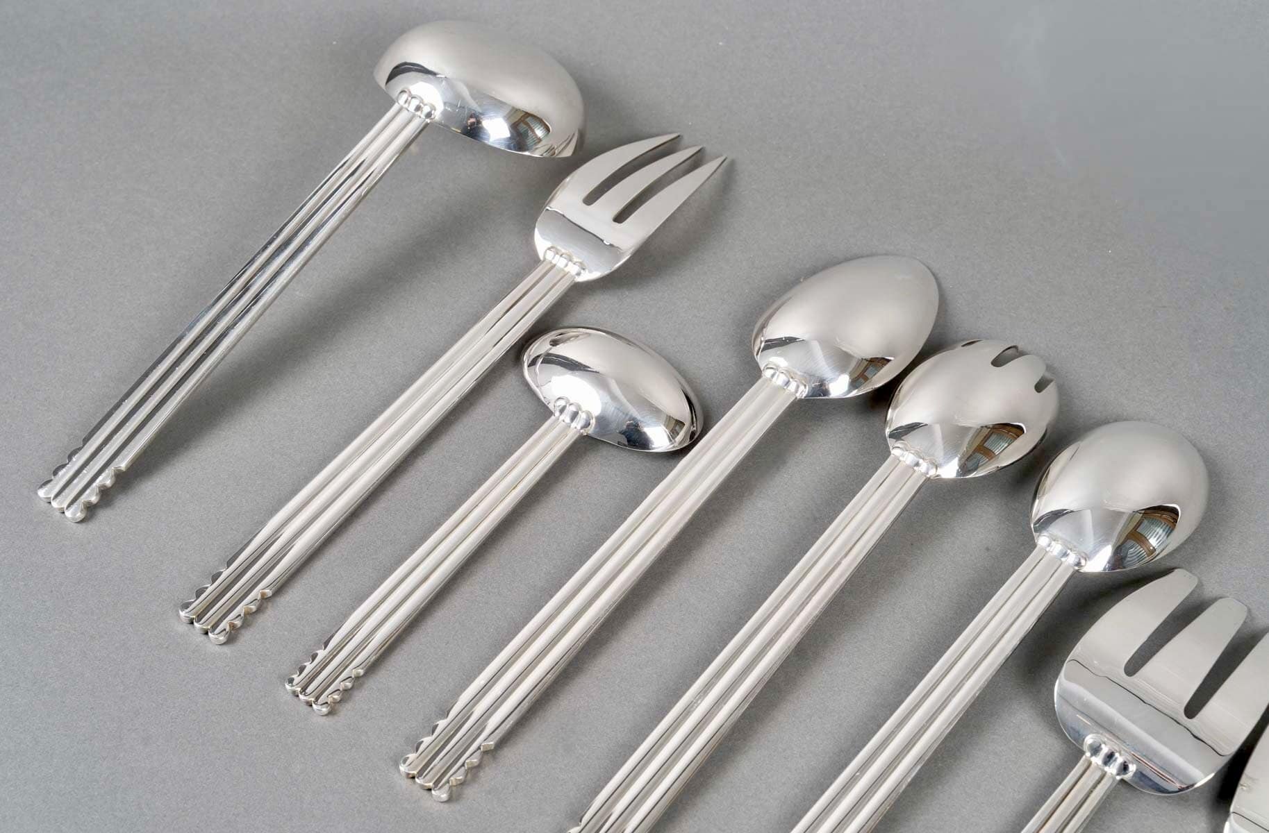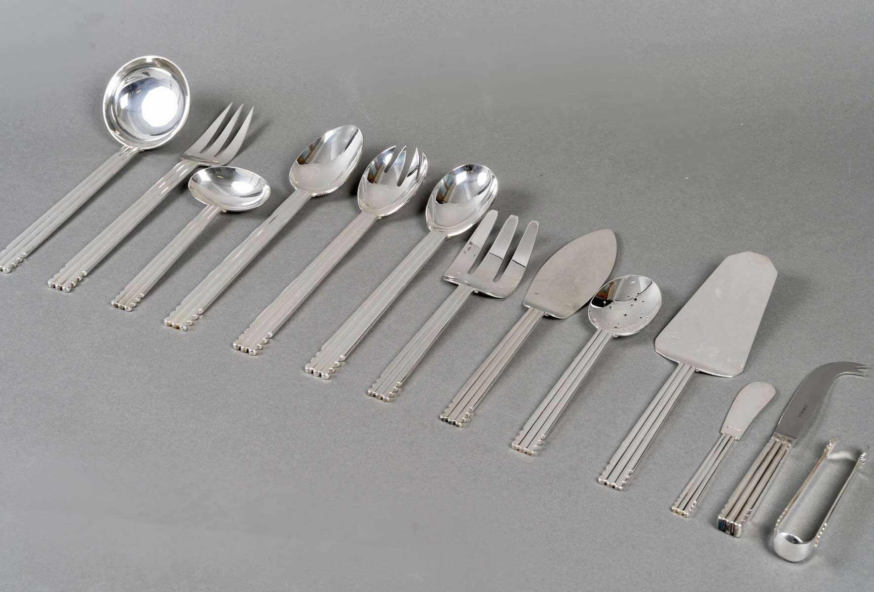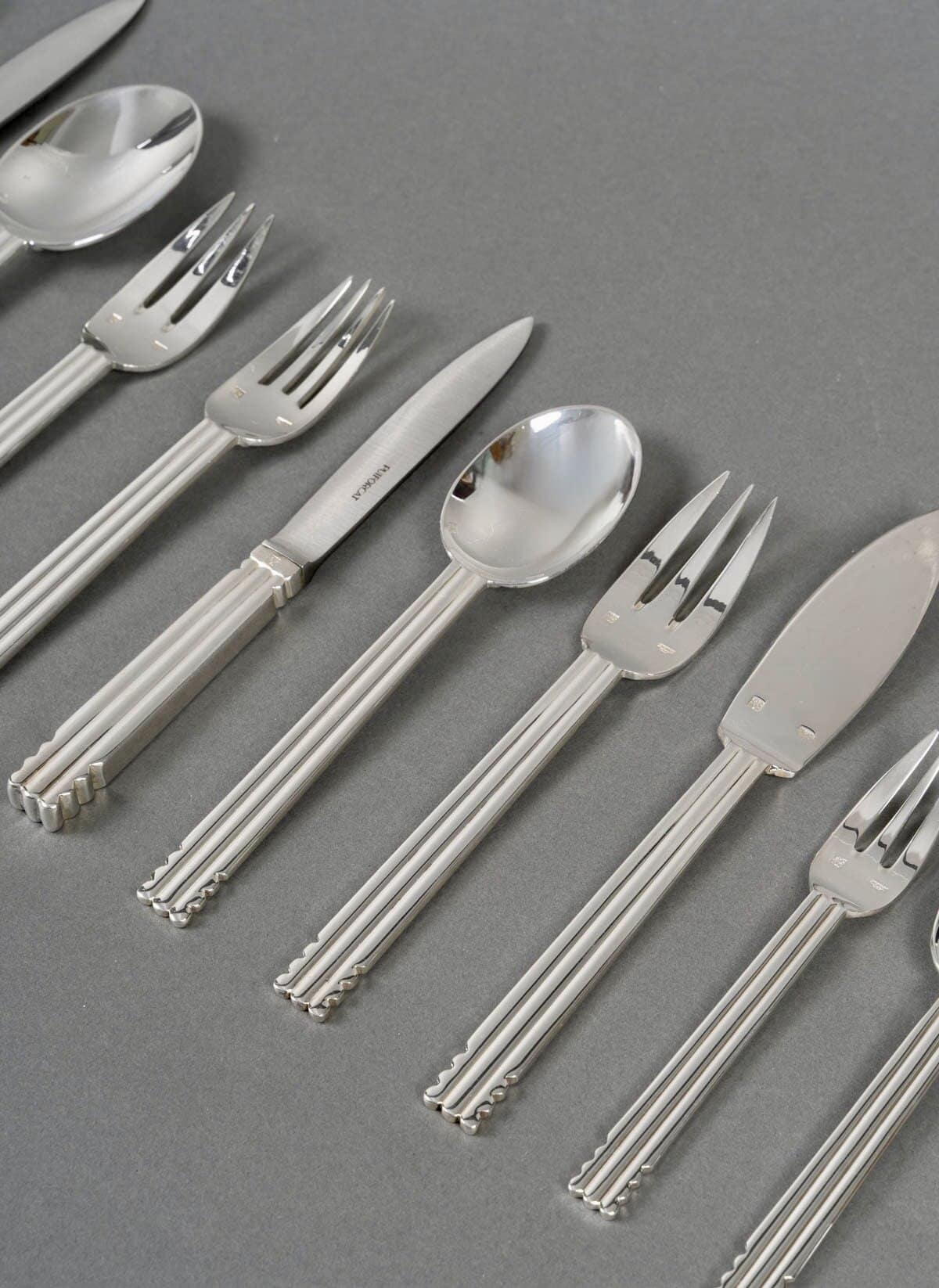 Ménagère « Nantes » en métal argenté de la Maison Puiforcat d’après un modèle de Jean Puiforcat.