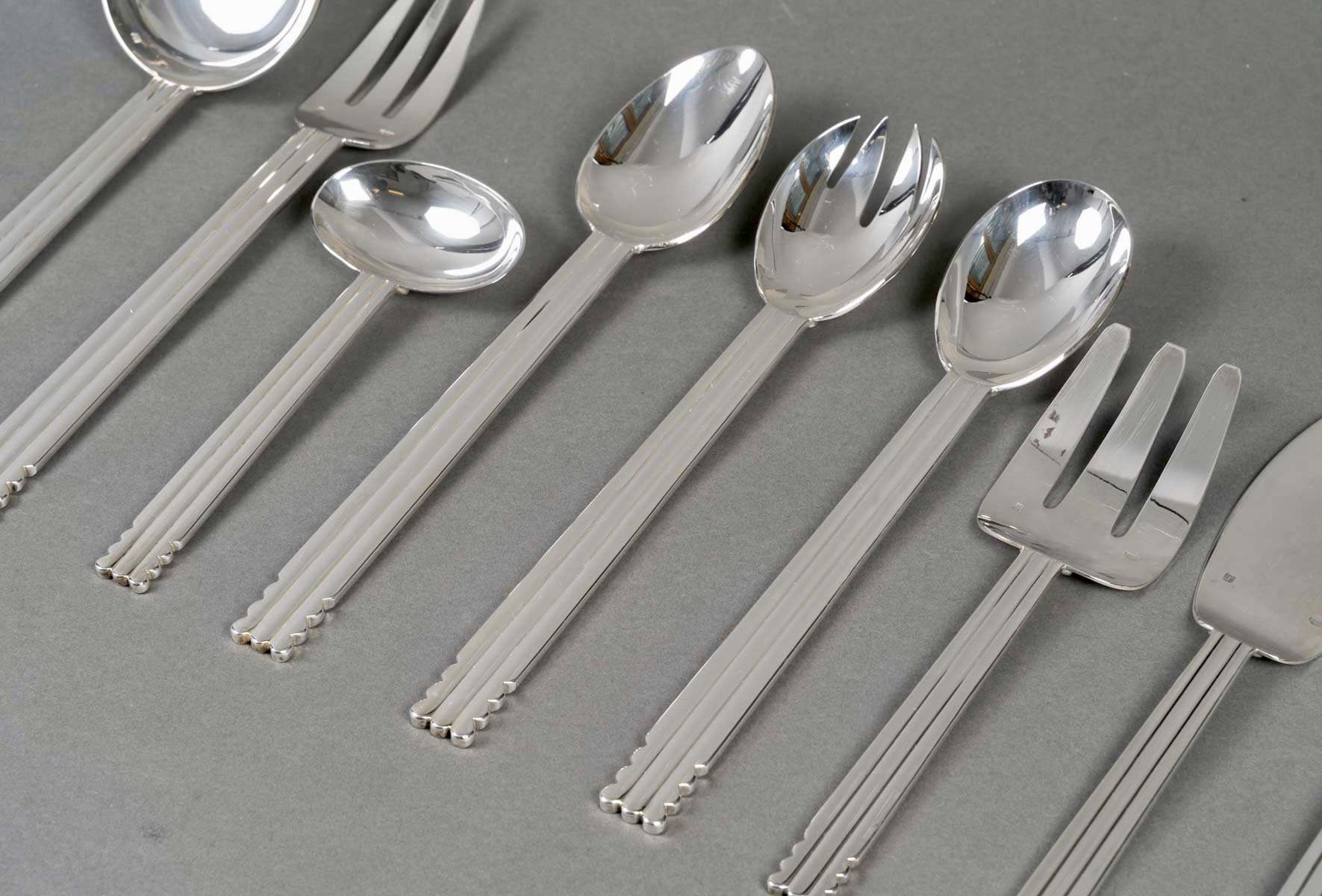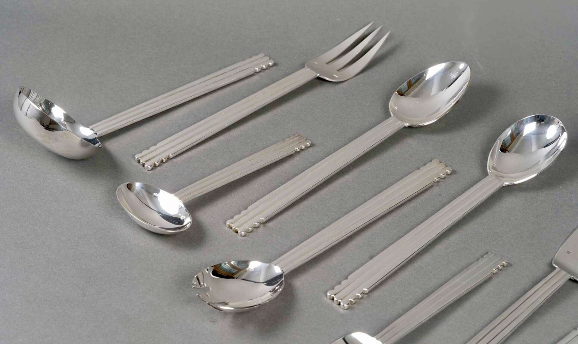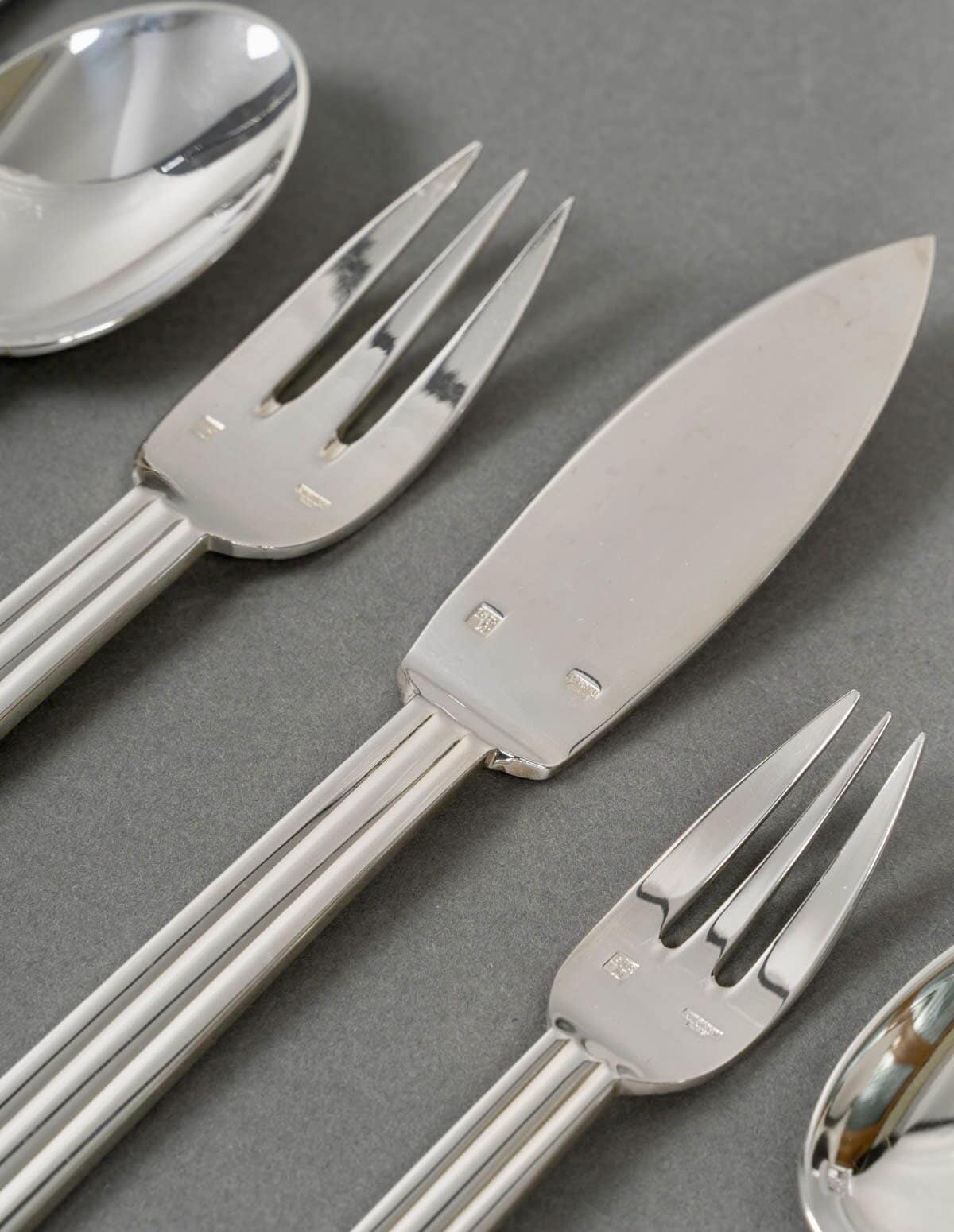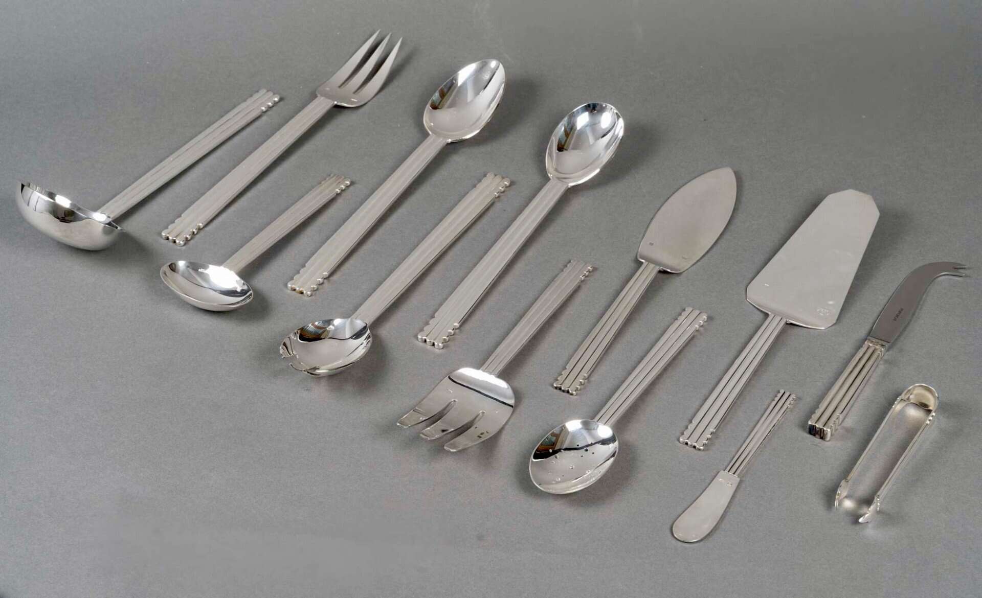 Ménagère « Nantes » en métal argenté de la Maison Puiforcat d’après un modèle de Jean Puiforcat.