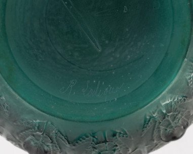 Vase « Fougères » vase en verre moulé pressé teinté vert