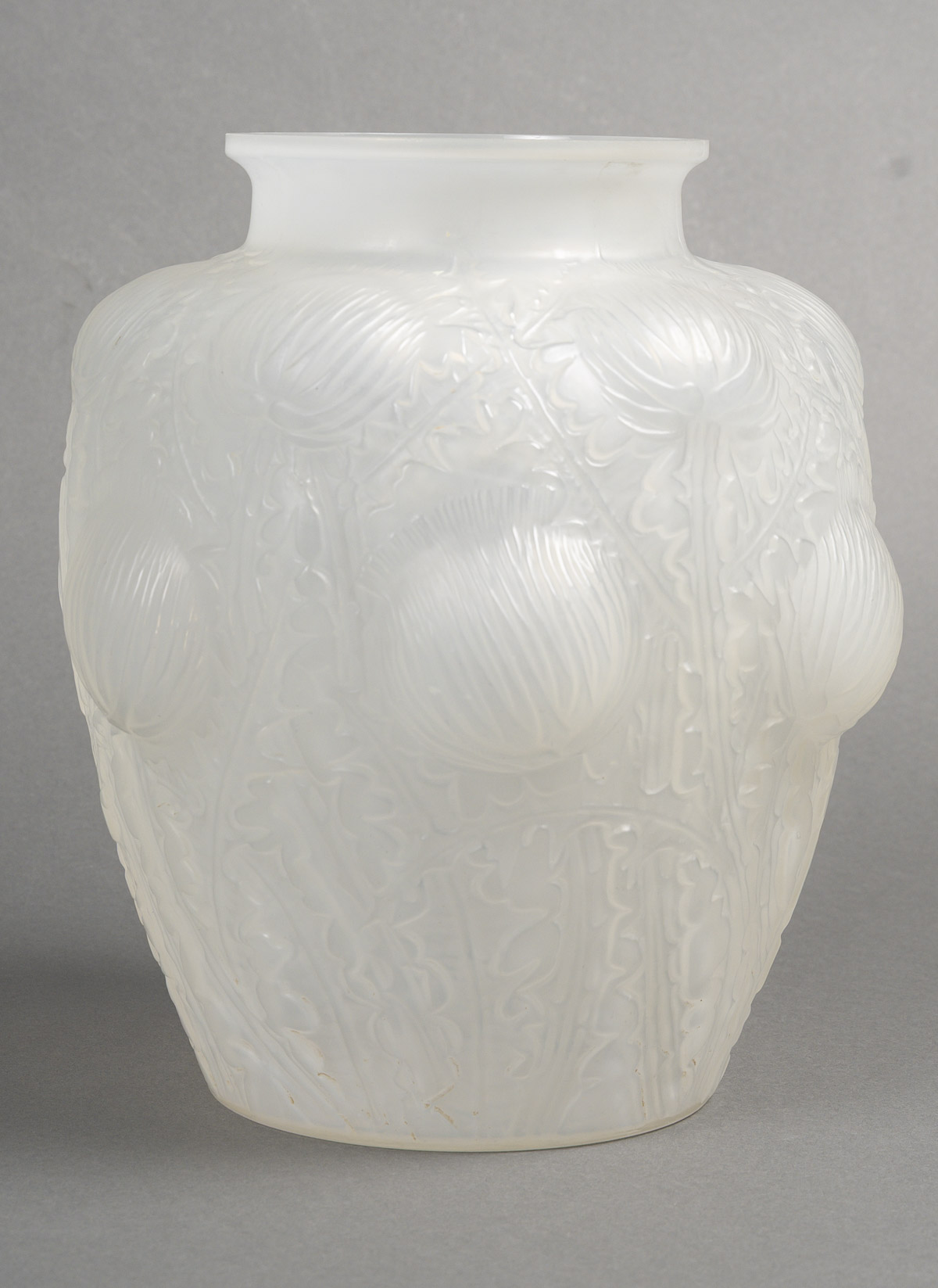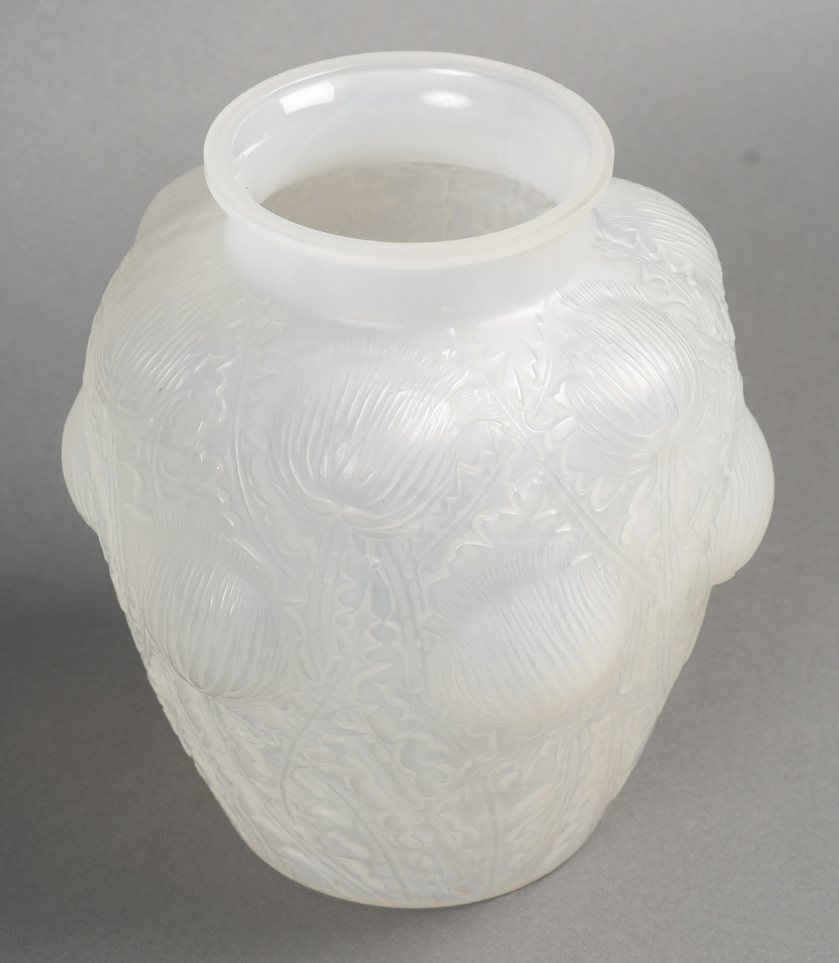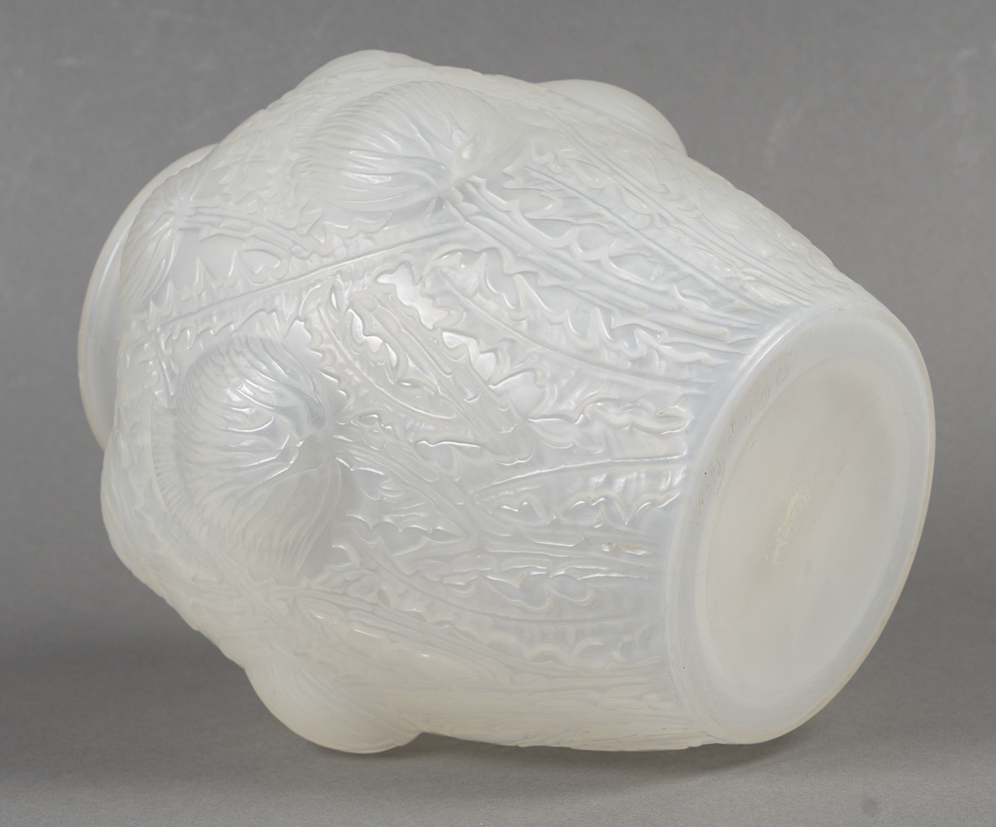 Vase “Domrémy” dit aussi « aux Chardons » créé le 16 novembre 1926 modèle en verre blanc soufflé, moulé, patiné opalescent et couleur (opaque).