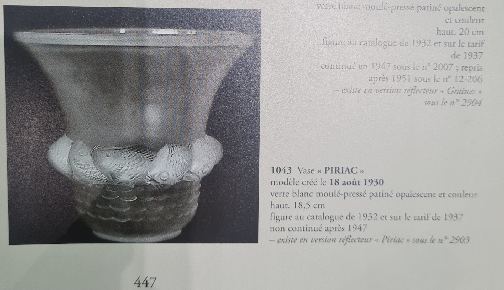 Bibliographie : Félix Marcilhac, René Lalique – Catalogue Raisonné du travail du verre Les Editions de l’Amateur, Paris, 2011, No. 1043 page 447