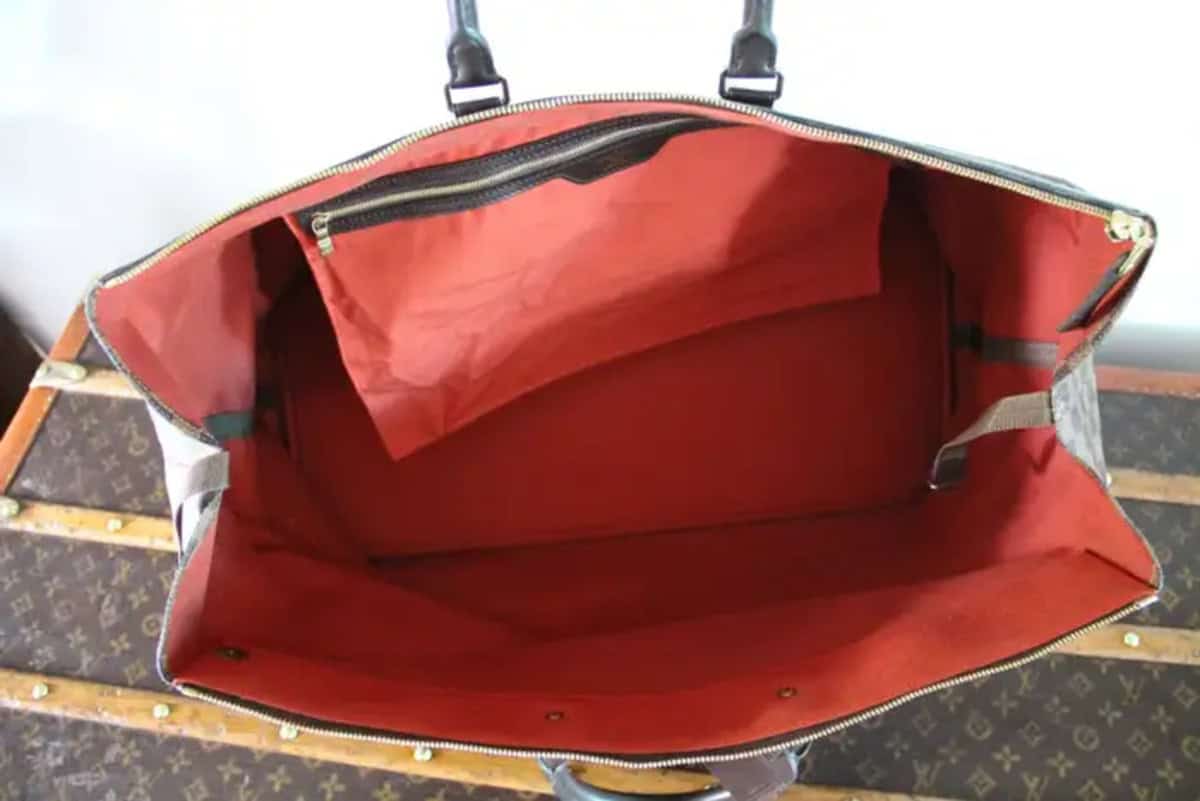 Ce magnifique grand sac de voyage Louis Vuitton en toile à motif damier et cuir marron foncé est en très bon état. C’est un sac Vuitton parfait pour une escapade d’un week-end. Ses deux poignées en cuir sont très confortables. Il peut être utilisé dans deux positions, plié ou déplié pour offrir encore plus d’espace à l’intérieur. Très pratique grâce à sa taille, il est également très élégant. Il possède toujours son porte-nom Louis Vuitton ainsi que son cadenas Louis Vuitton d’origine. Son intérieur est en tissu rouge avec une poche plate fermée par un zip. Il possède toujours son numéro de série. Comme ce sac n’est plus vendu dans les boutiques Louis Vuitton, c’est un must-have pour tous les collectionneurs Louis Vuitton. Ses dimensions sont 60 cm x 28 cm, 28 cm de haut ou 45 cm de haut avec les poignées.