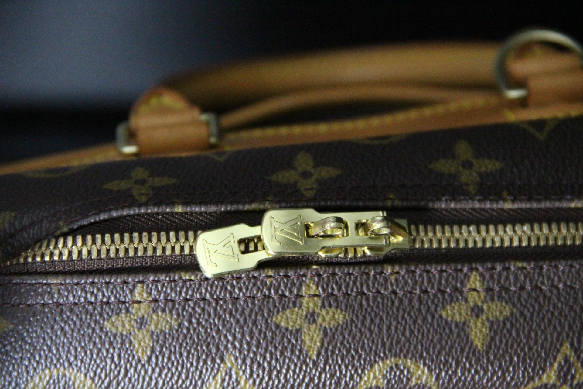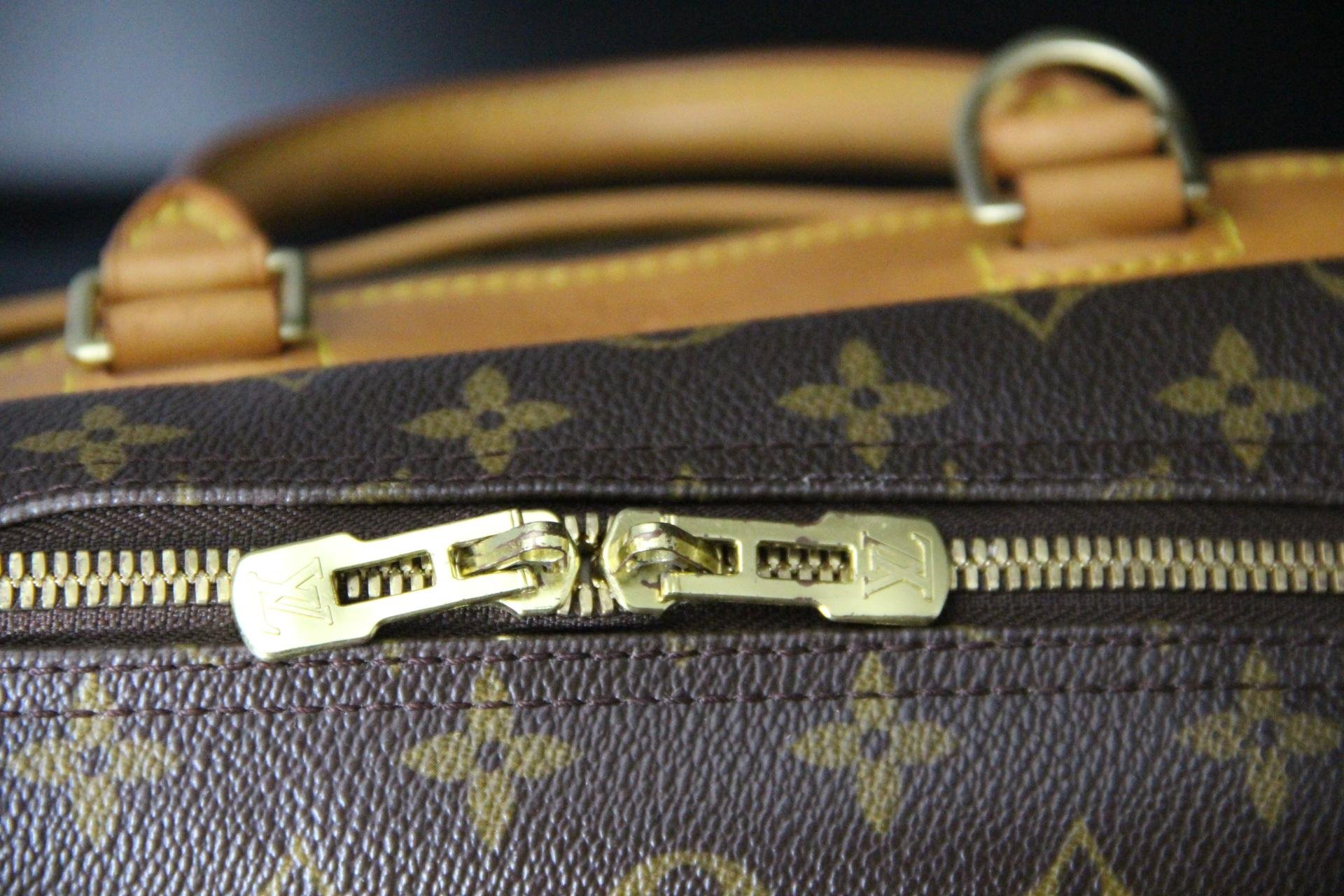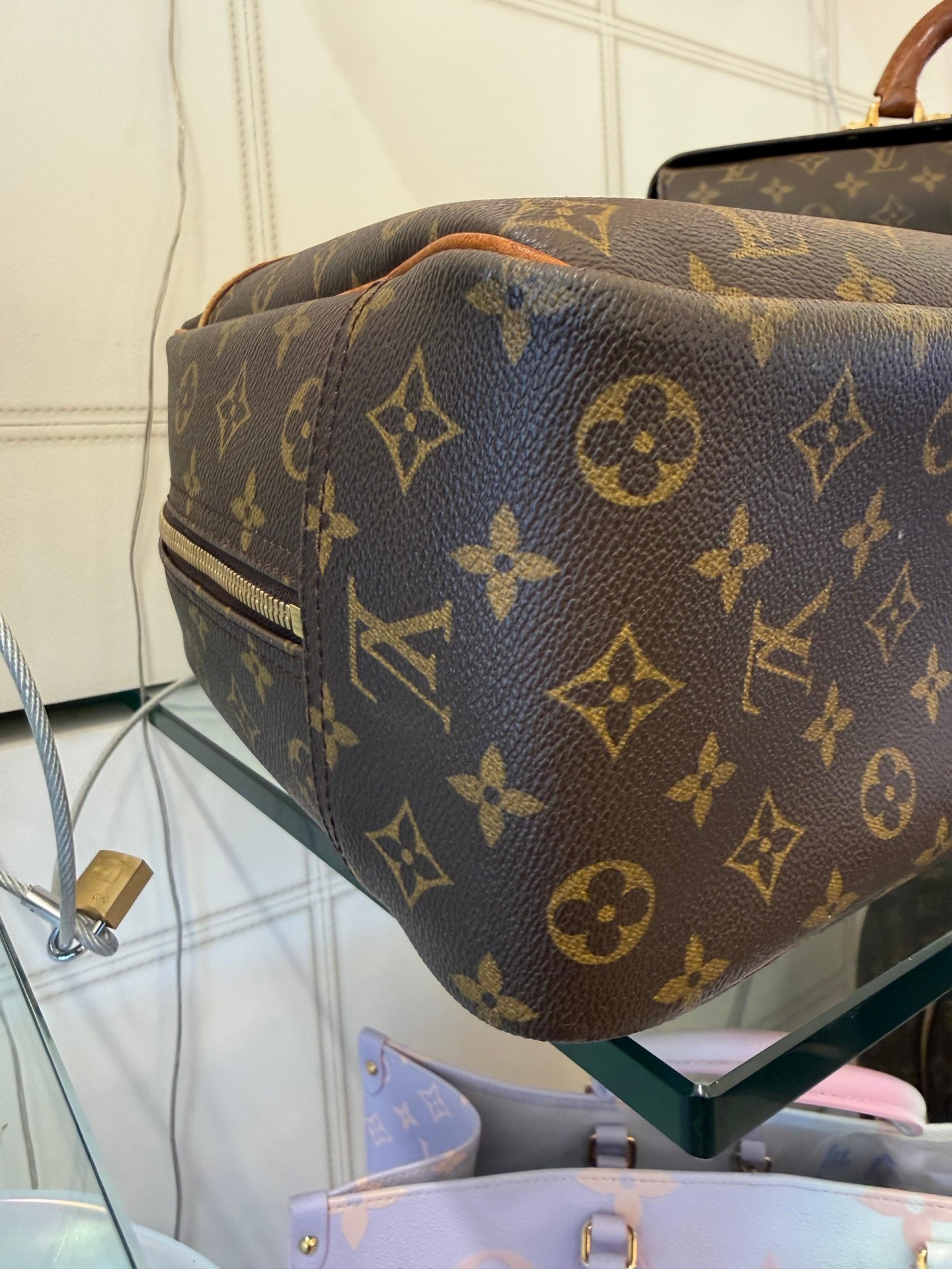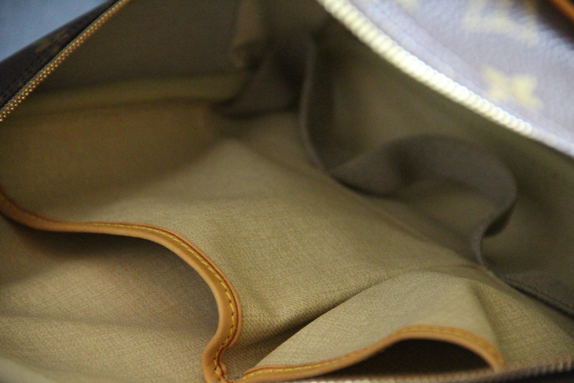 Son extérieur est en très bon état ainsi que son intérieur beige. Son zip fonctionne parfaitement et son utilisation est très souple. Ses coins ne sont pas du tout utilisés. La toile reste solide et propre avec un monogramme bien défini. Le cuir n’est pratiquement pas patiné. Les poignées et les garnitures sont structurellement parfaites.