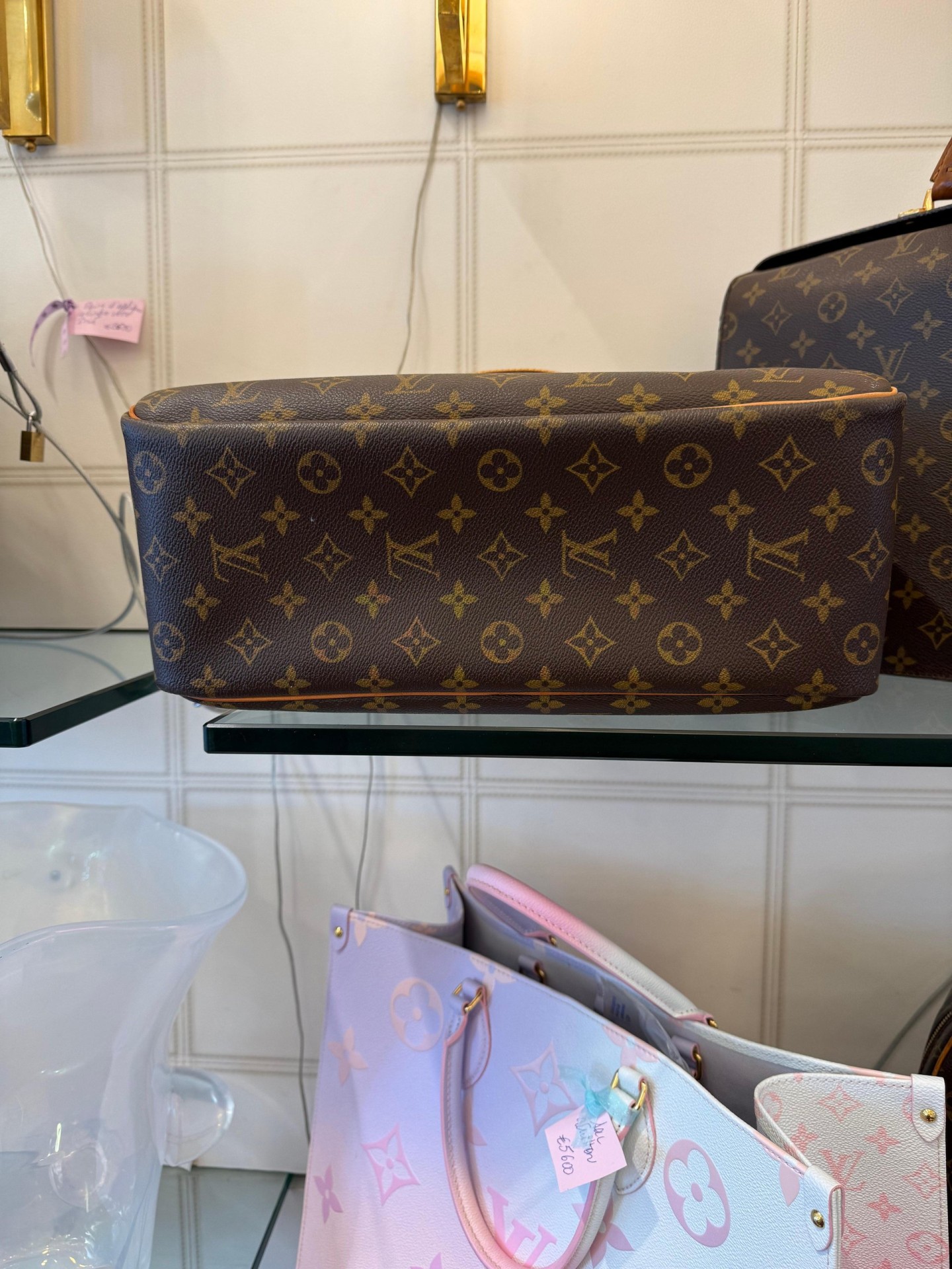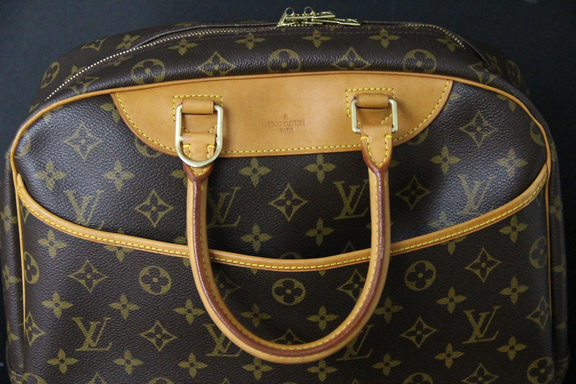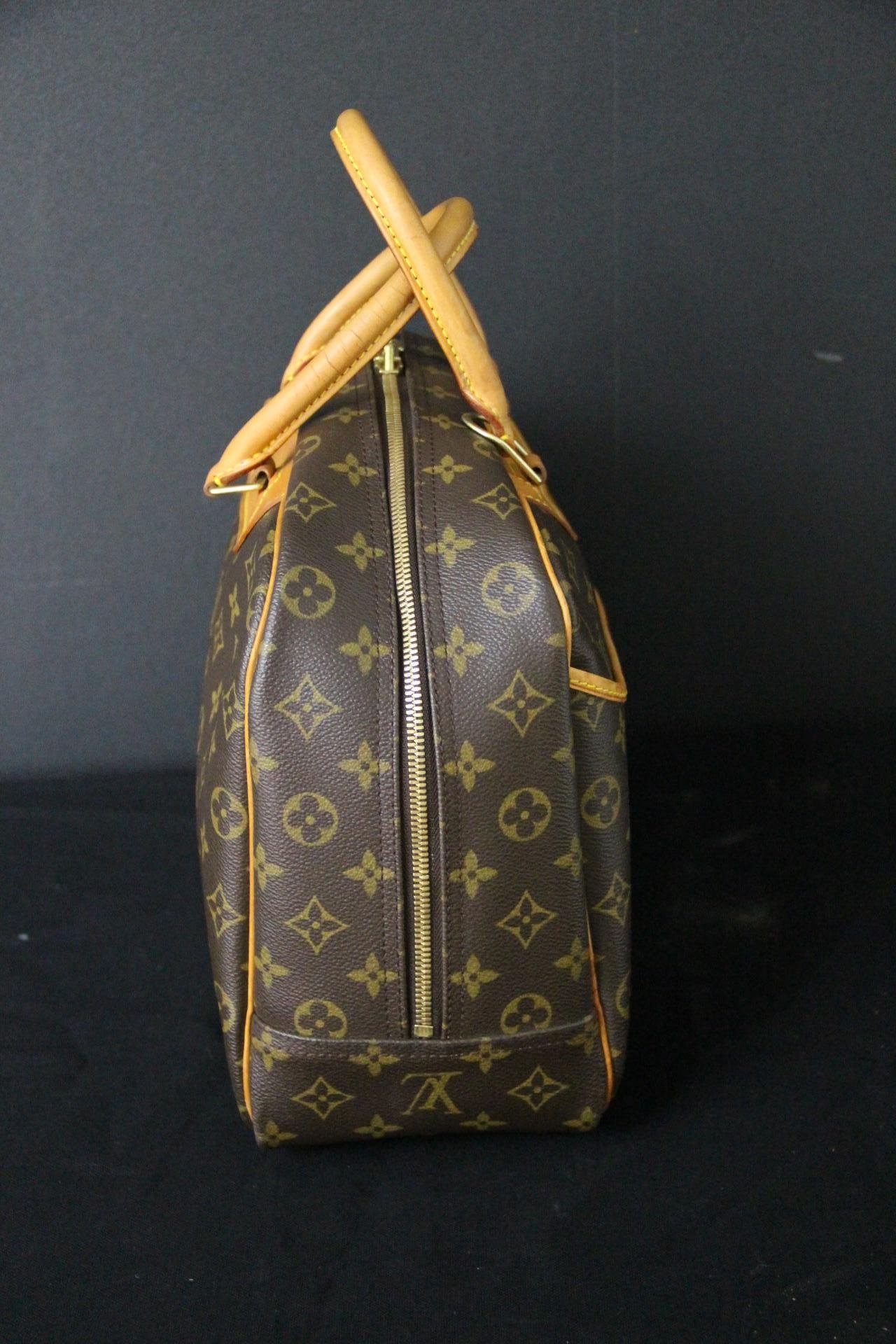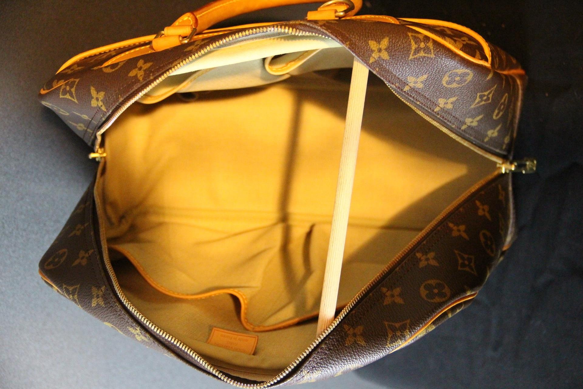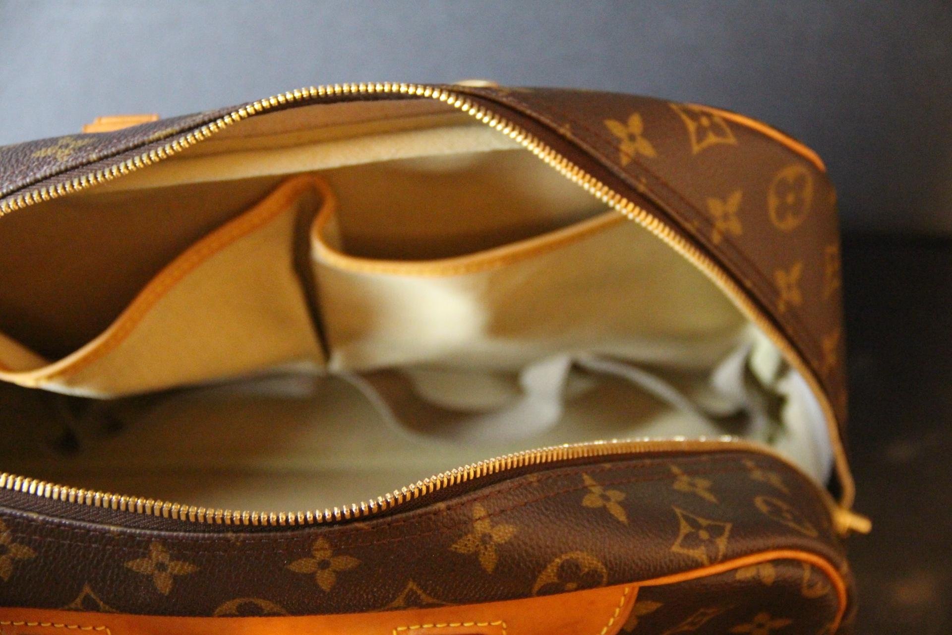 Son extérieur est en très bon état ainsi que son intérieur beige. Son zip fonctionne parfaitement et son utilisation est très souple. Ses coins ne sont pas du tout utilisés. La toile reste solide et propre avec un monogramme bien défini. Le cuir n’est pratiquement pas patiné. Les poignées et les garnitures sont structurellement parfaites.