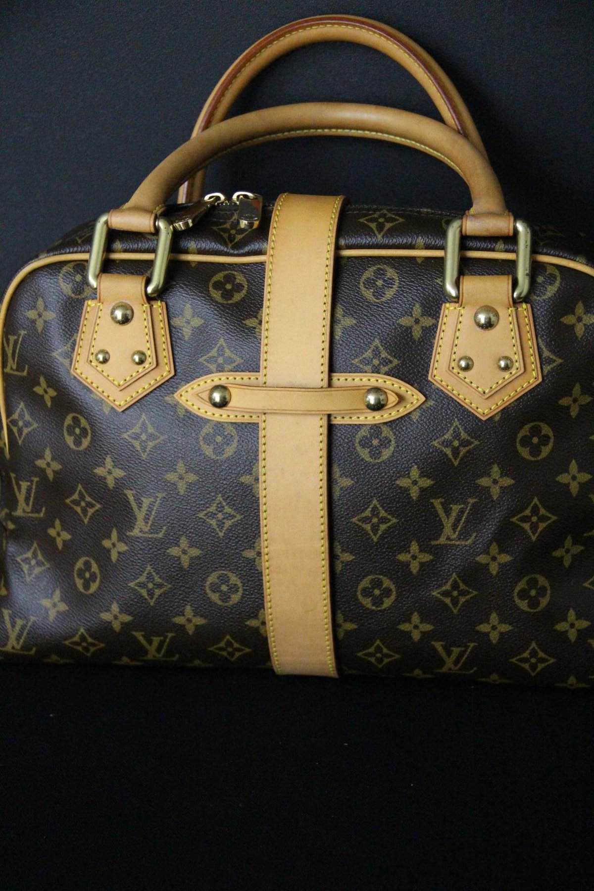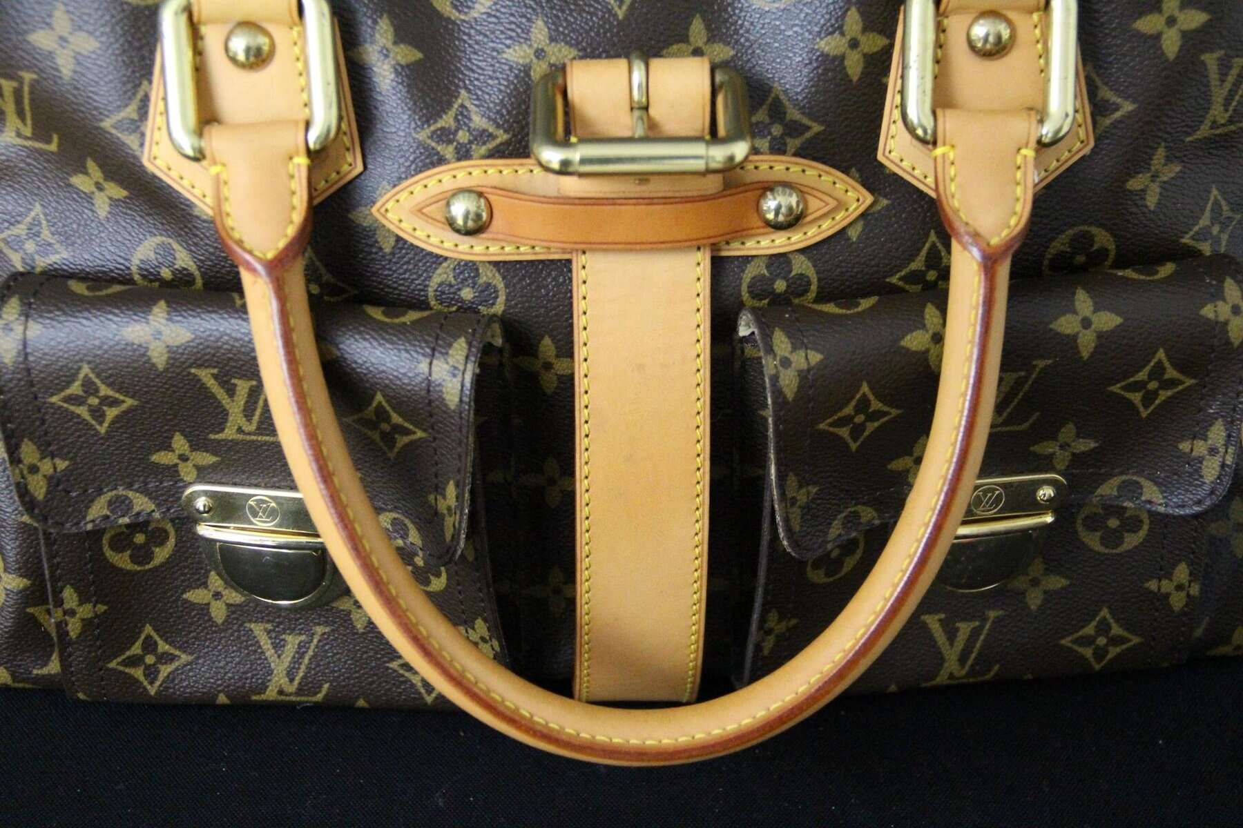 Les ferrures restent brillantes avec une légère usure en surface. L’intérieur est propre. Modèle Louis Vuitton très recherché et discontinué, le Manhattan GM est une pièce de collection qui se porte aussi bien en journée qu’en soirée et reste un incontournable de toute collection sérieuse de sacs à main de luxe.