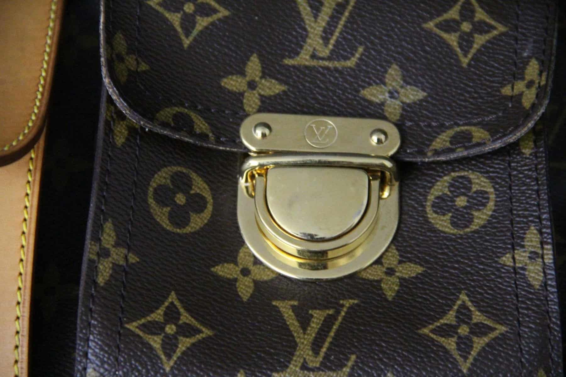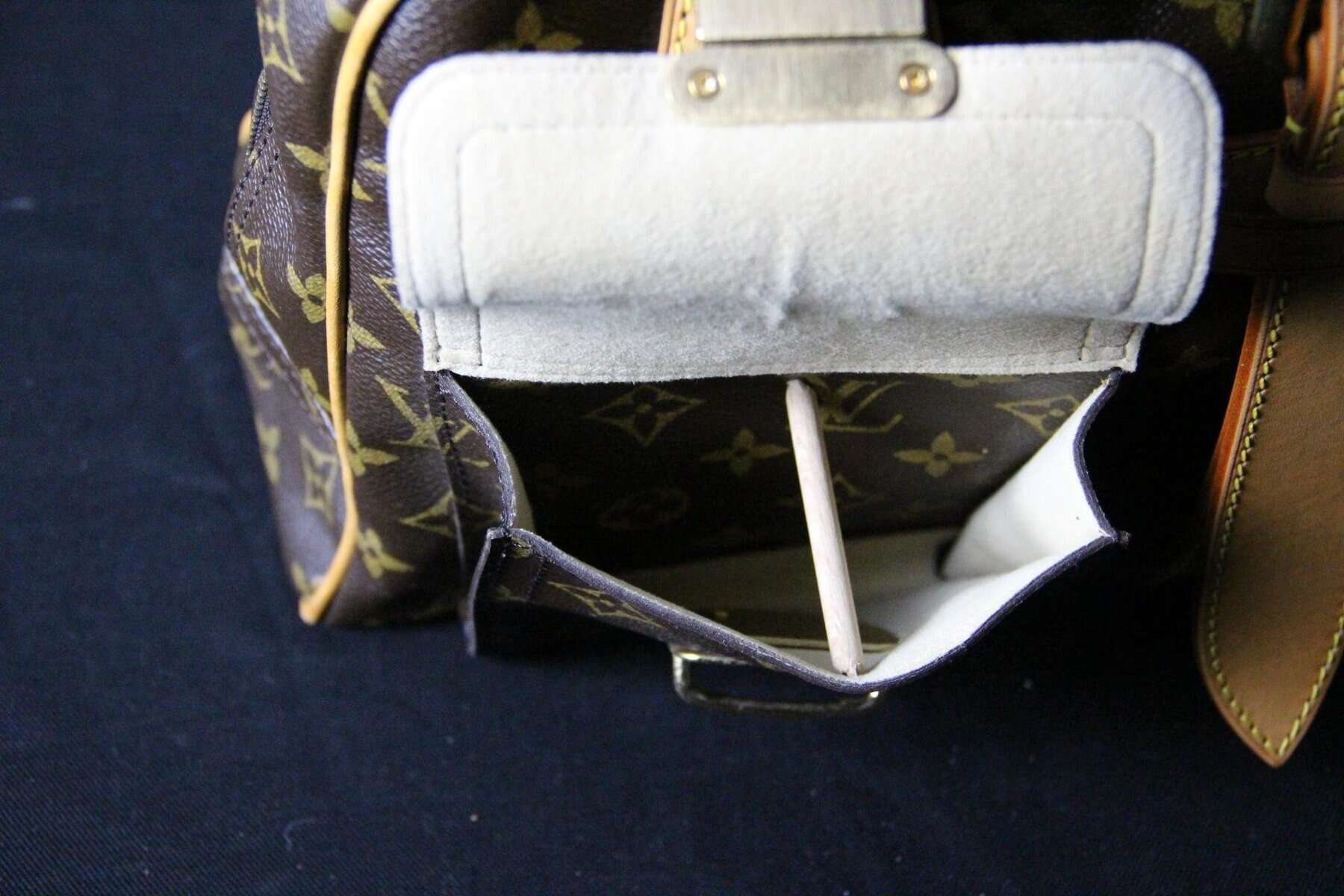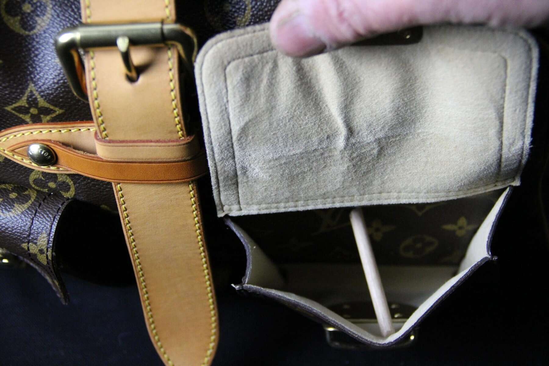 Ce sac Louis Vuitton très élégant est doté de deux grandes poches à rabat à l’avant avec des fermetures à pression LV gravées, d’une sangle centrale et de poignées supérieures en cuir pour un transport confortable à la main ou à l’épaule. La riche patine de couleur miel du cuir ajoute du caractère et de l’authenticité, complétant à merveille la toile enduite.