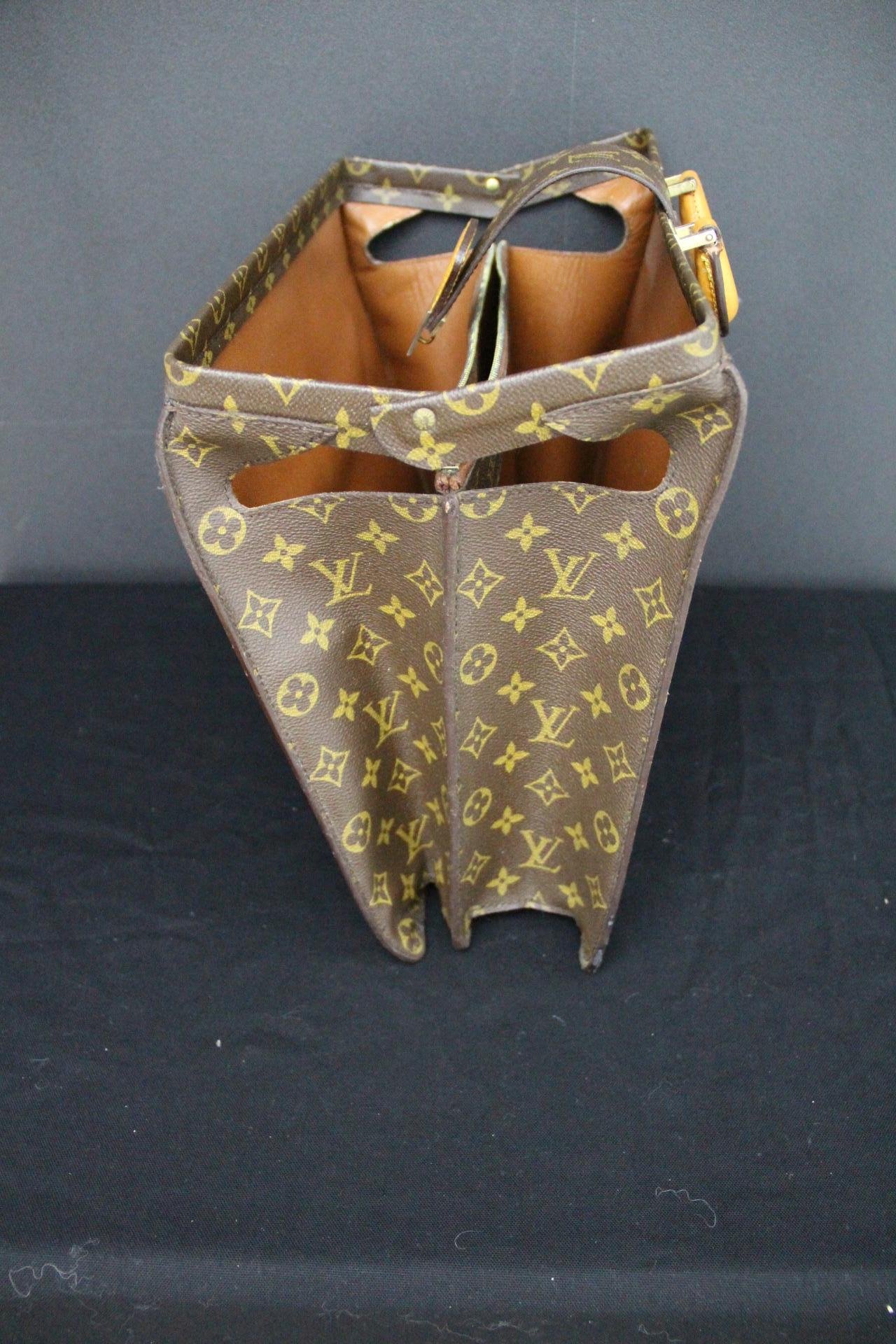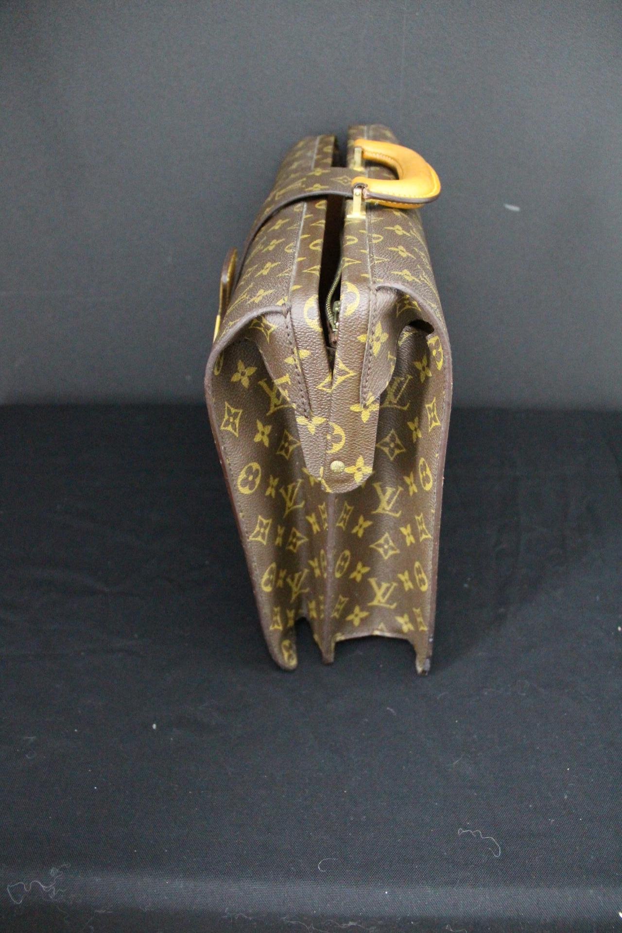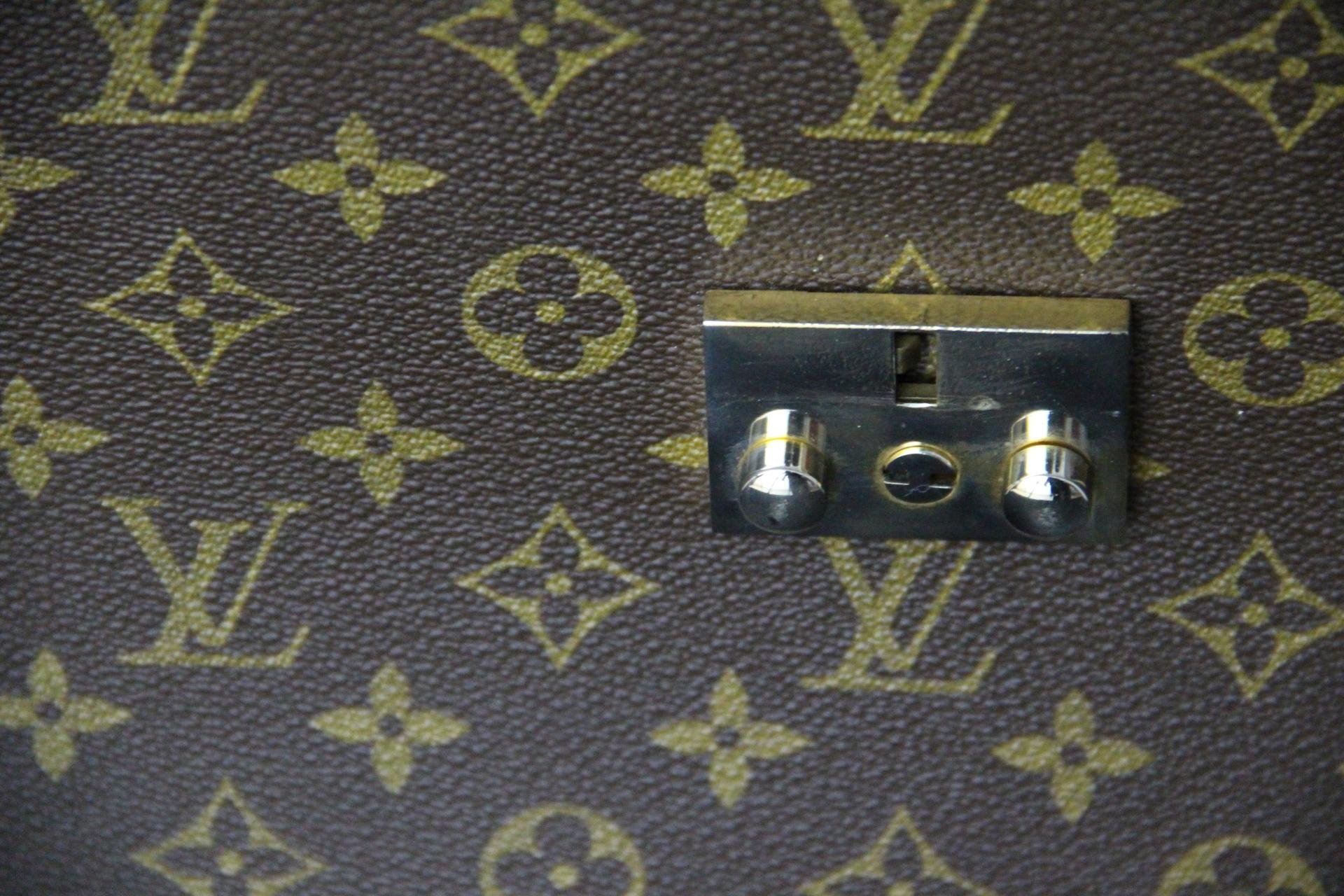 Cette mallette Louis Vuitton très originale est dotée d’une toile monogrammée et d’une serrure en laiton. Elle possède également une magnifique poignée en cuir légèrement patinée et en bon état.