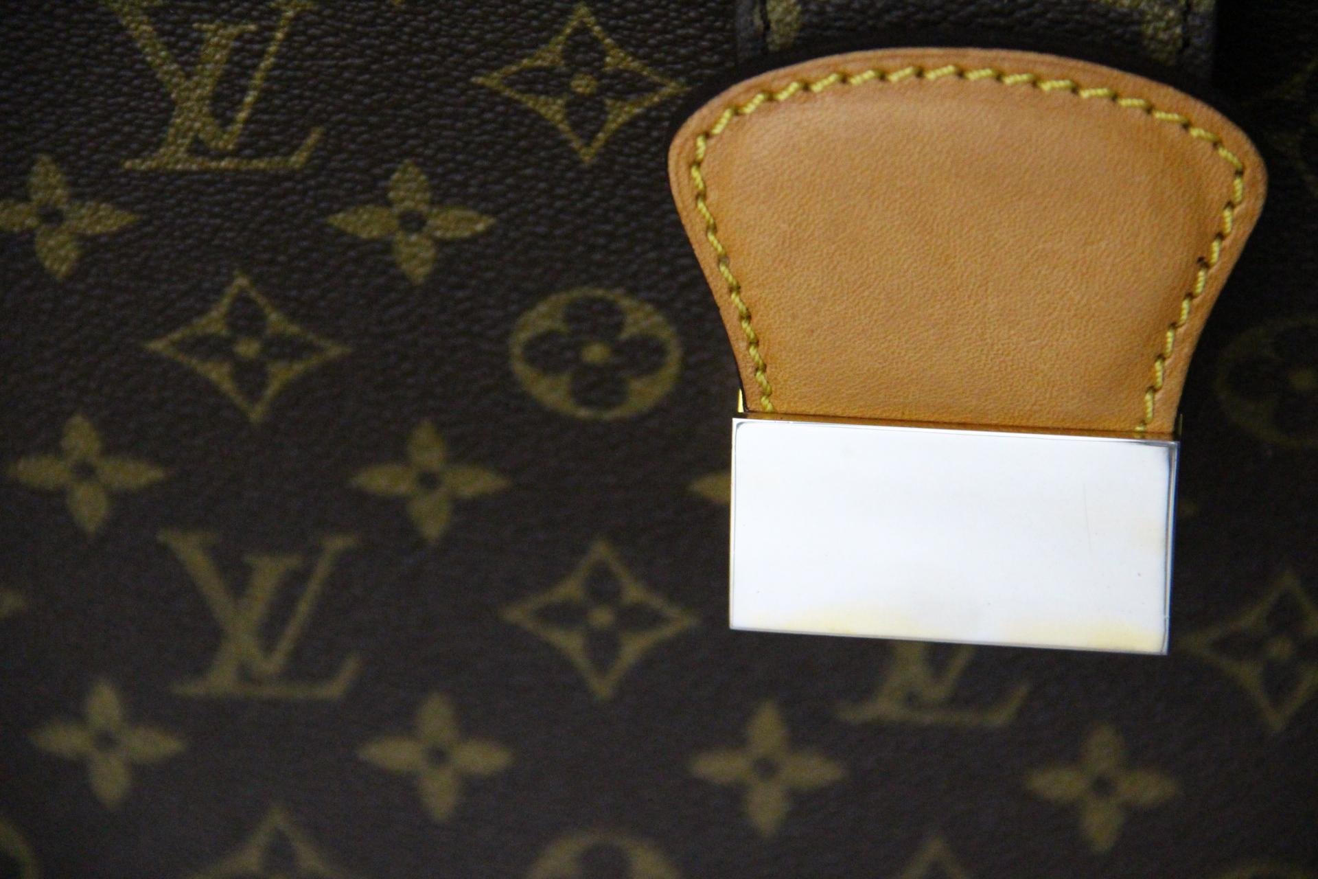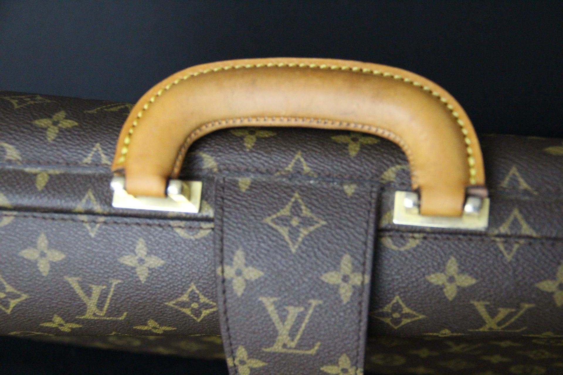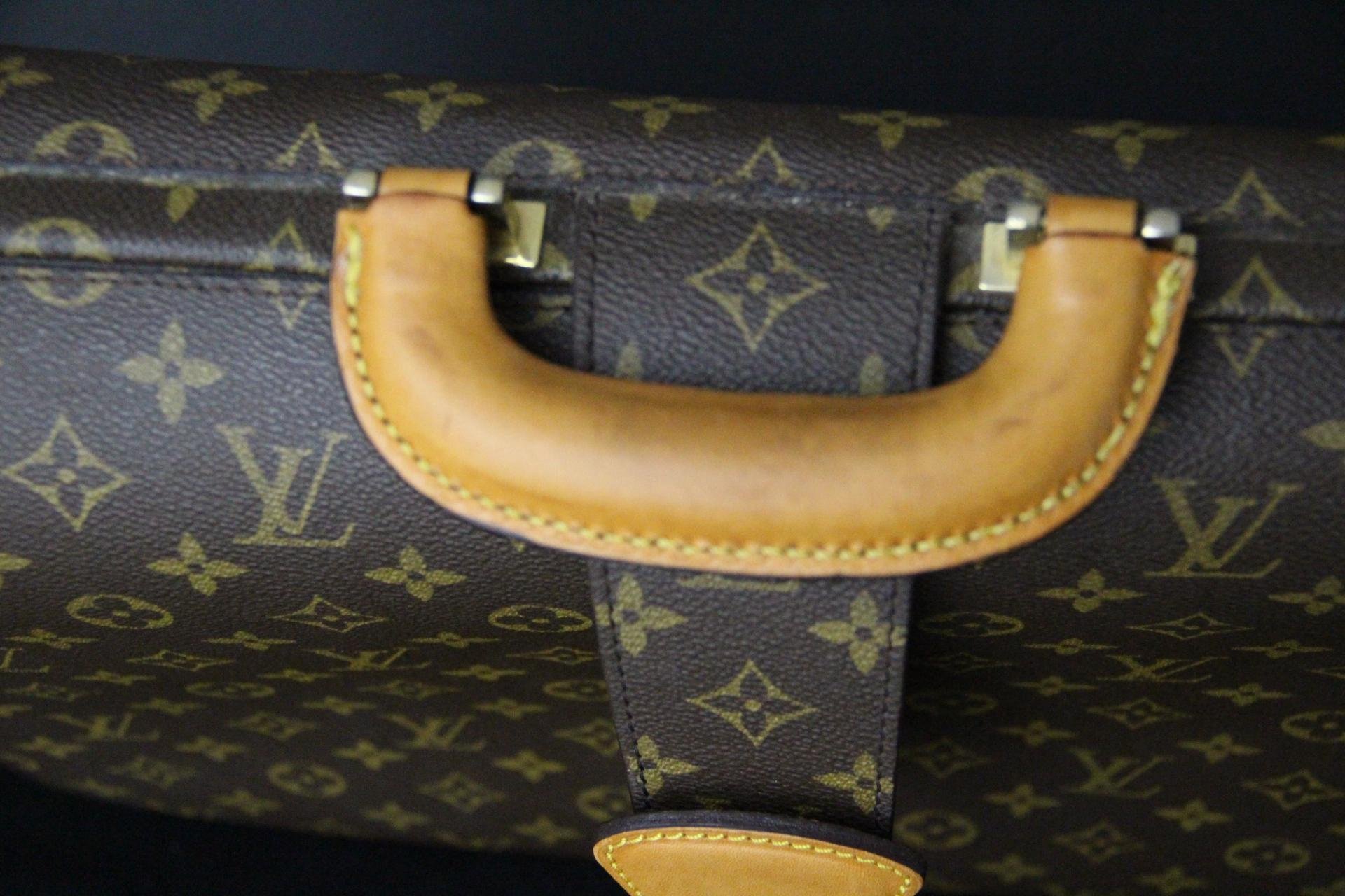 Cette mallette Louis Vuitton très originale est dotée d’une toile monogrammée et d’une serrure en laiton. Elle possède également une magnifique poignée en cuir légèrement patinée et en bon état.