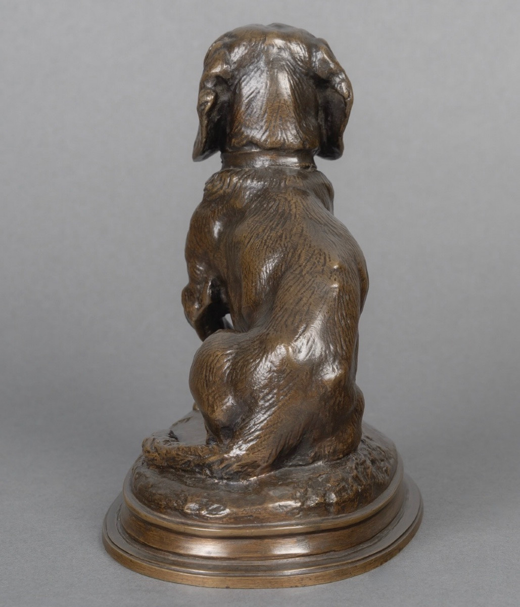 Sculpture – Basset Assis (Ravageot) , Emmanuel Frémiet (1824 -1910) – Bronze