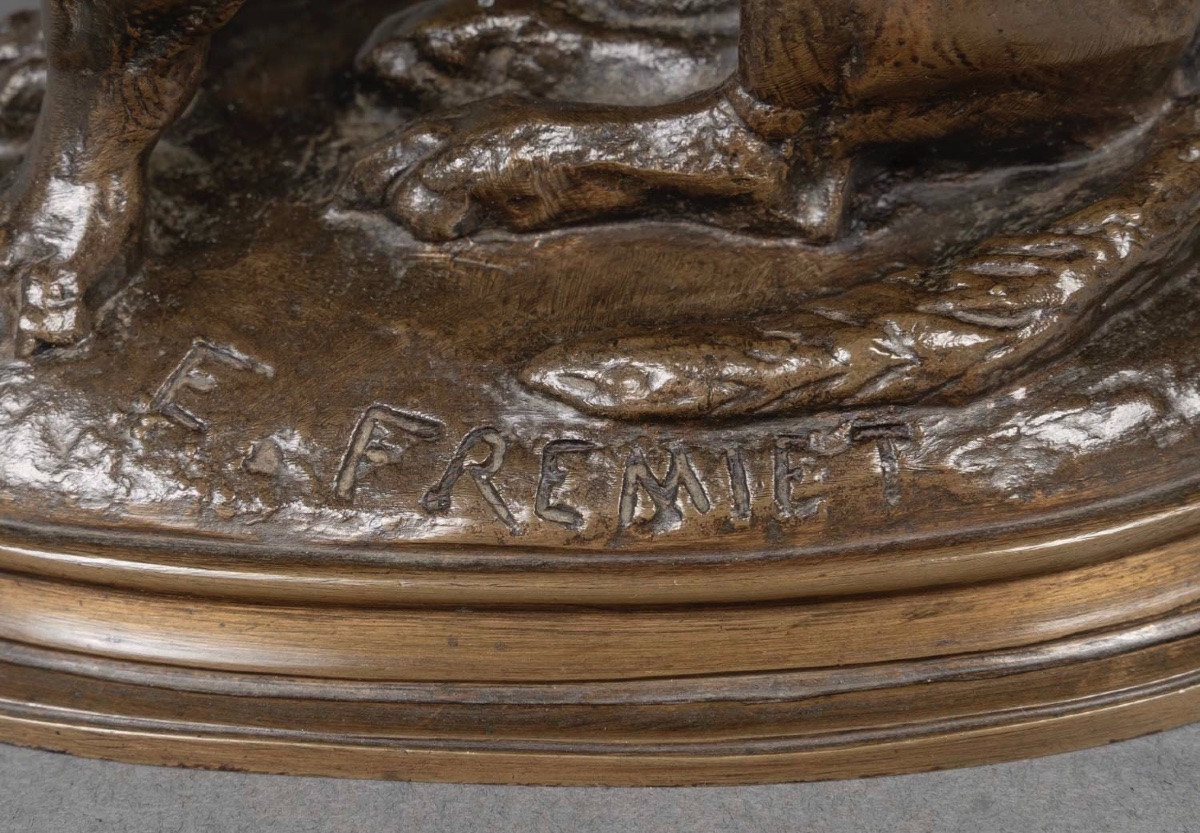 The sculptor’s signature « E. FREMIET » on the naturalistic base .