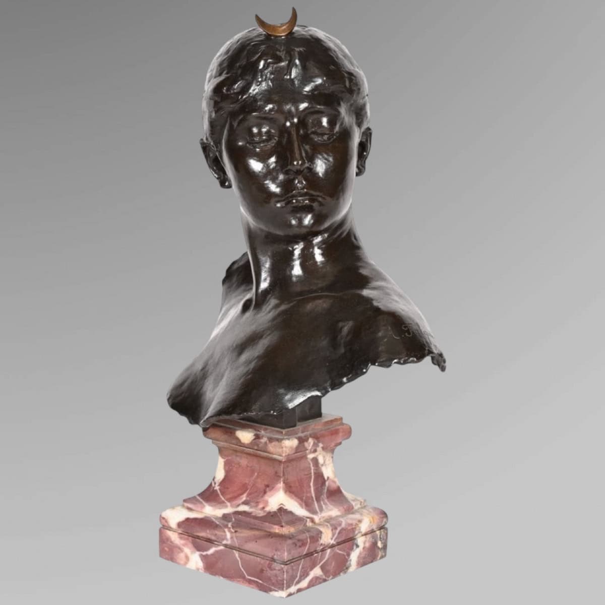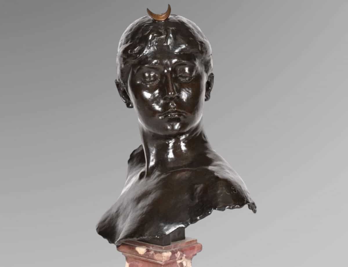 Important buste en bronze , à patine brune , représentant la déesse « Diane » , par le sculpteur Alexandre Falguière (1831-1900) .