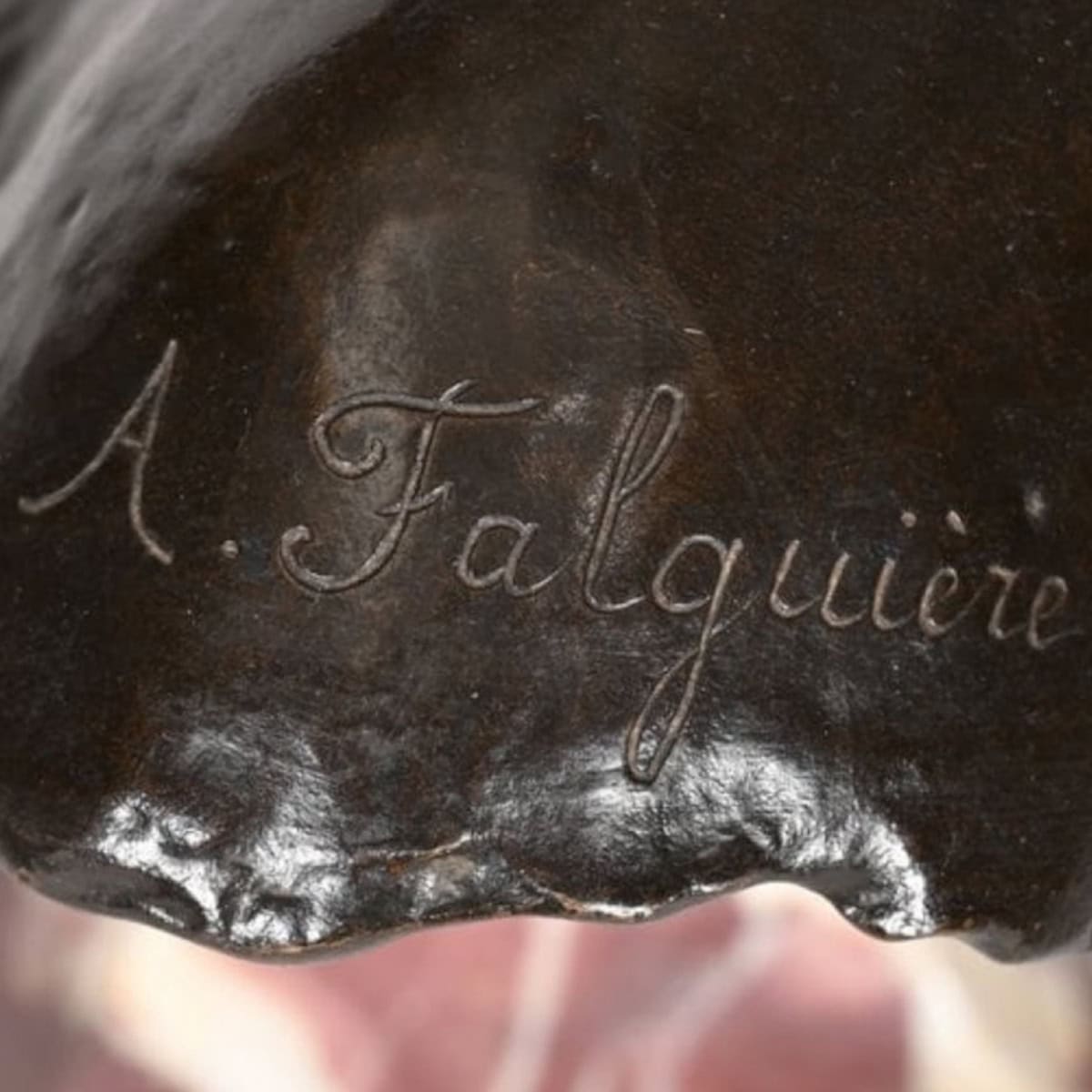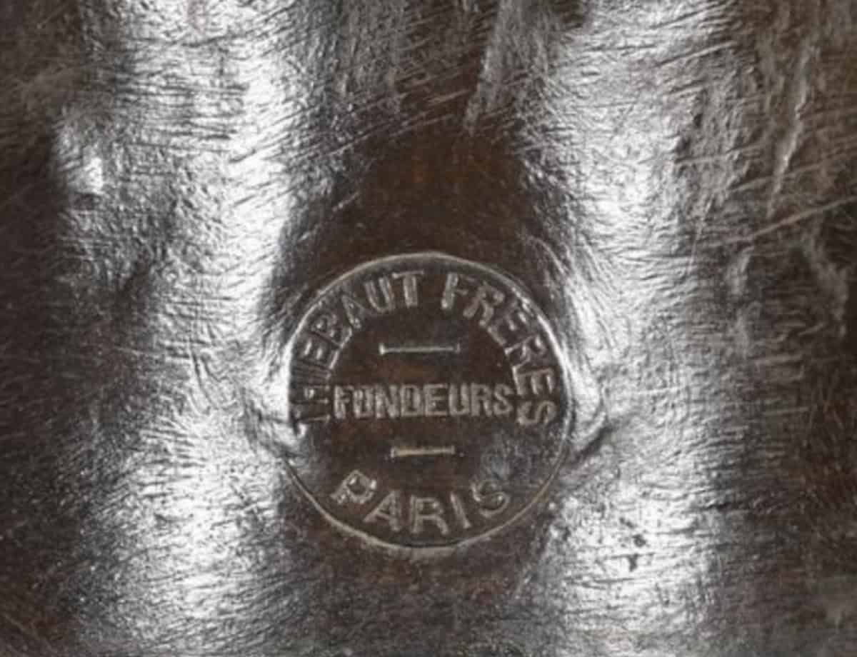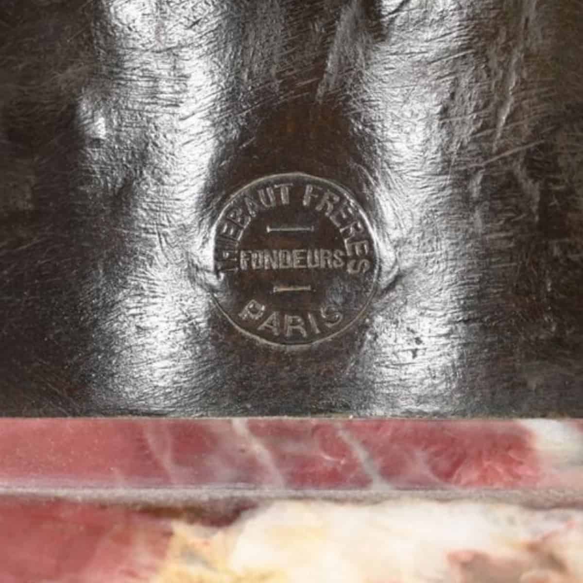 The sculptor’s signature « A. Falguière » is engraved on the back of the bust , along with the circular stamp of the foundry « THIEBAUT FRÈRES FONDEURS PARIS » .