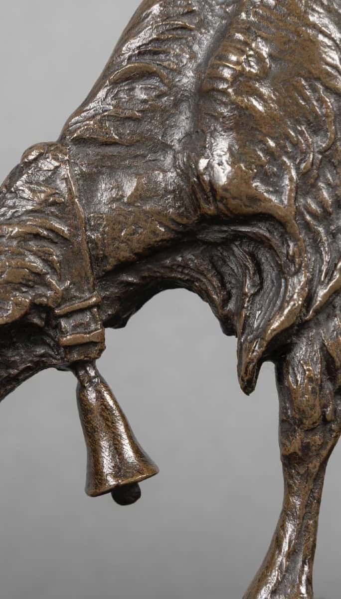 Bronze proof with brown patina , representing a « Grazing Goat » , wearing a bell around its neck , by the sculptor Pierre – Jules Mêne (1810-1879) .