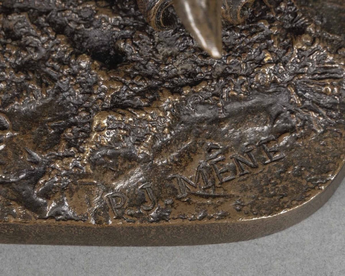 Sculpture signée « P.J.MÊNE » en creux , sur la terrasse naturaliste richement ciselée .
