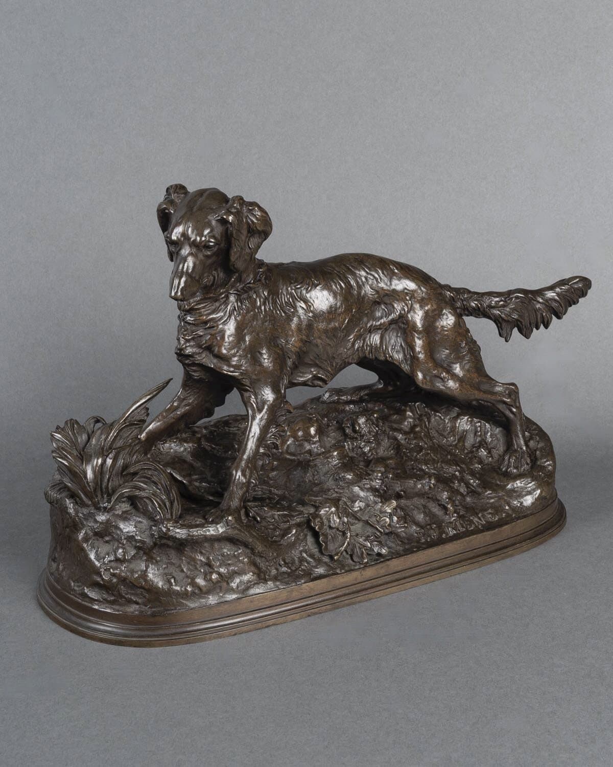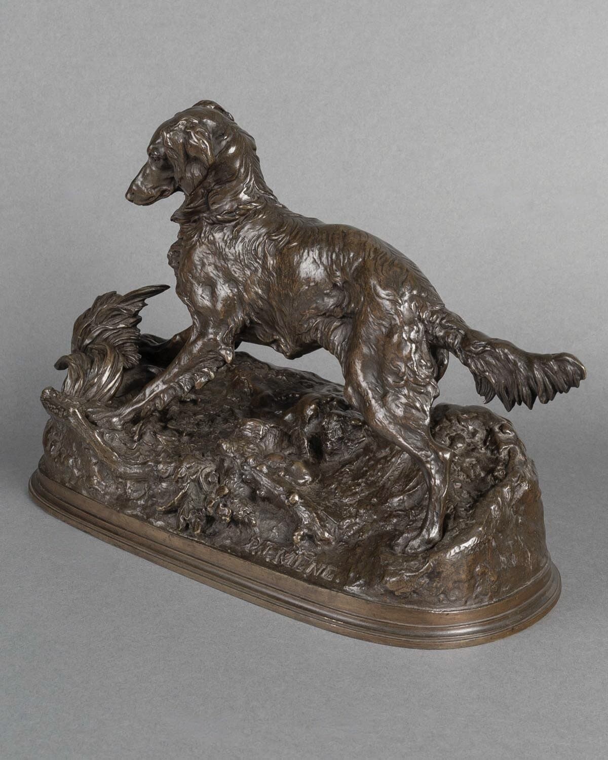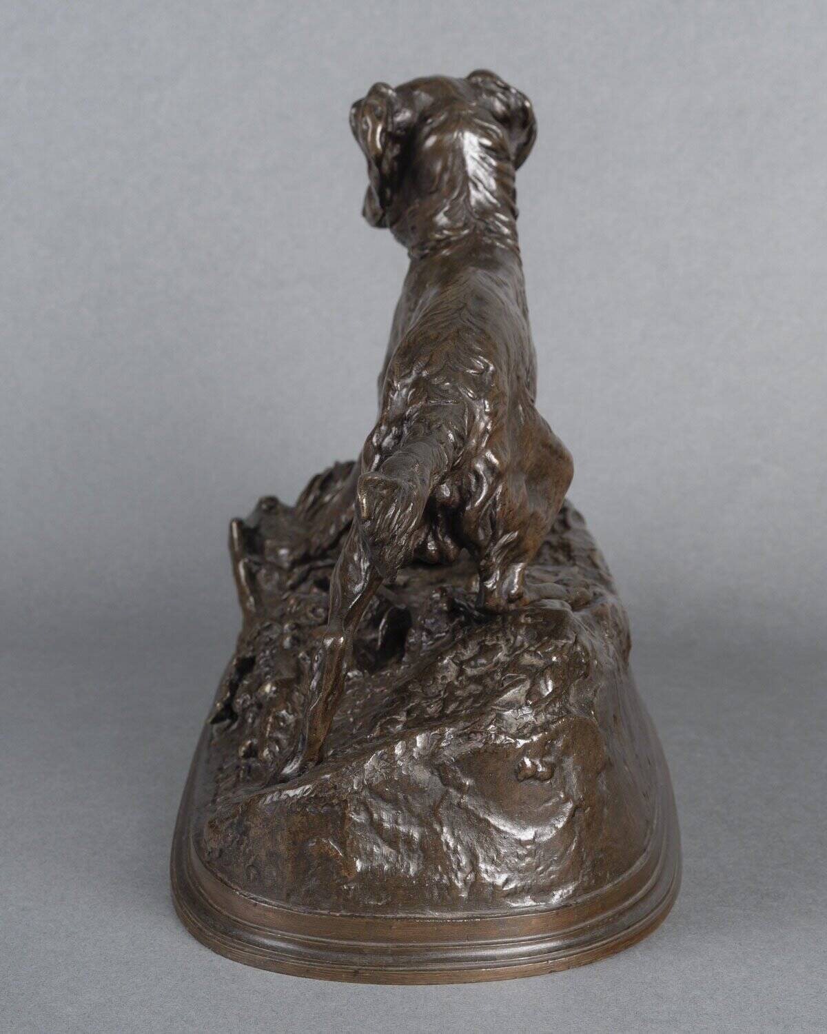 Bronze proof with brown patina , representing a hunting dog , of the « Setter » breed , by the sculptor Pierre-Jules Mêne (1810-1879).