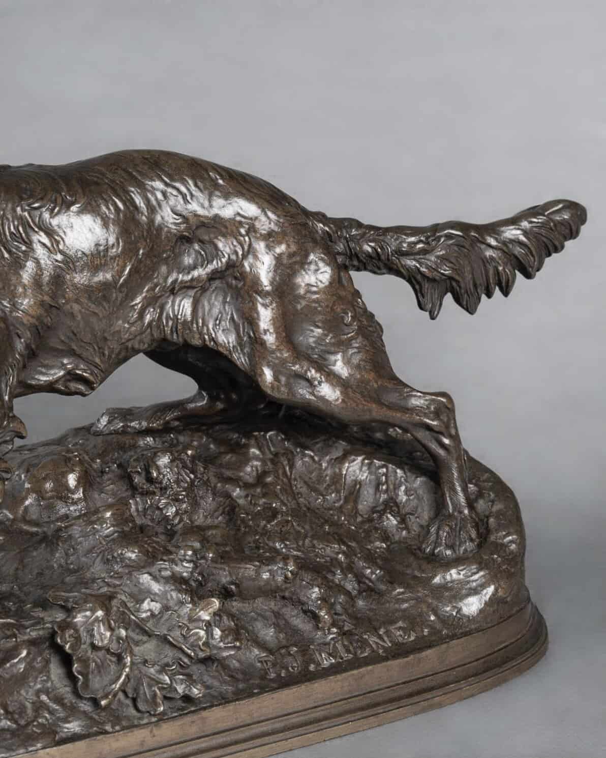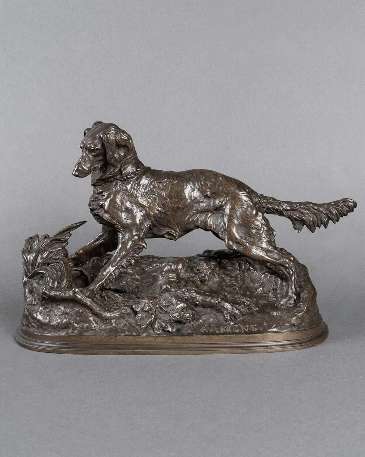 Épreuve en bronze à patine brune , représentant un chien de chasse , de race « Setter » , par le sculpteur Pierre – Jules Mêne (1810-1879) .