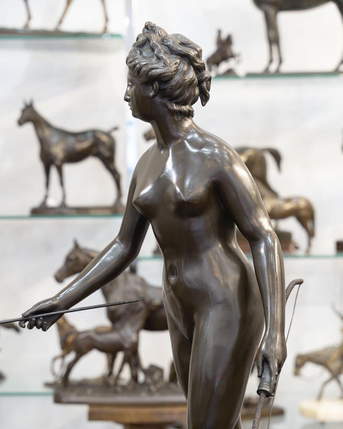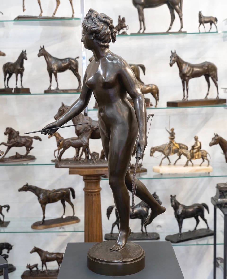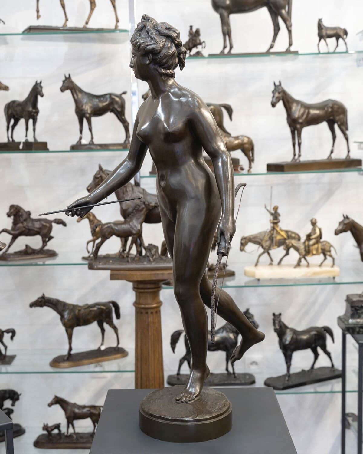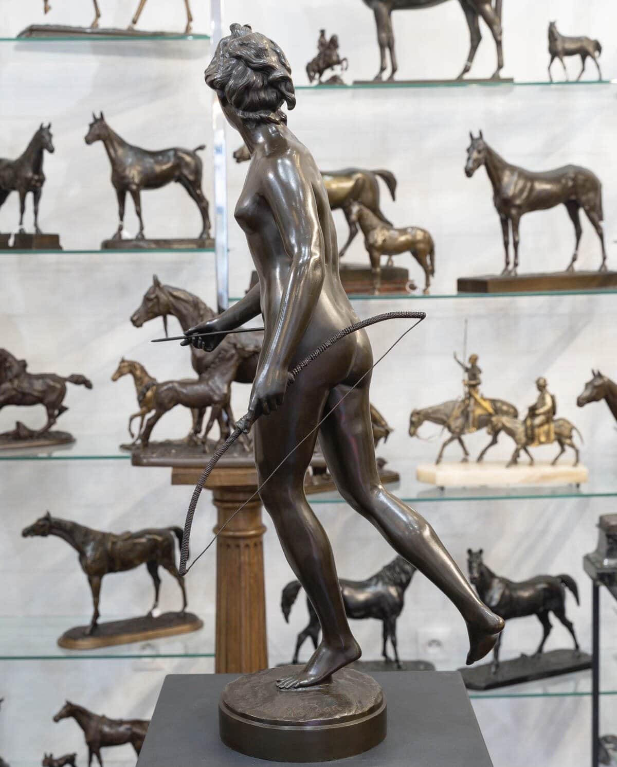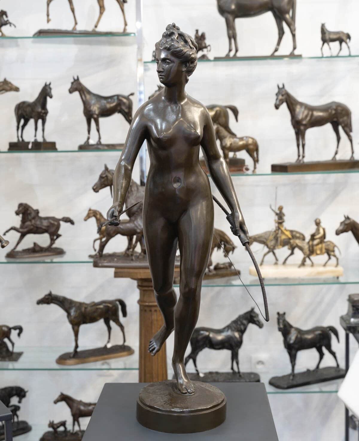 Importante épreuve en bronze à patine brune , figurant la déesse « Diane Chasseresse », d’après le sculpteur Jean-Antoine Houdon.