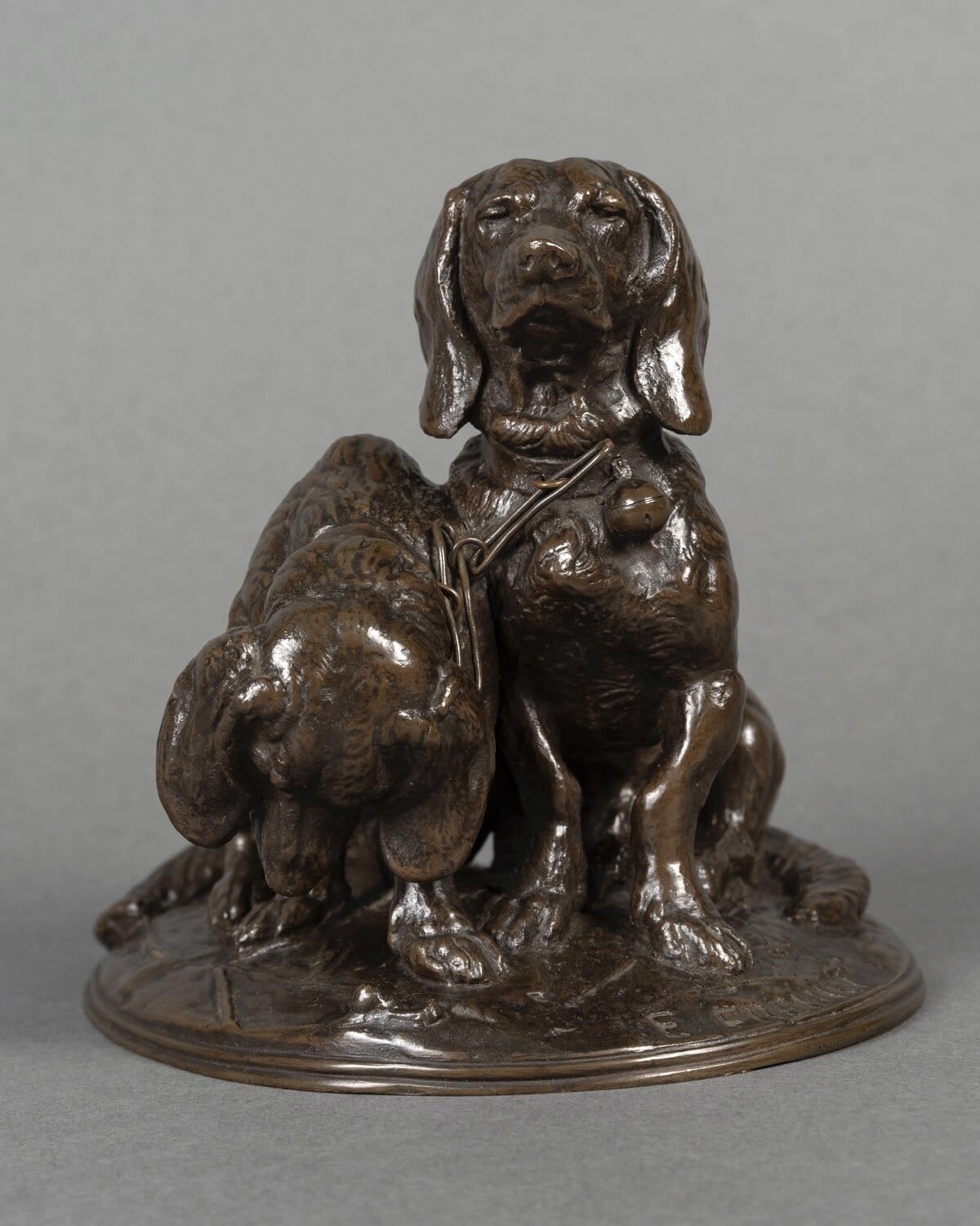 Sculpture – Groupe De Bassets , Ravageot Et Ravageode , Emmanuel Frémiet (1824 -1910) – Bronze