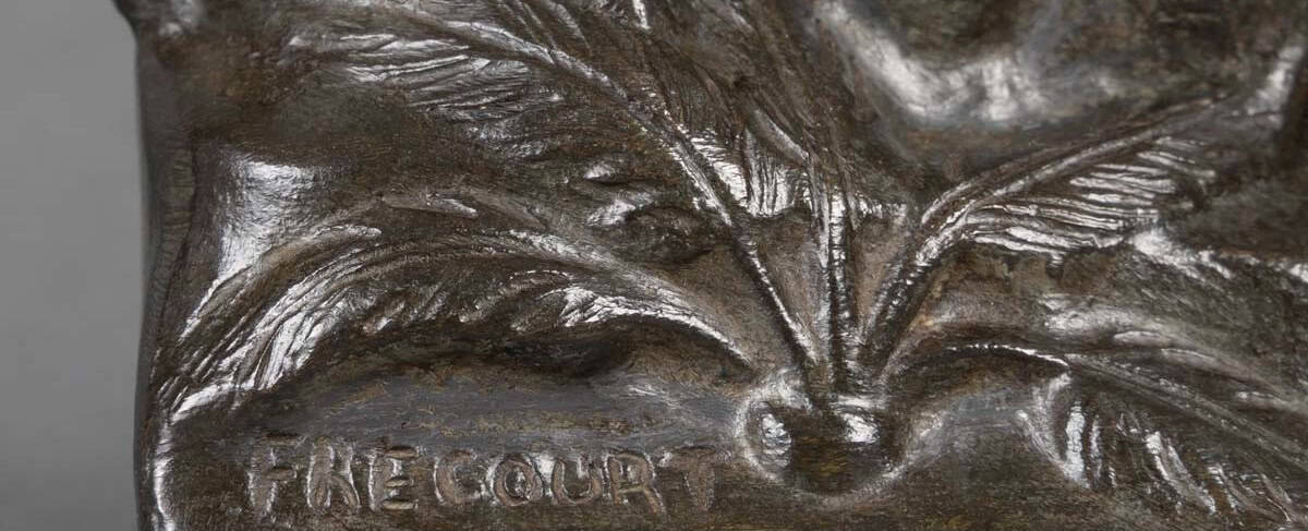 The sculptor’s signature , »FRECOURT », is incised on the richly wooded, naturalistic terrace .