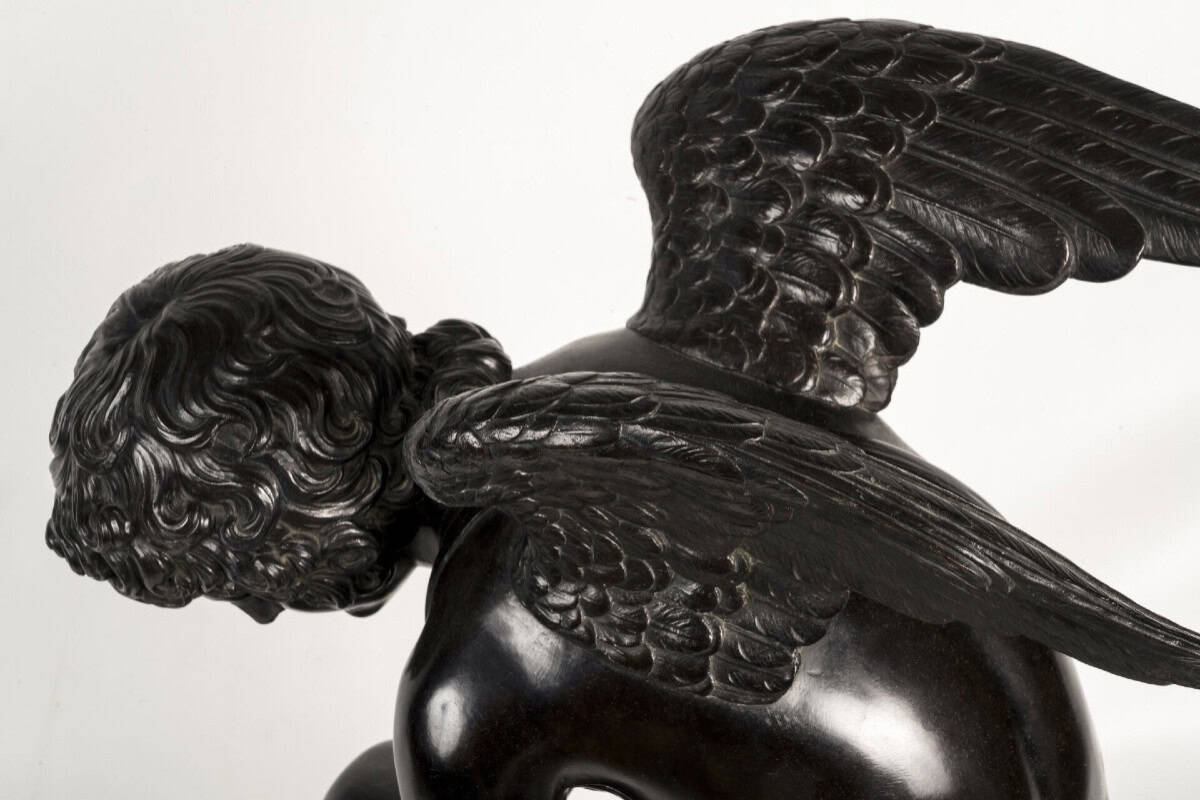 Important et majestueux groupe en bronze , intitulé « L’ Amour Saisissant Un Papillon » , d’après le sculpteur Antoine Denis Chaudet , édité par la « Maison Colin » , prestigieuse fonderie d’art parisienne , crée en 1843 .