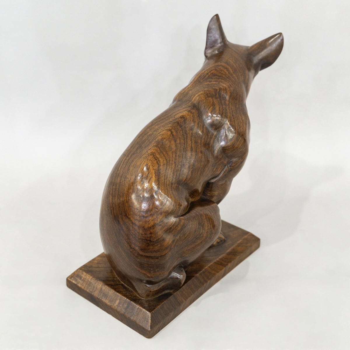 Sculpture en ronde-bosse en bois sculpté , représentant un « Bouledogue assis » , en taille directe , par le sculpteur Nicot , Louis-Henri (1878-1944).