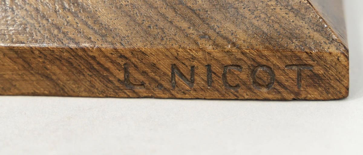 Intaglio signature of the sculptor “L .NICOT” and publisher’s stamp. and publisher’s stamp “EDITION SAS Paris” (Society of Salon Artists) on the edge of the base .