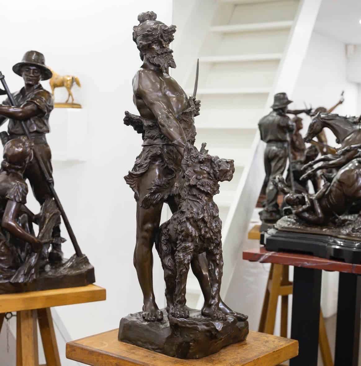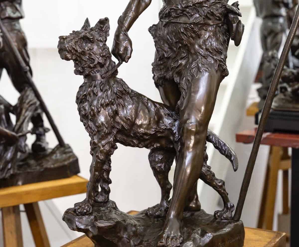 A remarkable bronze sculpture with a brown patina , depicting a « Gallic Hunter » accompanied by his dog , by the sculptor Marcel Debut (1865-1933) .