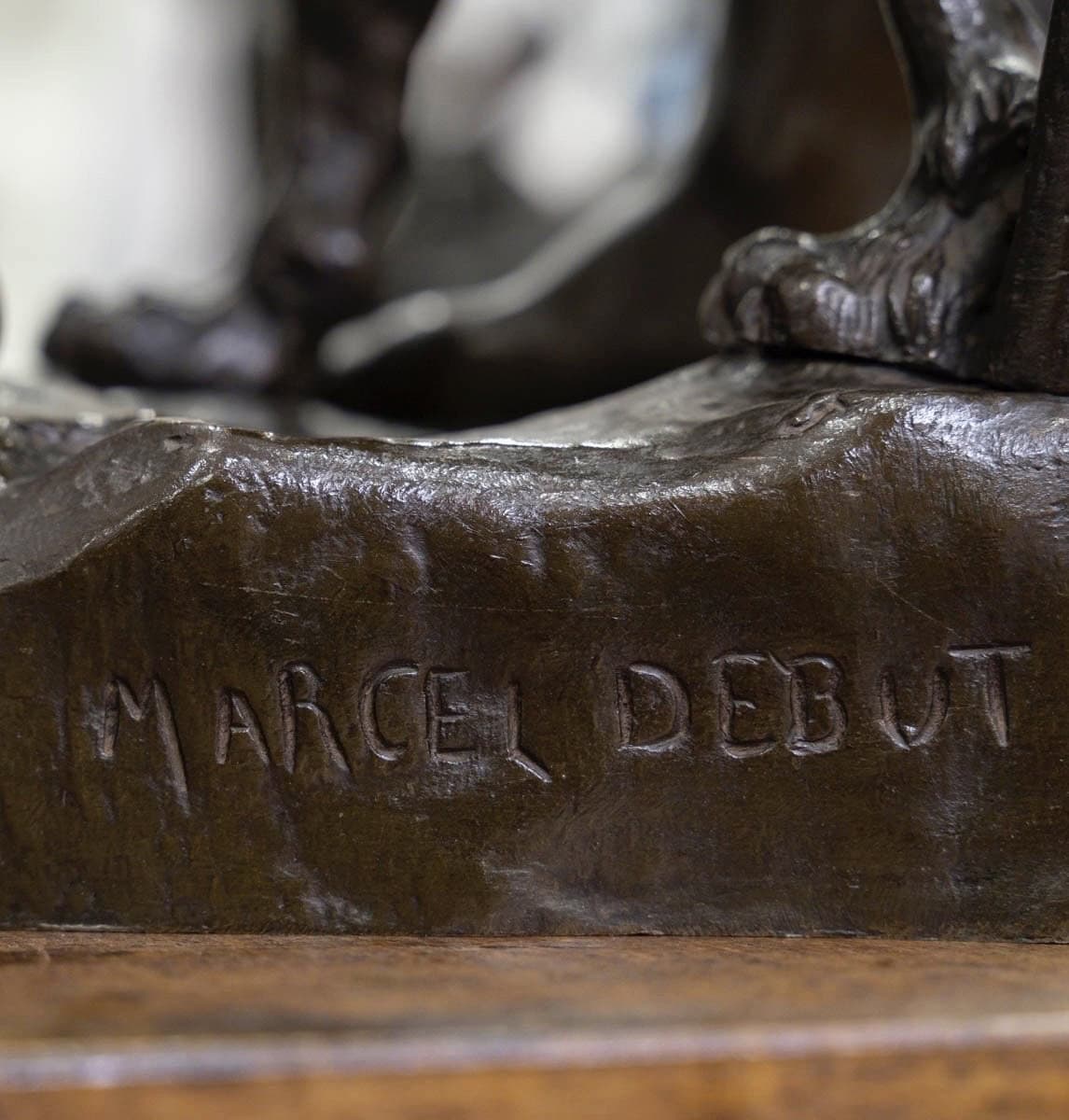 The sculptor’s signature « MARCEL DEBUT » is incised , on the side of the naturalistic base .