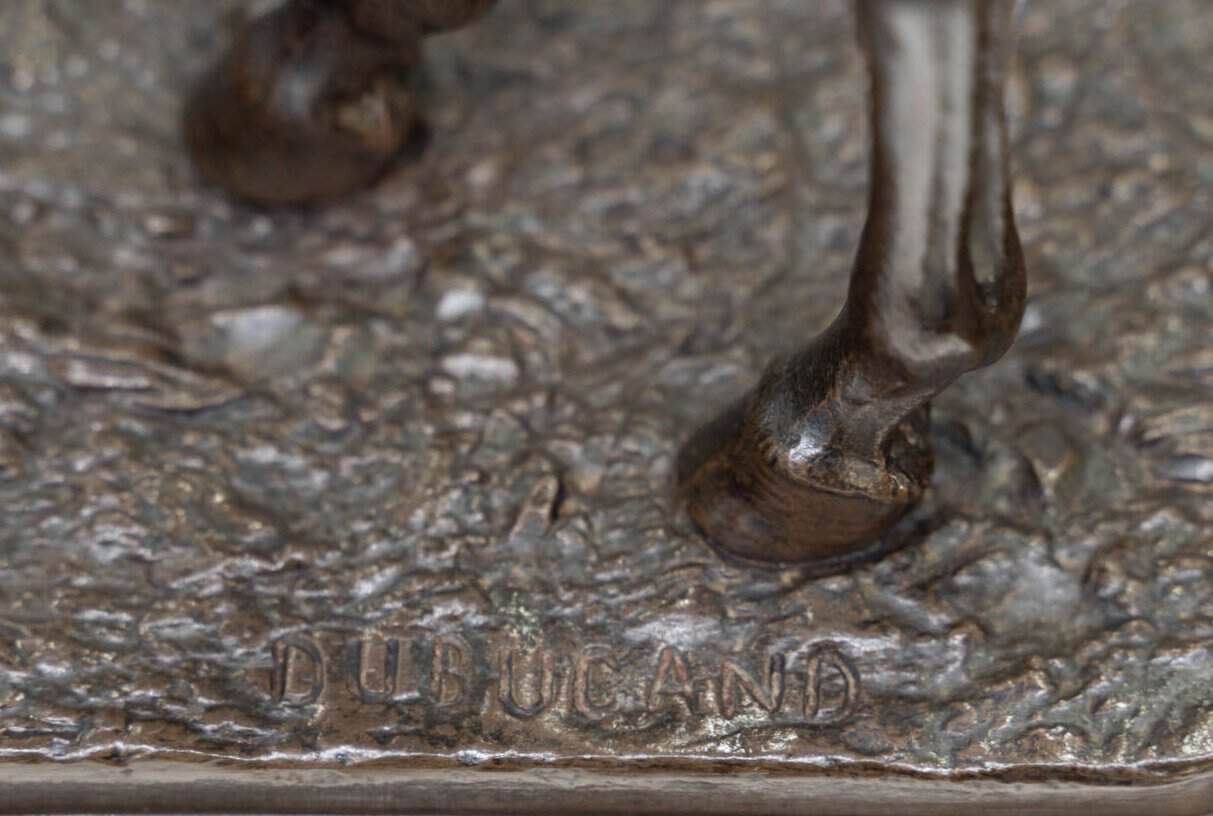 The sculptor’s signature , « DUBUCAND » , is incised on the richly chiseled , naturalistic base .