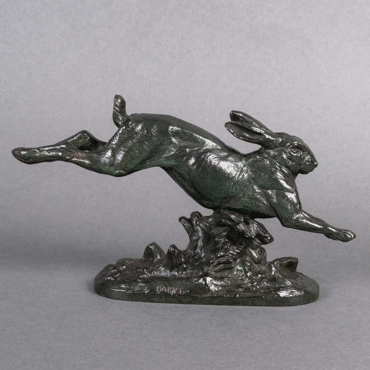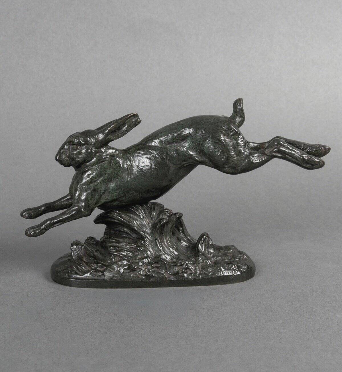 Sculpture – Le Lièvre Courant , Alfred Barye (1839-1882) – Bronze