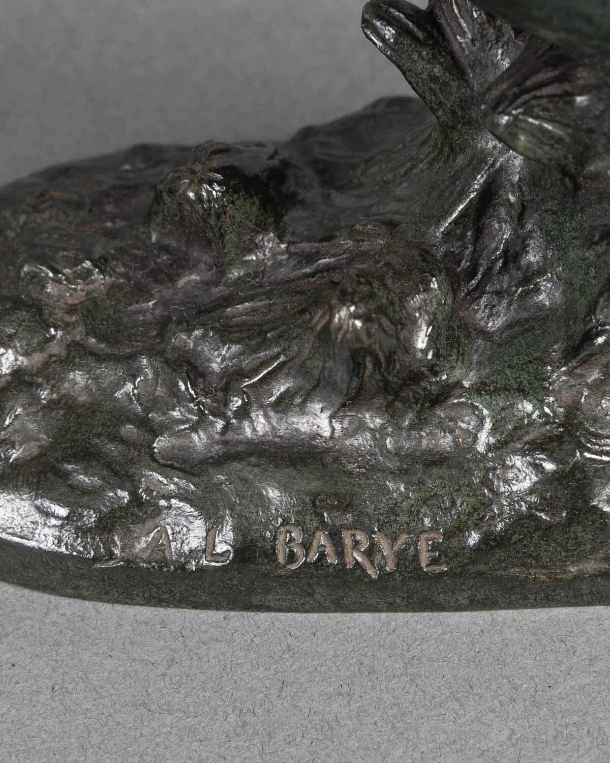 Signature of the sculptor « A.L.BARYE » on the naturalist base , richly chiseled and decorated with vegetation .