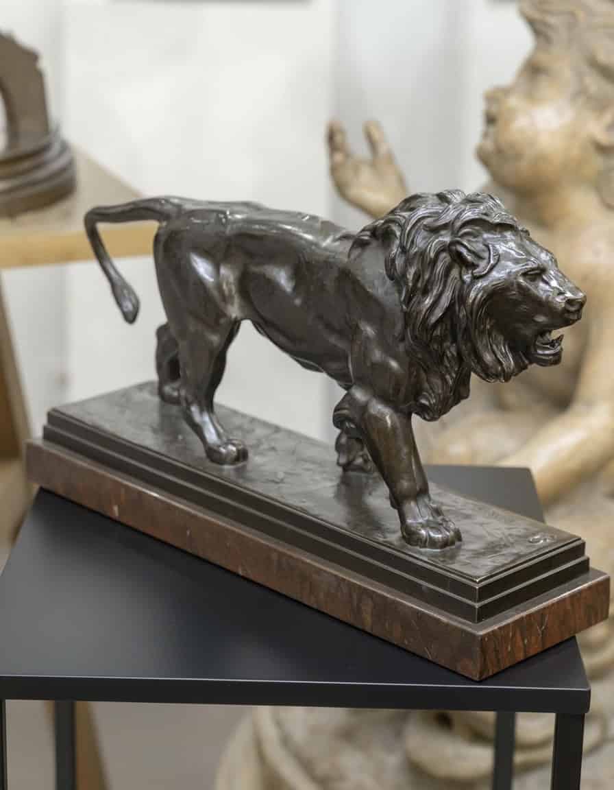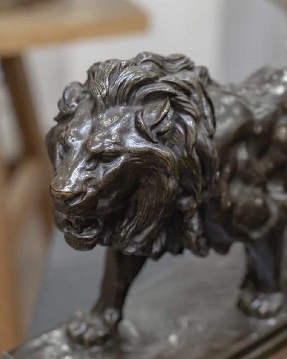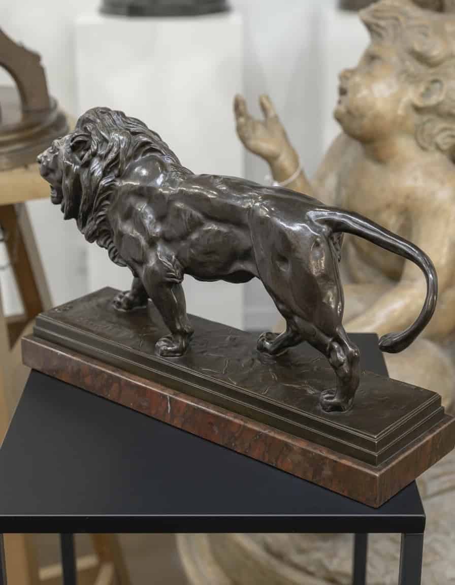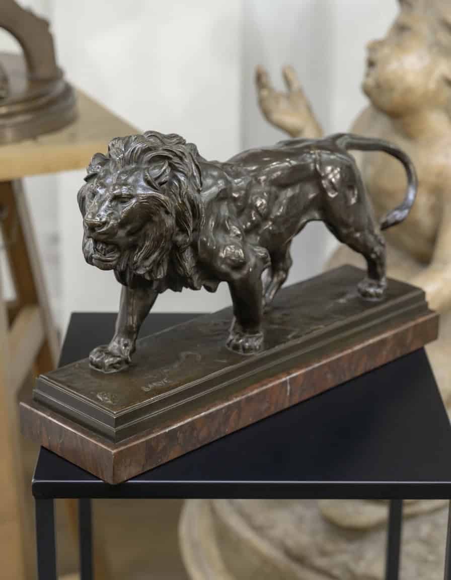 VENDUImportante épreuve en bronze à patine brune , représentant le « Lion Marchant » , par le célèbre sculpteur animalier Antoine – Louis Barye (1795-1875) .