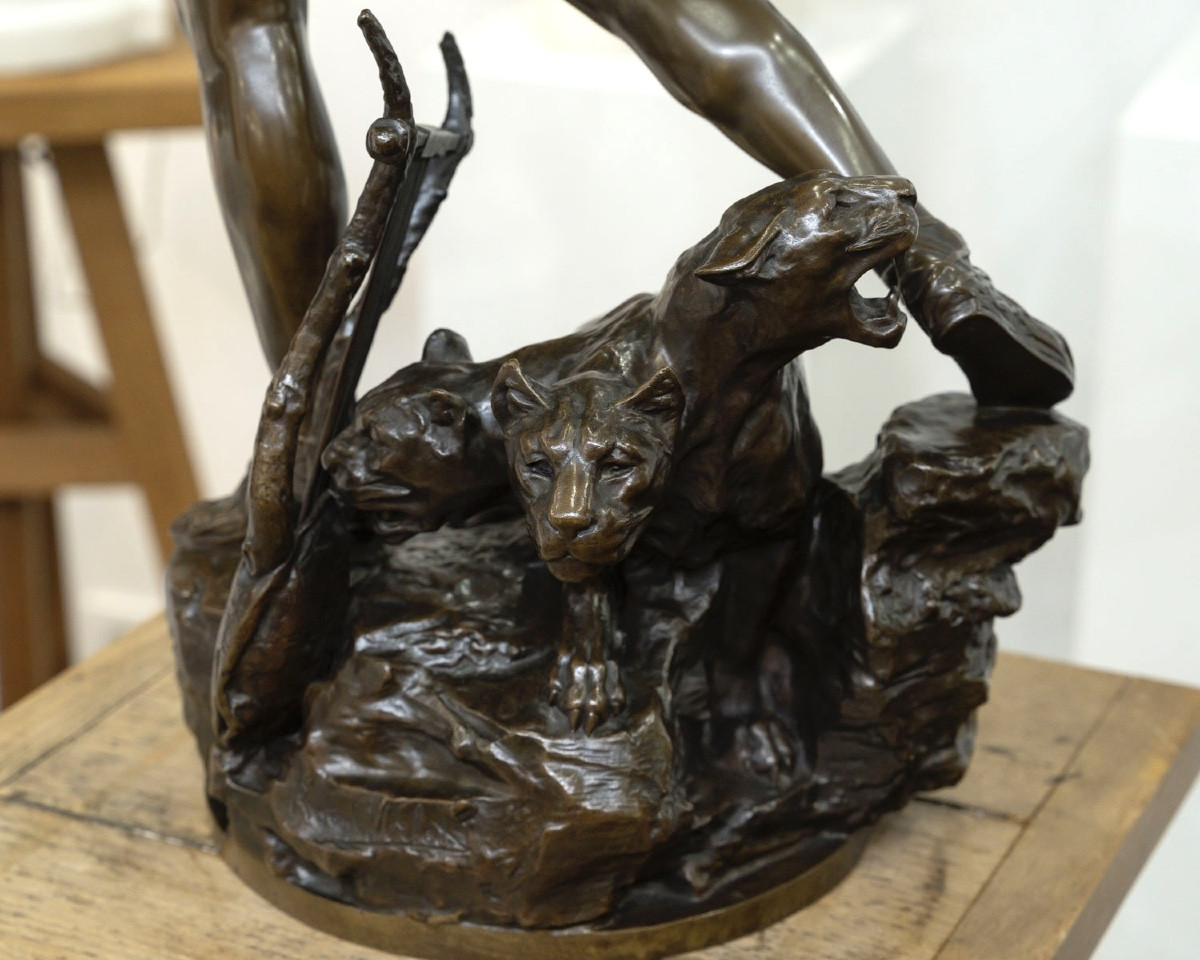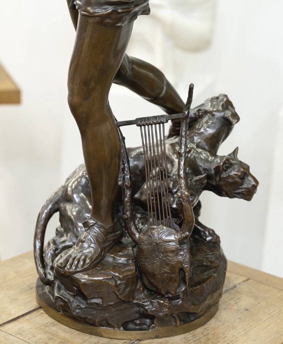 Importante épreuve en bronze à patine brune , figurant « Orphée » , et le célèbre gardien de l’entrée des Enfers , « Cerbère » , par le sculpteur Charles Raoul Verlet (1857-1923) .
