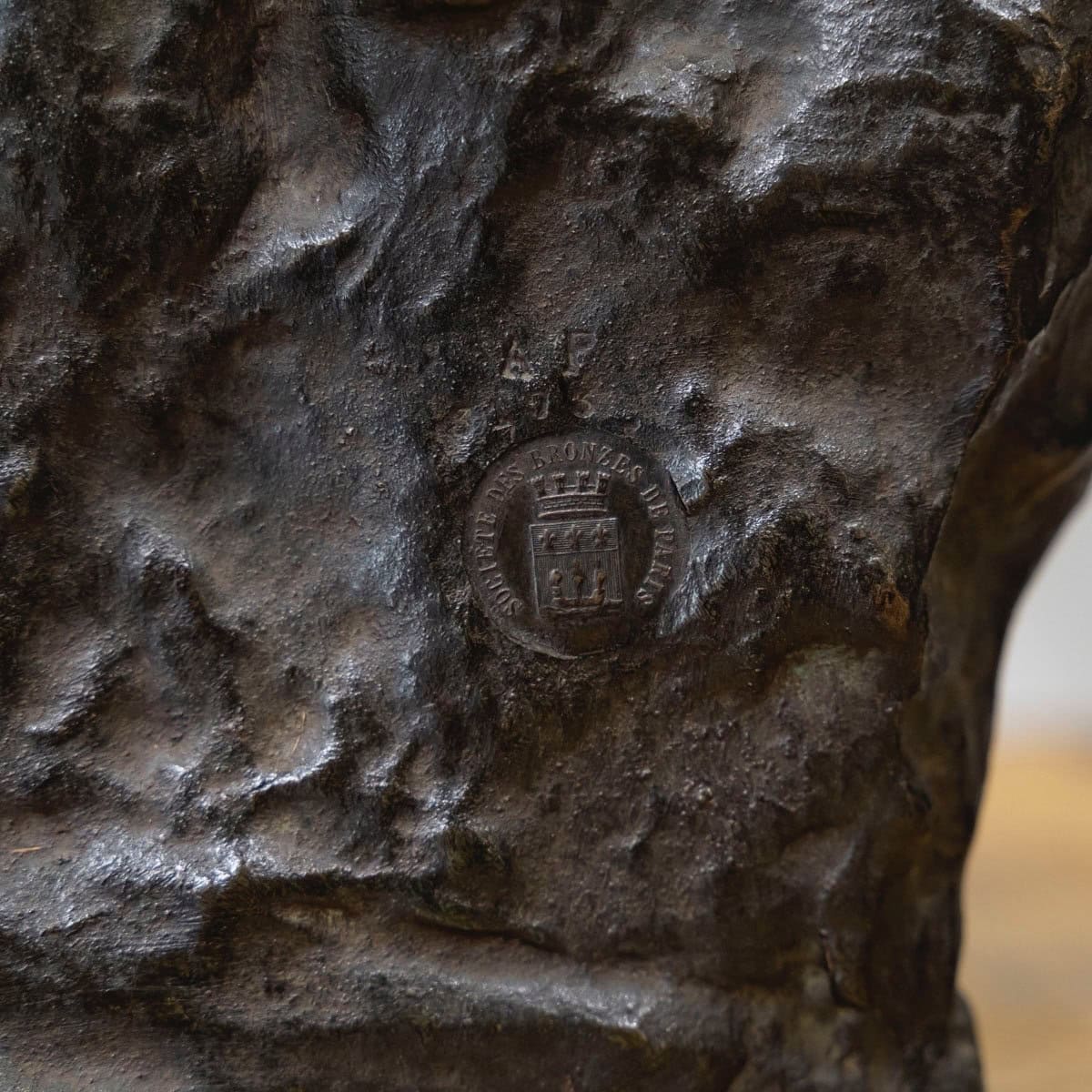 The foundry’s circular stamp , « Société des bronzes de Paris » (Paris Bronze Society) on the back of the sculpture.