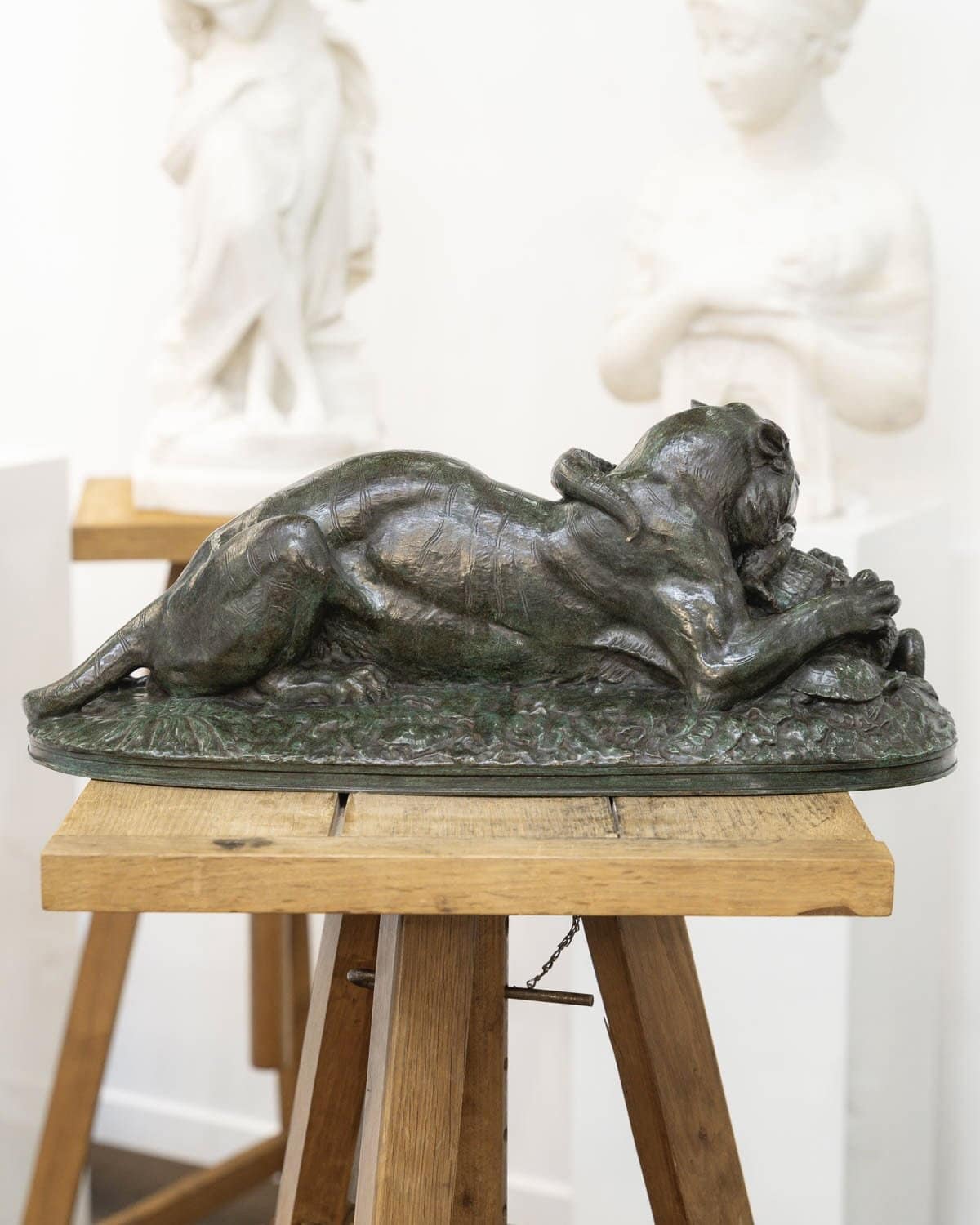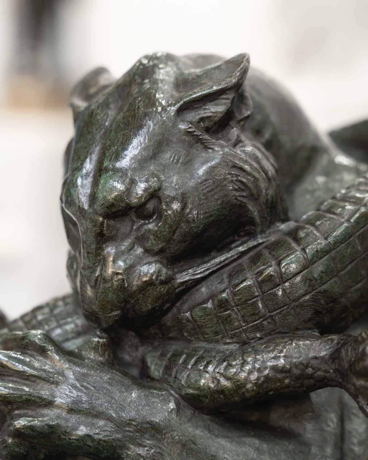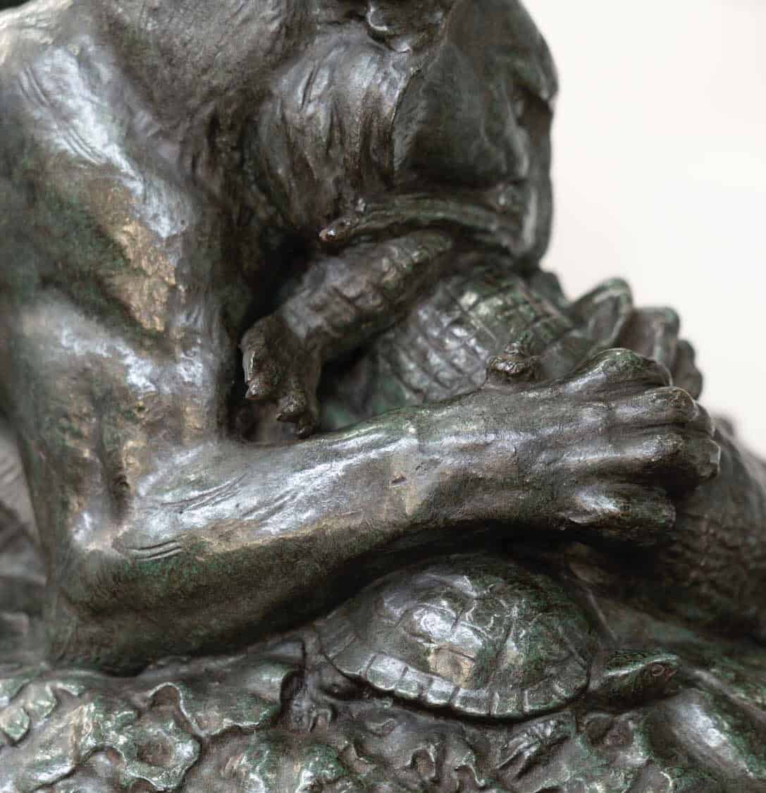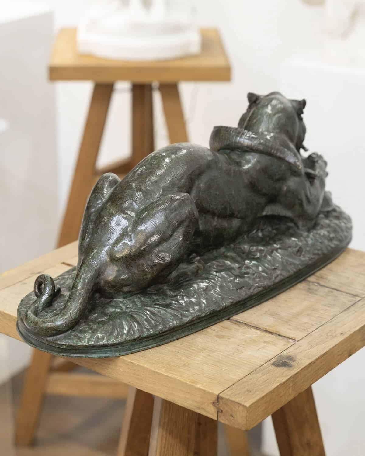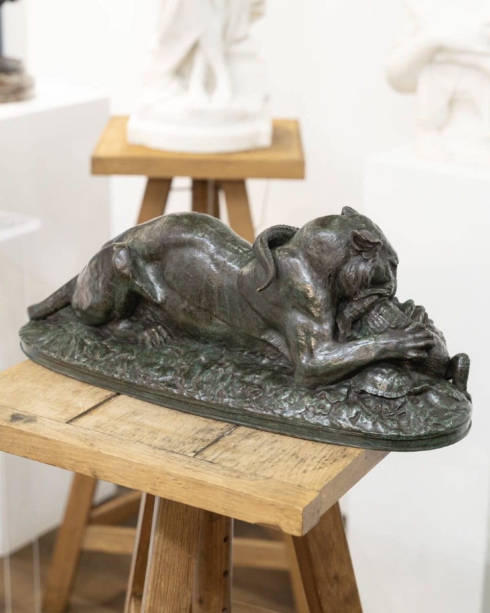 Préférant le bronze au marbre jugé trop froid , l‘artiste multiplie les statuettes et les petits groupes animaliers qu’il fond et cisèle lui-même.