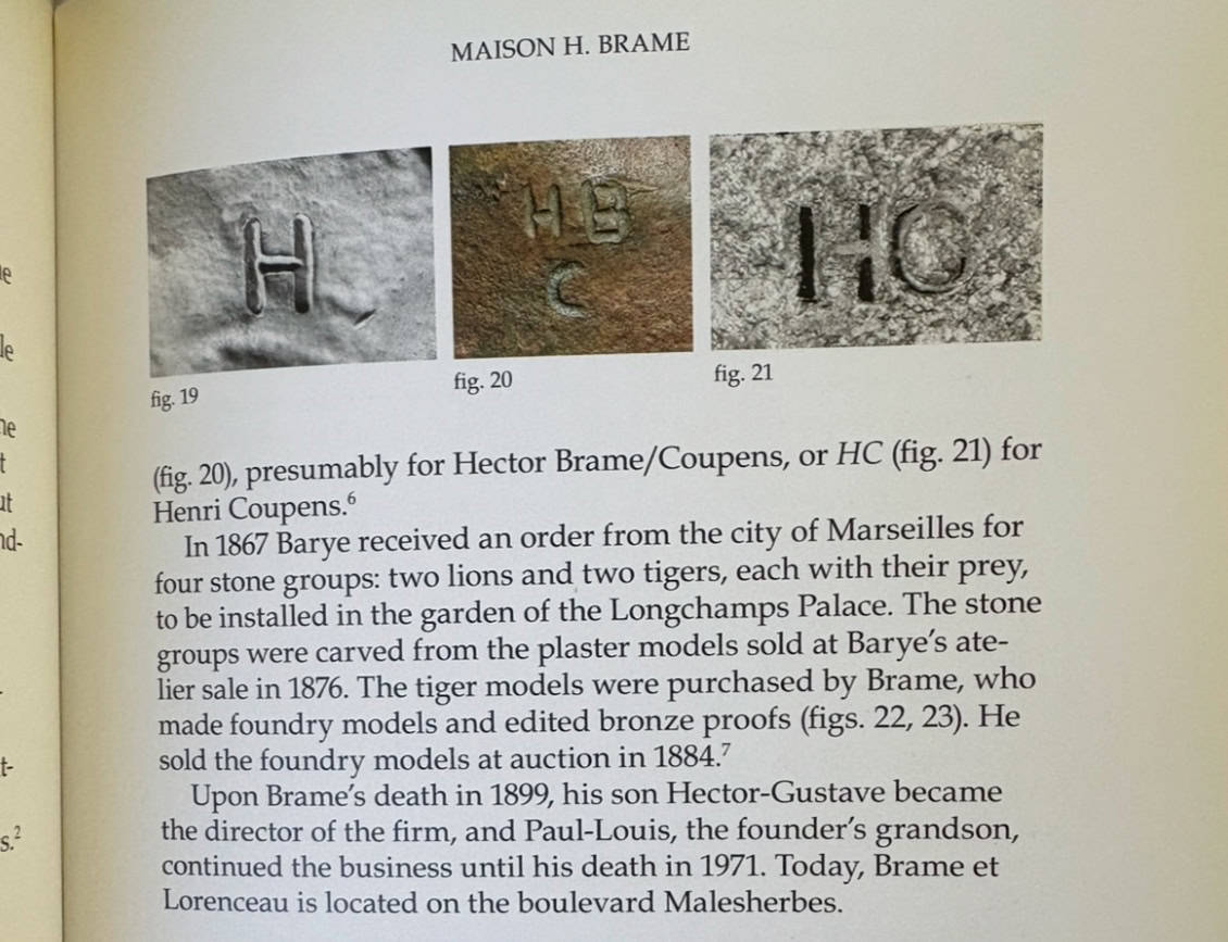 The foundry mark of Hector Brame (1831-1899) , « HBC » , is located beneath the base .